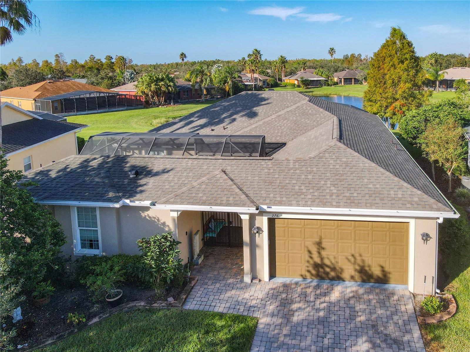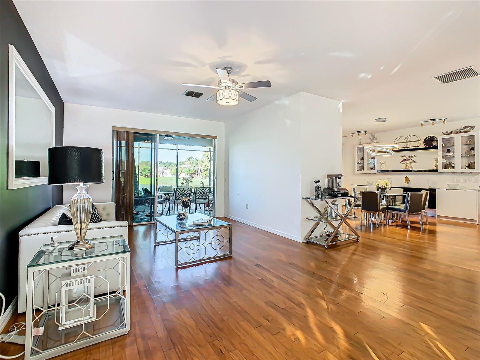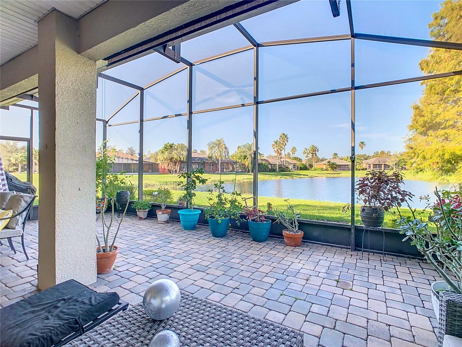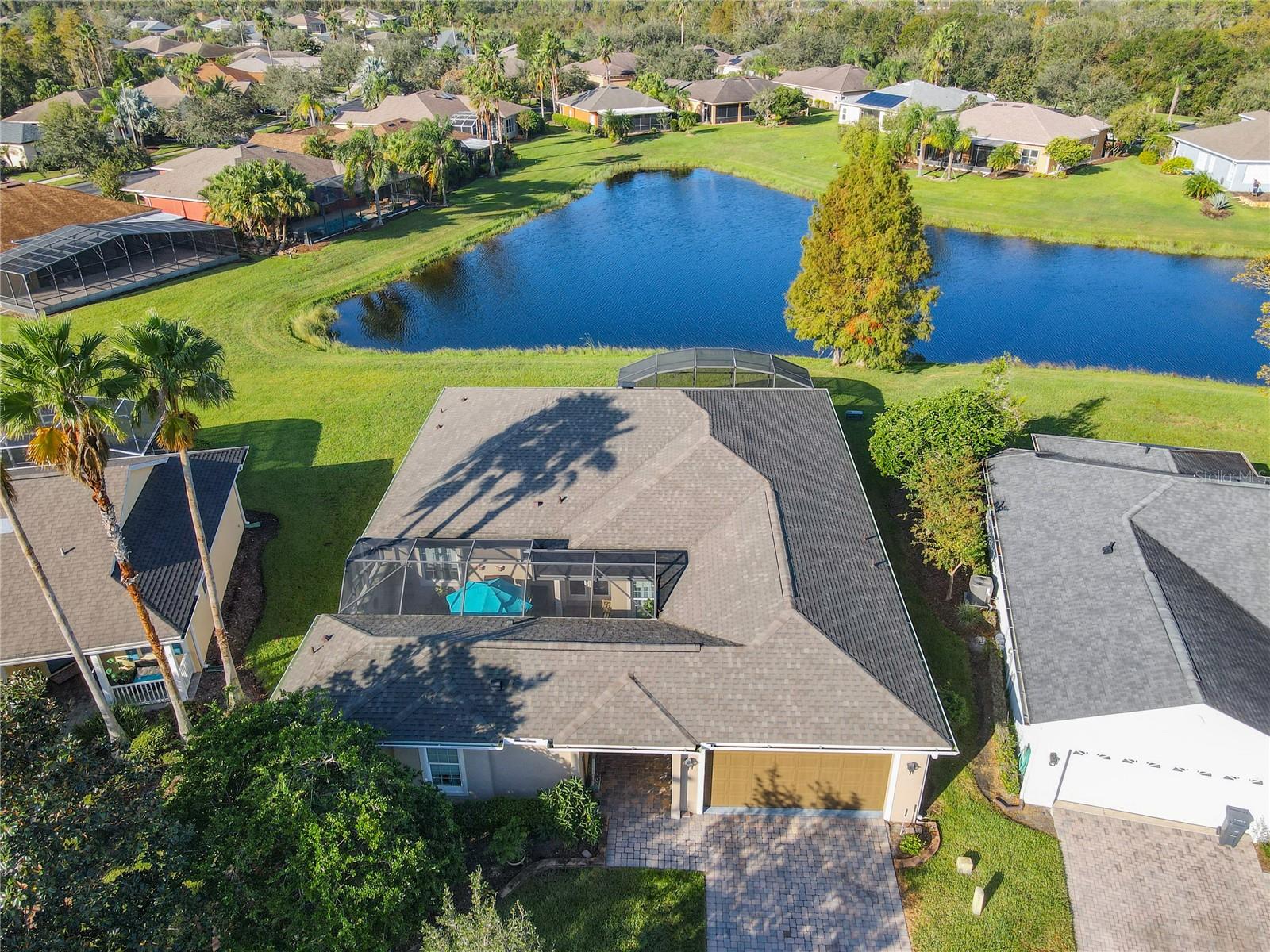 Discover your dream home in this spacious 3-bedroom, 3-bathroom Bolero model, boasting 2,561 sq. ft. of waterfront living! Step inside to find beautiful hardwood flooring and a stunning full-length water view complemented by conservation land on the right. Enjoy the outdoor spaces with a front screened courtyard and a large screened lanai, complete with a newer hot tub. The A/C was replaced in 2017, ensuring comfort year-round. This home features many custom upgrades, including an additional wall of cabinets in the kitchen, newer appliances, upgraded lighting, and an oversized laundry room with a sink. The extended master suite includes dual sinks, two walk-in closets, and a spacious shower. The second bedroom is equipped with a custom work station and a large closet, while the third bedroom offers a private screened courtyard and a full bath—ideal for guests, hobbies, or a home office.