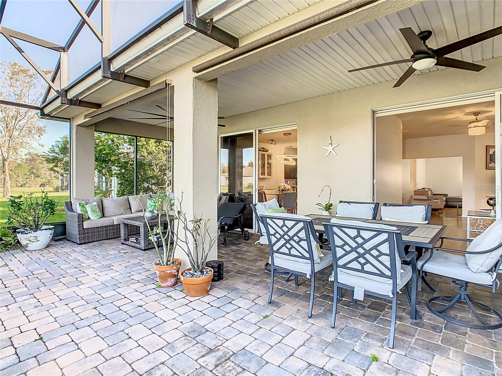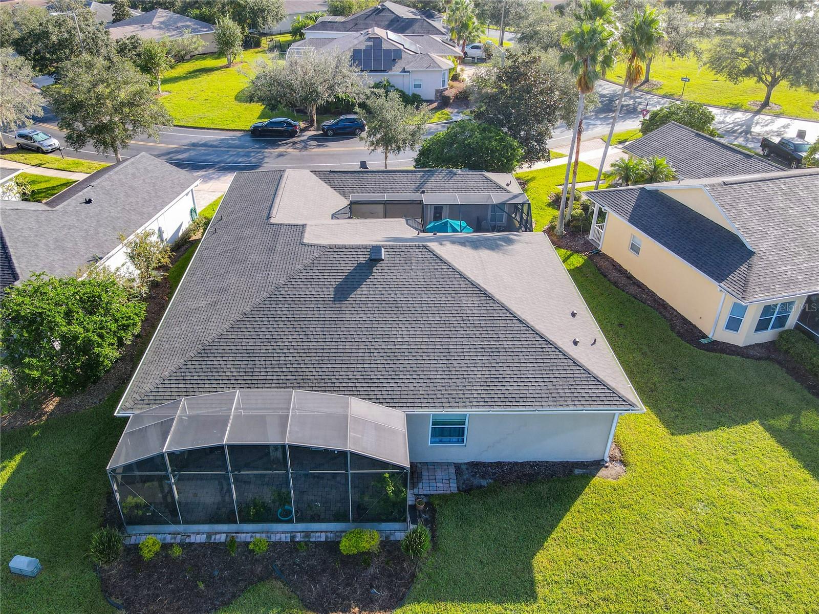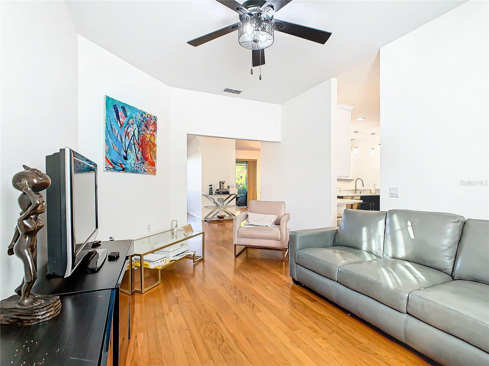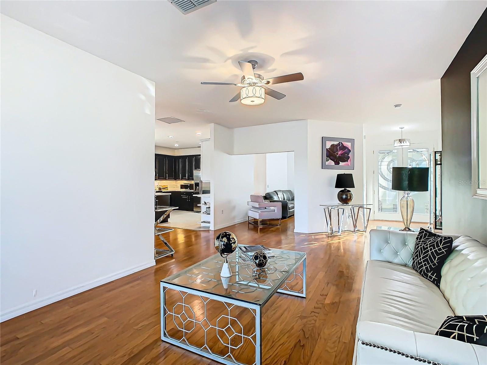 Discover your dream home in this spacious 3-bedroom, 3-bathroom Bolero model, boasting 2,561 sq. ft. of waterfront living! Step inside to find beautiful hardwood flooring and a stunning full-length water view complemented by conservation land on the right. Enjoy the outdoor spaces with a front screened courtyard and a large screened lanai, complete with a newer hot tub. The A/C was replaced in 2017, ensuring comfort year-round. This home features many custom upgrades, including an additional wall of cabinets in the kitchen, newer appliances, upgraded lighting, and an oversized laundry room with a sink. The extended master suite includes dual sinks, two walk-in closets, and a spacious shower. The second bedroom is equipped with a custom work station and a large closet, while the third bedroom offers a private screened courtyard and a full bath—ideal for guests, hobbies, or a home office.