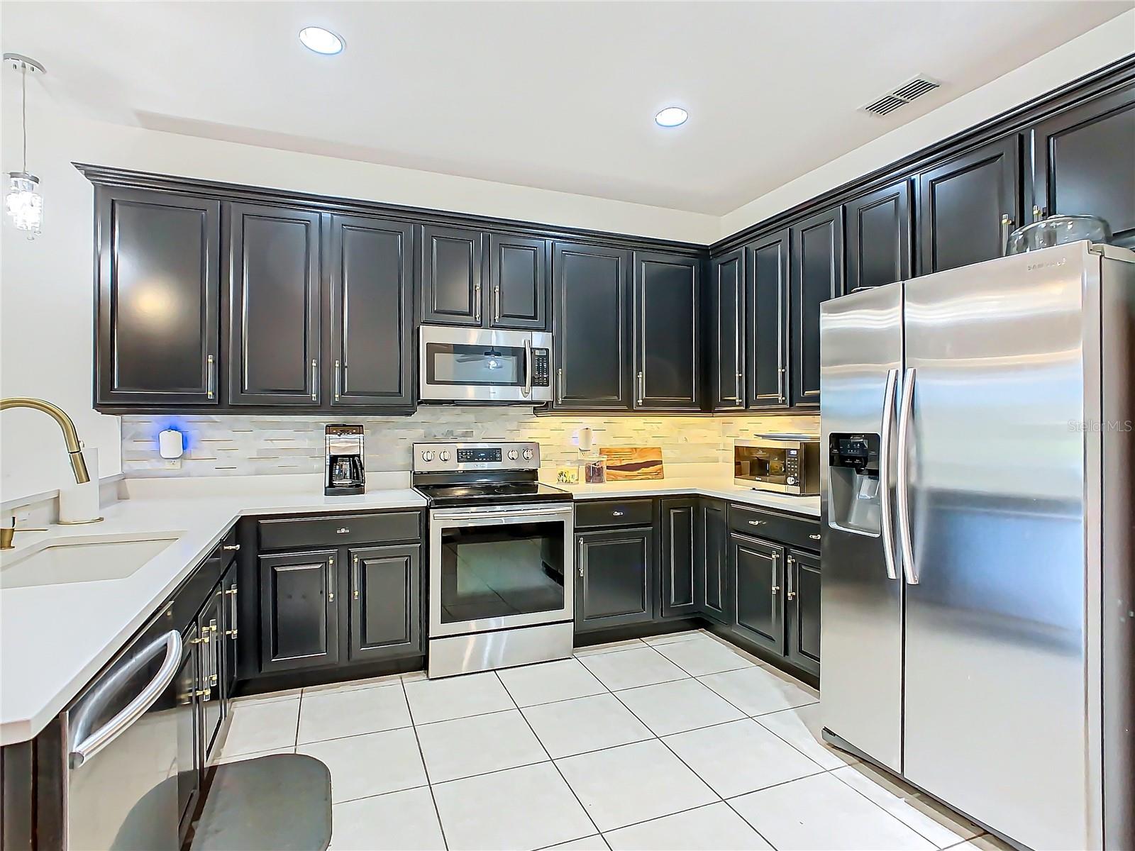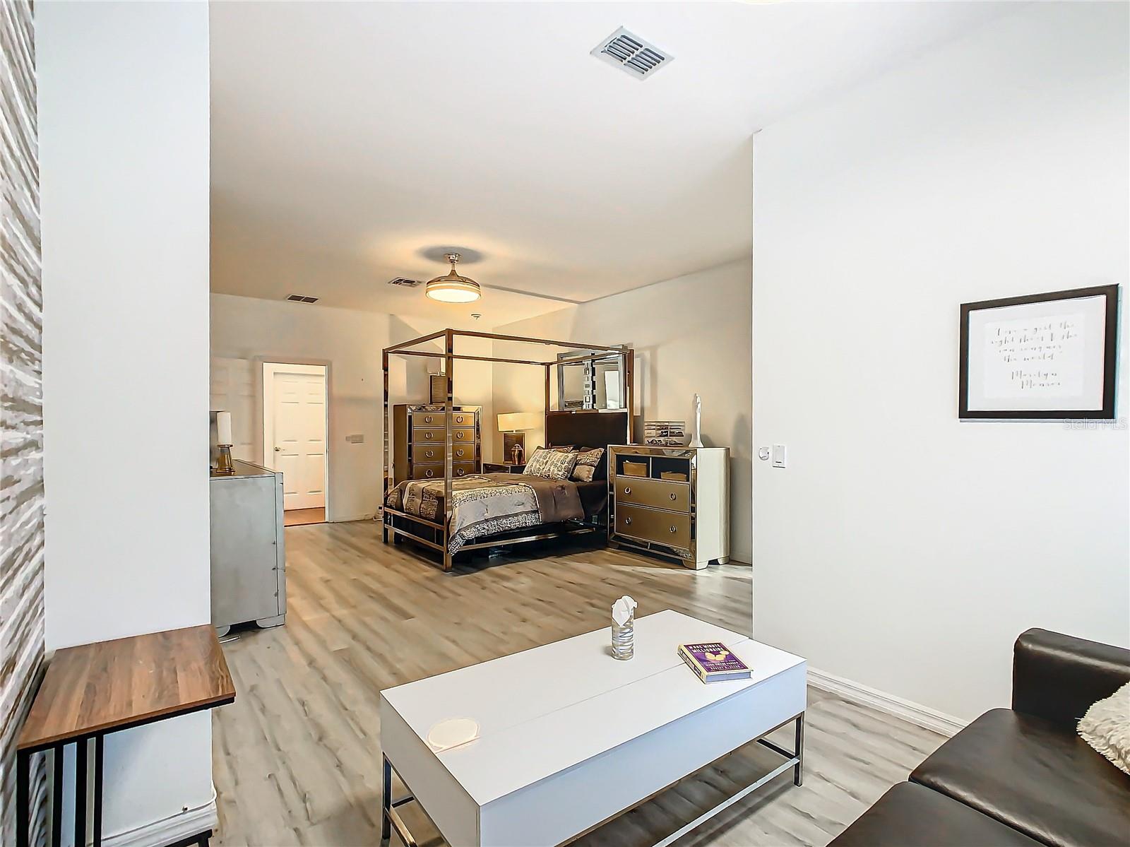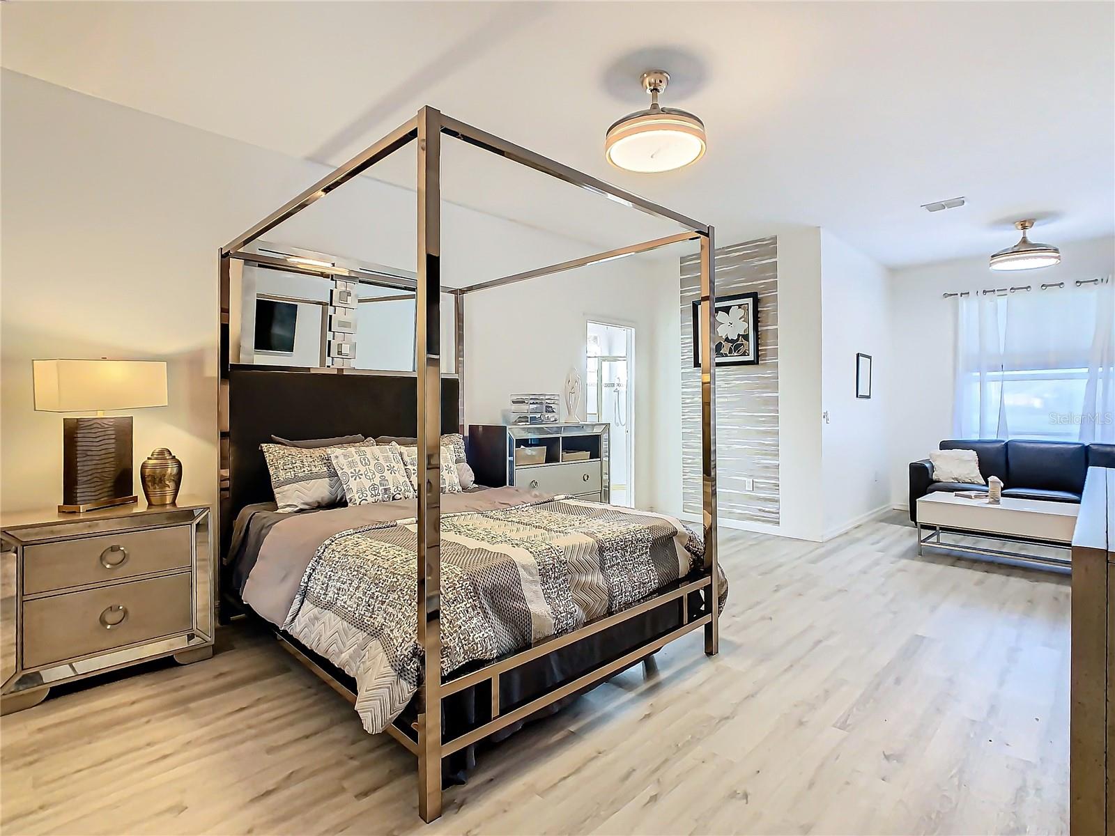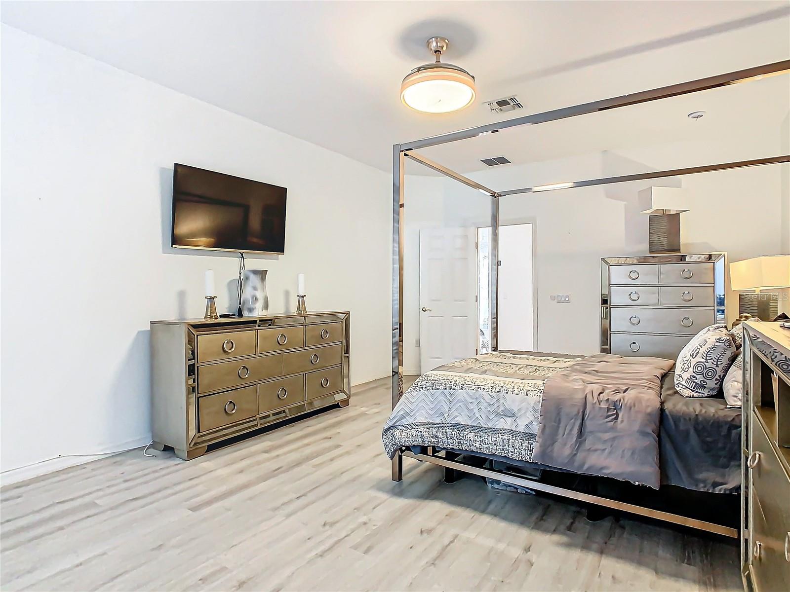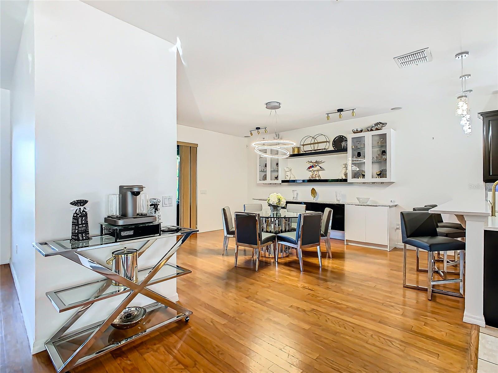 Discover your dream home in this spacious 3-bedroom, 3-bathroom Bolero model, boasting 2,561 sq. ft. of waterfront living! Step inside to find beautiful hardwood flooring and a stunning full-length water view complemented by conservation land on the right. Enjoy the outdoor spaces with a front screened courtyard and a large screened lanai, complete with a newer hot tub. The A/C was replaced in 2017, ensuring comfort year-round. This home features many custom upgrades, including an additional wall of cabinets in the kitchen, newer appliances, upgraded lighting, and an oversized laundry room with a sink. The extended master suite includes dual sinks, two walk-in closets, and a spacious shower. The second bedroom is equipped with a custom work station and a large closet, while the third bedroom offers a private screened courtyard and a full bath—ideal for guests, hobbies, or a home office.
