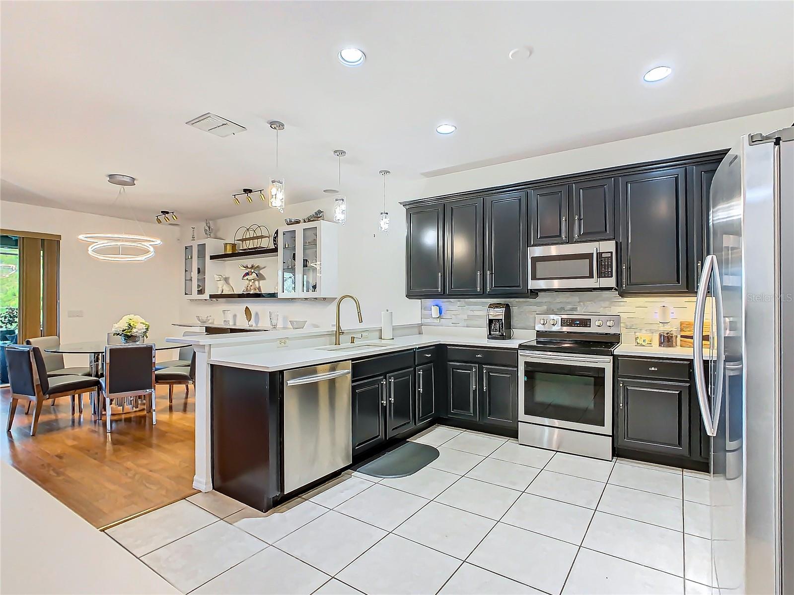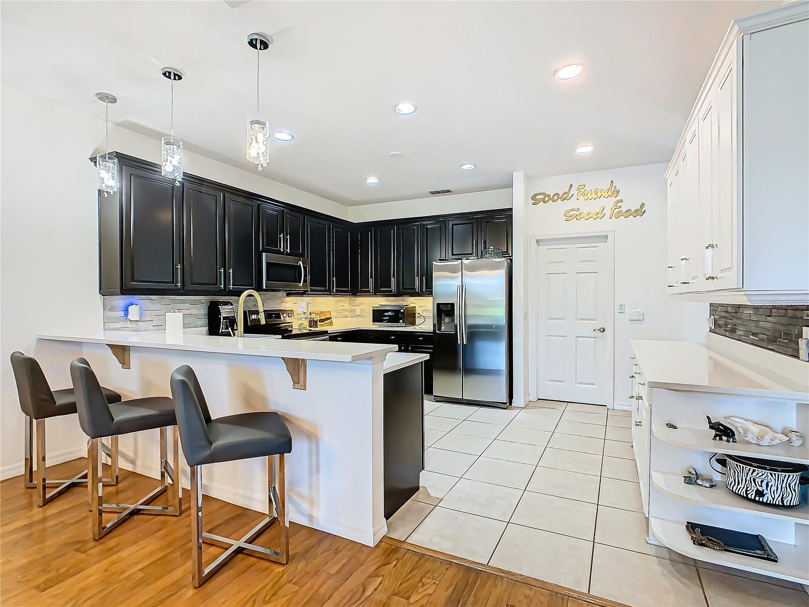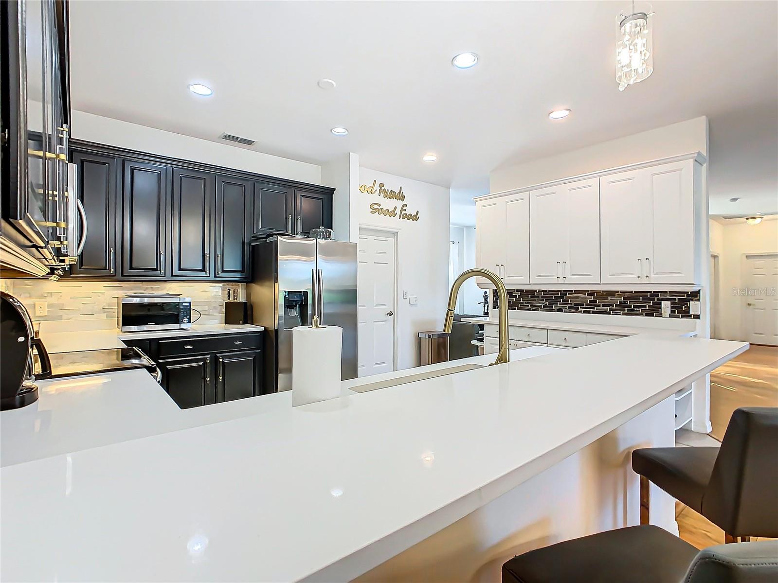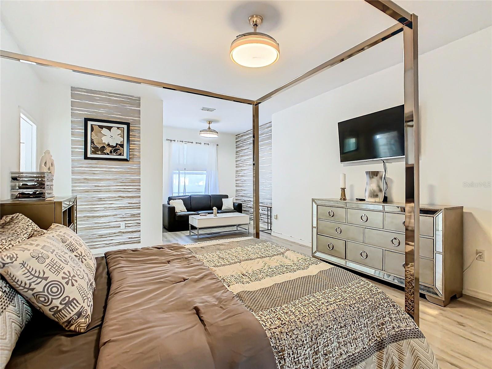 Discover your dream home in this spacious 3-bedroom, 3-bathroom Bolero model, boasting 2,561 sq. ft. of waterfront living! Step inside to find beautiful hardwood flooring and a stunning full-length water view complemented by conservation land on the right. Enjoy the outdoor spaces with a front screened courtyard and a large screened lanai, complete with a newer hot tub. The A/C was replaced in 2017, ensuring comfort year-round. This home features many custom upgrades, including an additional wall of cabinets in the kitchen, newer appliances, upgraded lighting, and an oversized laundry room with a sink. The extended master suite includes dual sinks, two walk-in closets, and a spacious shower. The second bedroom is equipped with a custom work station and a large closet, while the third bedroom offers a private screened courtyard and a full bath—ideal for guests, hobbies, or a home office.