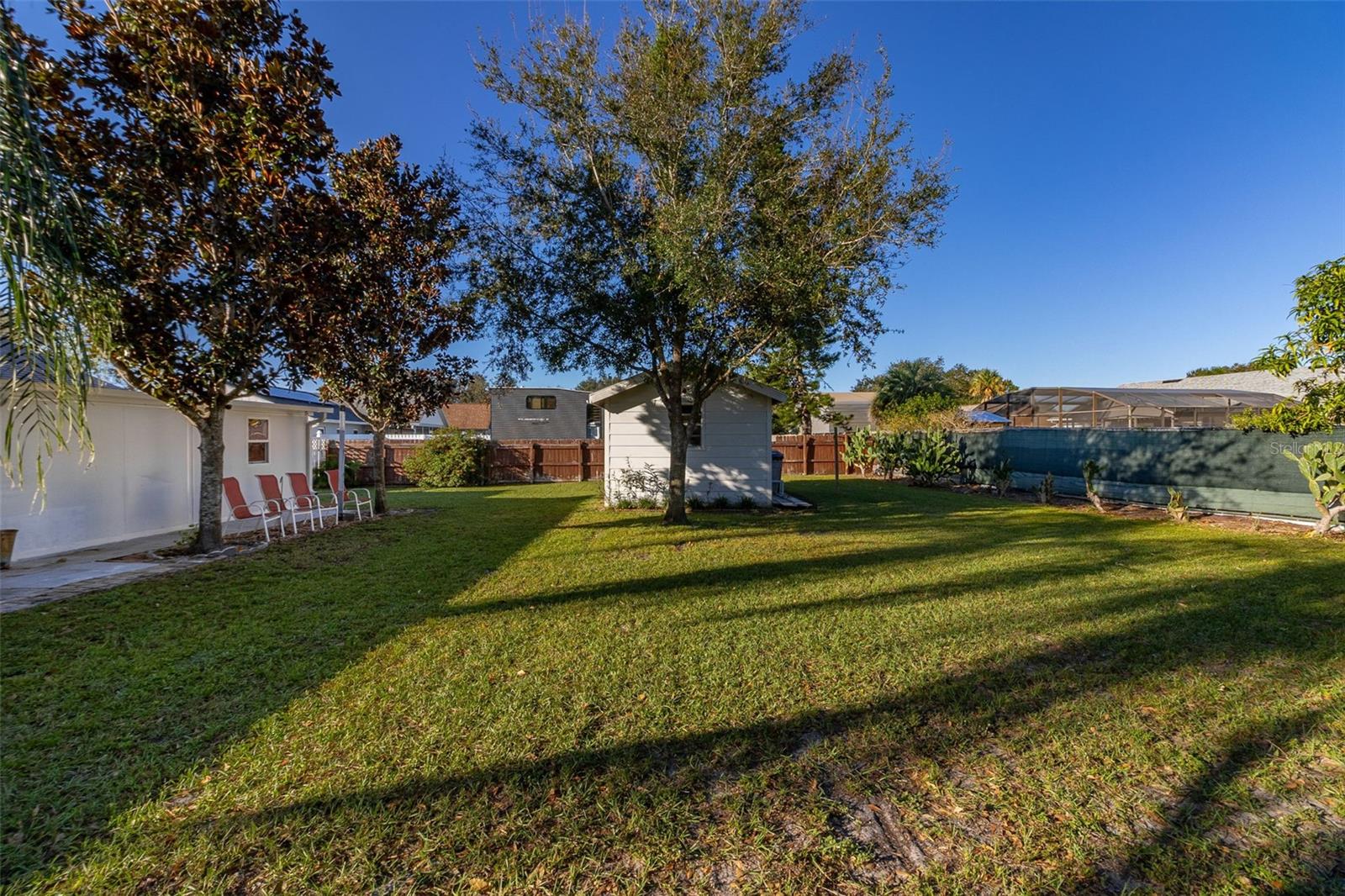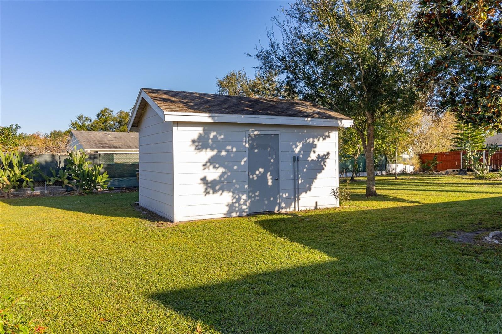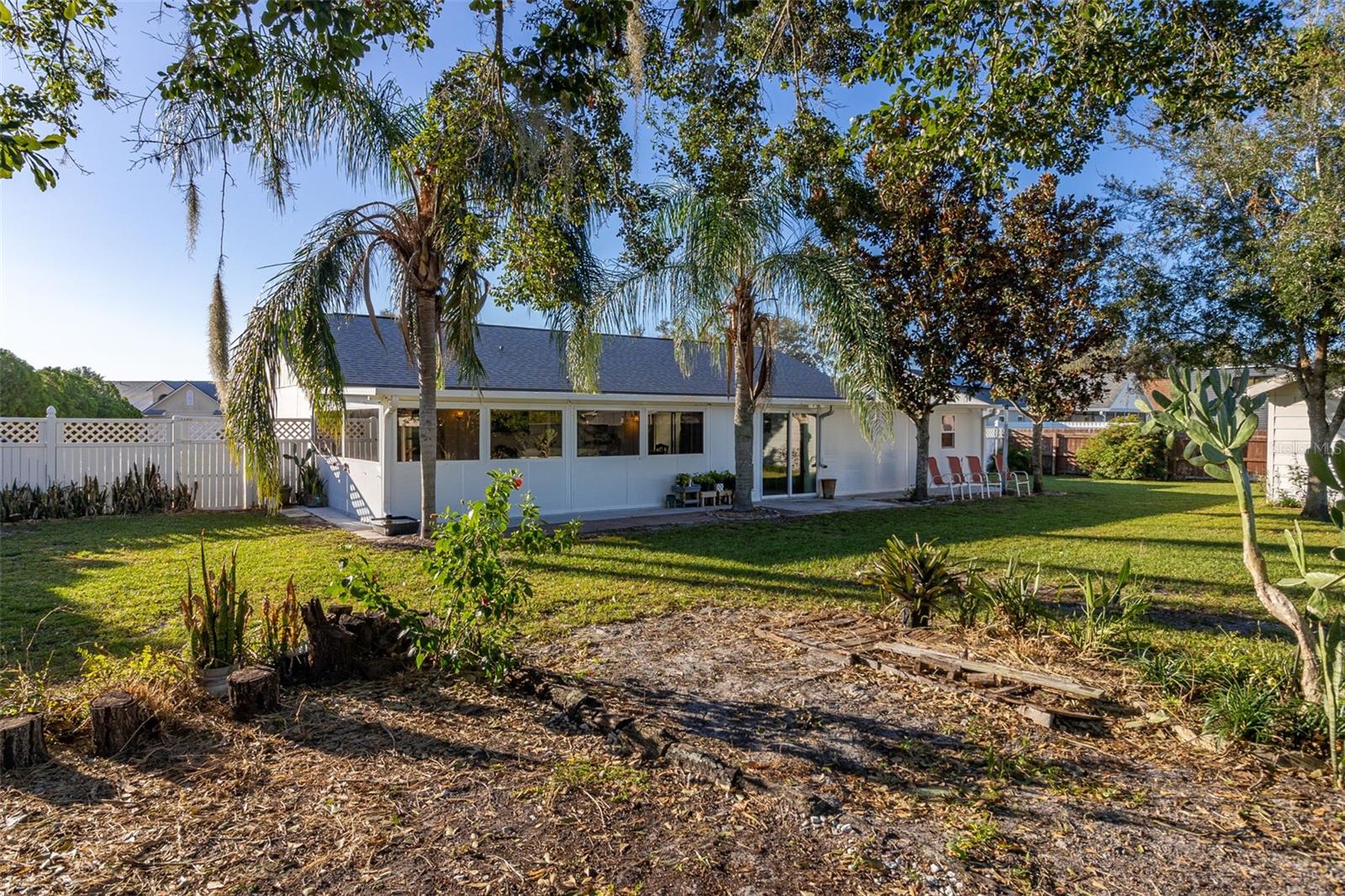 Welcome to this inviting 3-bedroom, 2-bathroom home, perfectly situated just moments from the beautiful Kissimmee Lake Front. This property features a desirable split floor plan, offering privacy and comfort for all family members. The kitchen area flows into a large Florida room, creating an ideal space for relaxation or entertaining. Customized garage space large enough for an 18 foot boat. NEW AIR CONDITIONER INSTALLED June 2025. Step outside to a vast, fenced-in yard—perfect for pets, gardening, or outdoor gatherings. The backyard includes a large and small shed with electricity to store your yard equipment and miscellaneous tools. Looking for a property with capabilities of adding an additional dwelling unit, this yard is large enough. No HOA will allow the freedom to personalize your space. Commuting for work? No worries, this house is minutes from the turnpike!
