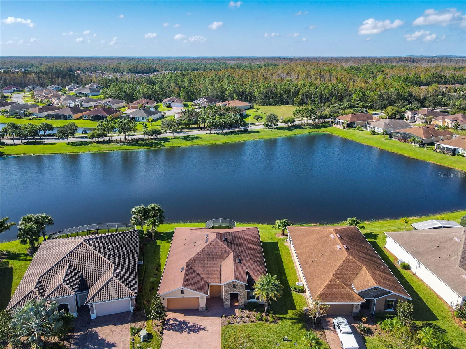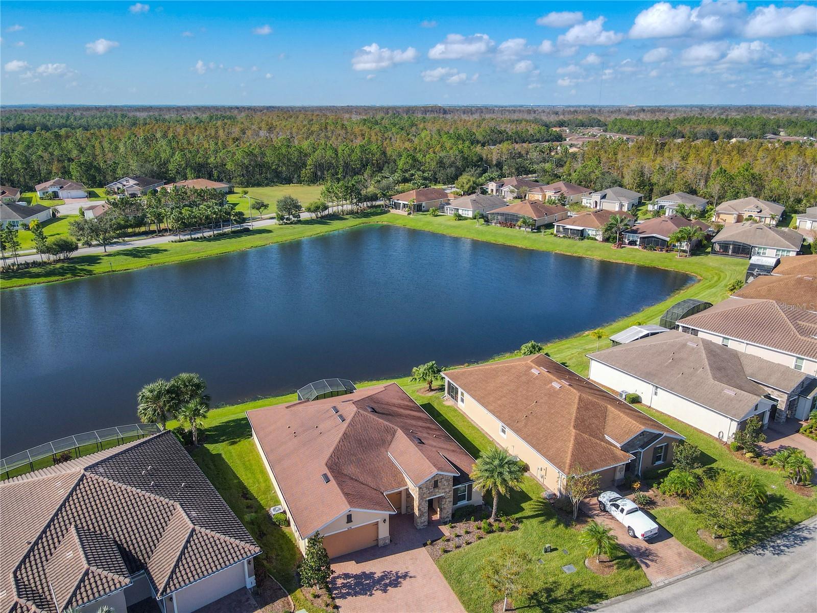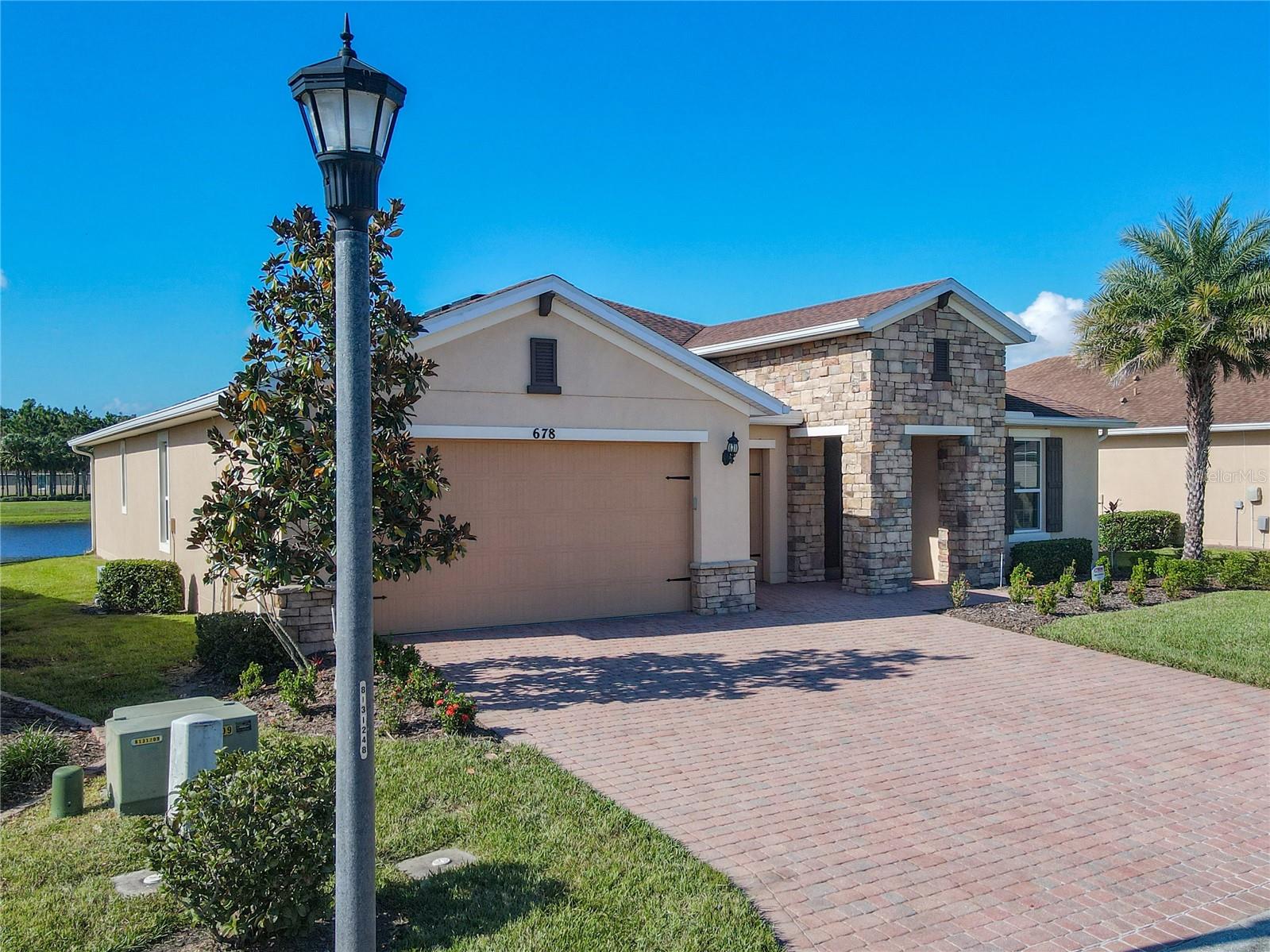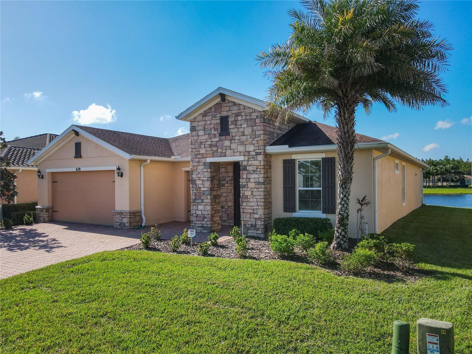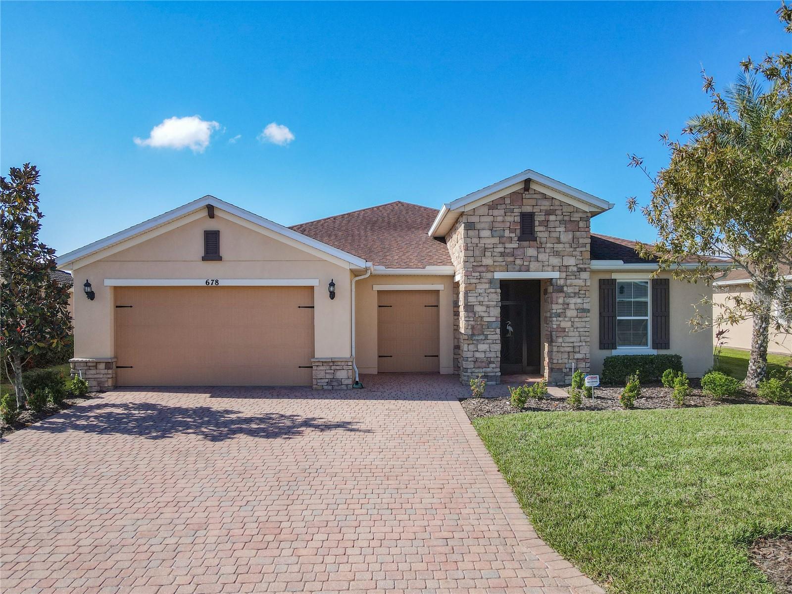 HUGE PRICE ADJUSTMENT….SELLERS RELOCATING. Welcome Home to a Stunning SORANO Model Home with stone accent facade and a screened front entry. This home has a large Primary Suite PLUS 3 Additional Bedrooms, 3 Full Baths, Gourmet Kitchen with Dining Room, Great Room, 2 car and Golf Cart Garage. Open Plan with a large screened lanai and an INCREDIBLE POND VIEW. The Gourmet Kitchen is nicely appointed with double ovens, a convenient walk-in pantry, 42" Kitchen Cabinetry, Stainless Steel Appliances, granite counters, recessed lighting, pendant prewires and a large island perfect for entertaining. The Primary Suite offers views of the pond, a very large walk-in closet, ensuite bath with dual sinks, walk-in shower and separate WC. Great home and with 4 bedrooms this floorplan is flexible, offering you the opportunity to convert one of the bedrooms to a Den, Study or Craft Room. Upgrades include: Whole House Water Softener, Epoxy Garage Floor, Hot Water Heater installed 2023, Recessed lighting in the Great Room, Trey Ceiling in Dining and Primary Suite, Crown Moulding and Tile Floors throughout - NO CARPETING. Enjoy the holidays with the whole family - this home has enough room for everyone! Solivita is an award winning 55 Plus GOLF CART COMMUNITY approximately 50 minutes from Disney and Orlando International Airport with over 5000 homes and 14,000 sf of amenity space. When you purchase in Solivita you are not only buying a home but a lifestyle. We have 4,300 acres of amenities, parks and recreation including 14 temperature controlled pools, ponds, gardens, tennis courts, pickleball courts, 2 18 Hole Championship Golf Courses, an aquatic Driving Range, putting green, community garden, and 2 State of the Art Amenity Centers complete with trainers, classes and the latest equipment. Play horseshoes, bocce ball, or join the Solivita softball gang for a friendly game. Take your “best friend” to the dog park or join friends for a meal or Happy Hour at one of our 3 restaurants. Learn a new craft, take a golf lesson at Stonegate Golf Club, join one of over 200 clubs, or take a class at Solivita University. Need a last minute gift… stop in K&M, our Pharmacy/Sundries shop in the Village Center. The HOA maintains the landscaping and irrigation throughout the community as well as security and fiber optic internet and television. Across from the main entrance are a hospital, medical offices and a new shopping center featuring TJMAXX, 5 BELOW, PETCO, ULTA BEAUTY, URGENT CARE, TD BANK and more to come. Solivita is a great place to call home, call to make an appointment to view this home today!