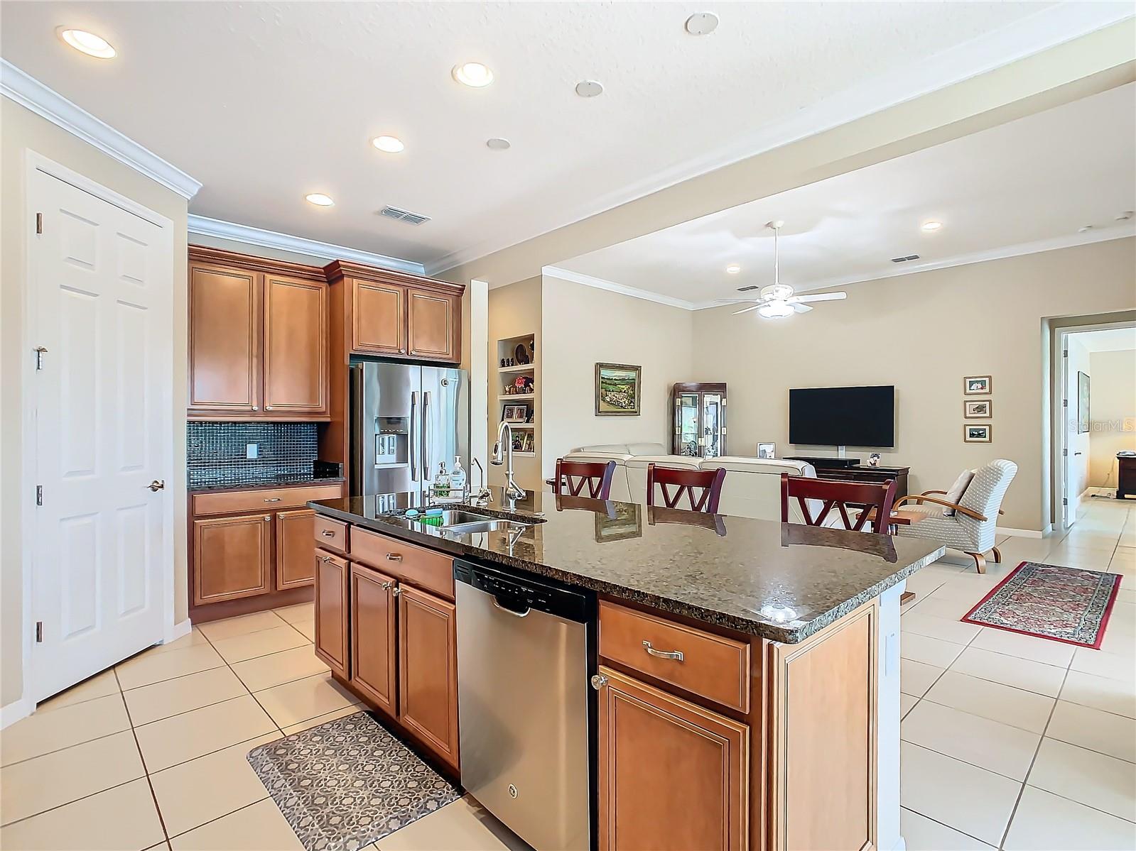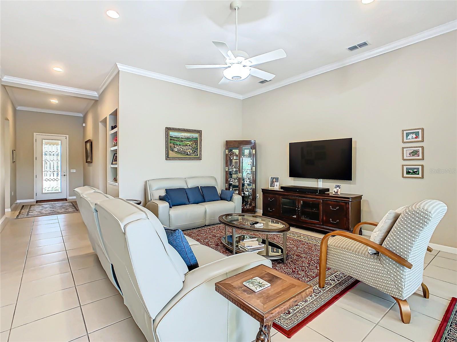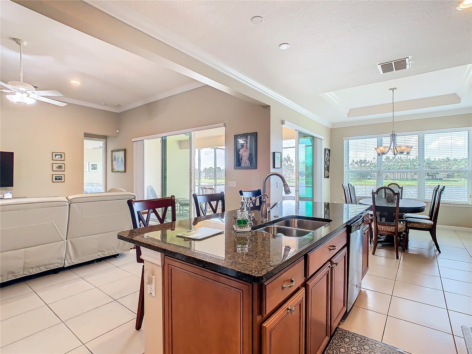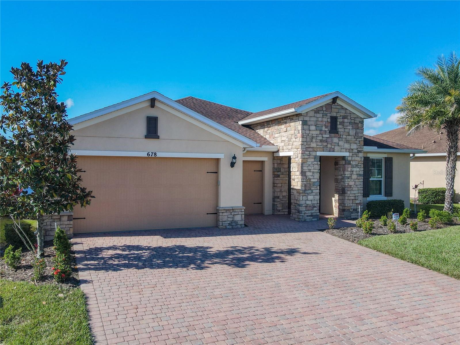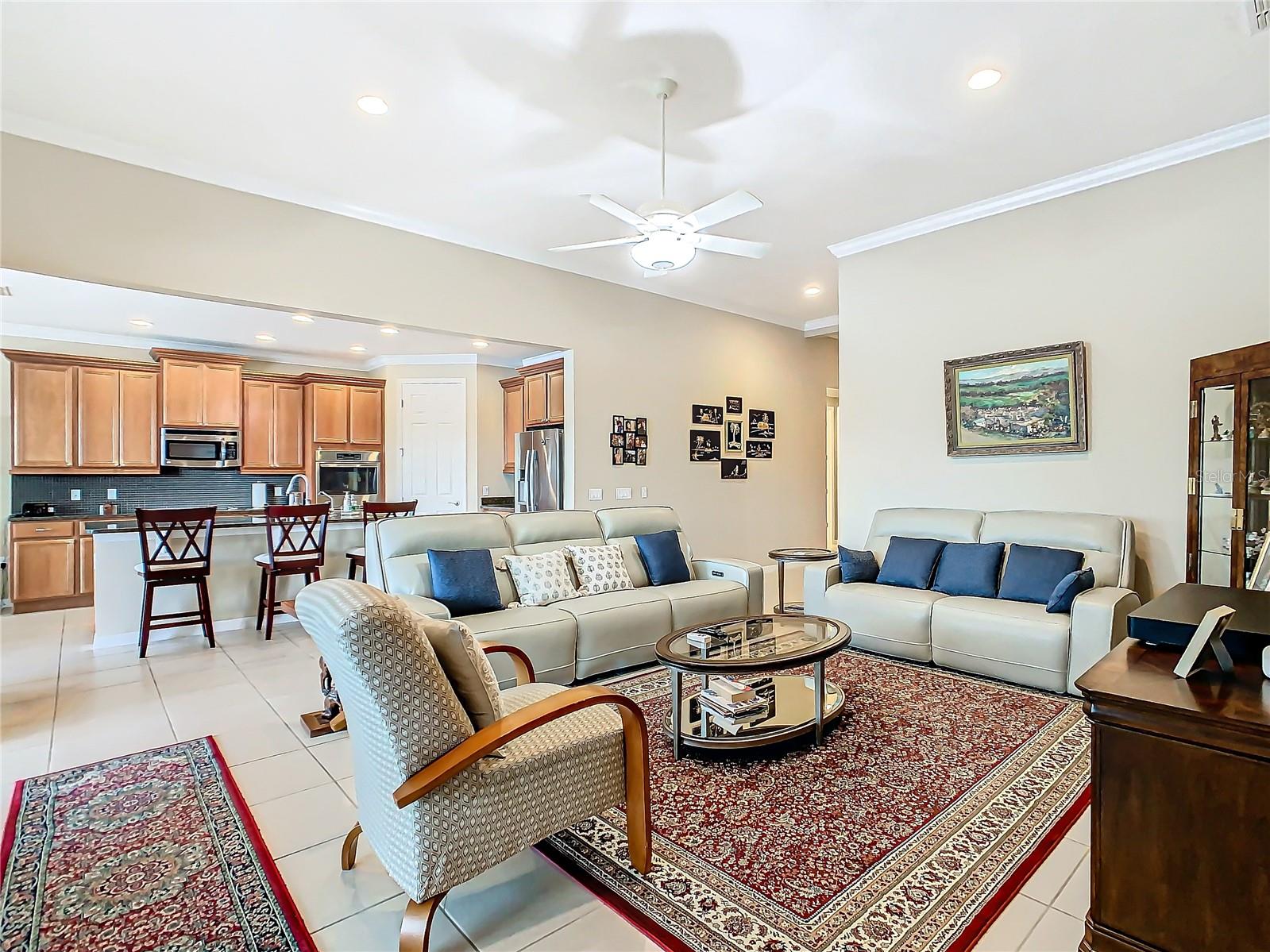HUGE PRICE ADJUSTMENT….SELLERS RELOCATING. Welcome Home to a Stunning SORANO Model Home with stone accent facade and a screened front entry. This home has a large Primary Suite PLUS 3 Additional Bedrooms, 3 Full Baths, Gourmet Kitchen with Dining Room, Great Room, 2 car and Golf Cart Garage. Open Plan with a large screened lanai and an INCREDIBLE POND VIEW. The Gourmet Kitchen is nicely appointed with double ovens, a convenient walk-in pantry, 42" Kitchen Cabinetry, Stainless Steel Appliances, granite counters, recessed lighting, pendant prewires and a large island perfect for entertaining. The Primary Suite offers views of the pond, a very large walk-in closet, ensuite bath with dual sinks, walk-in shower and separate WC. Great home and with 4 bedrooms this floorplan is flexible, offering you the opportunity to convert one of the bedrooms to a Den, Study or Craft Room. Upgrades include: Whole House Water Softener, Epoxy Garage Floor, Hot Water Heater installed 2023, Recessed lighting in the Great Room, Trey Ceiling in Dining and Primary Suite, Crown Moulding and Tile Floors throughout - NO CARPETING. Enjoy the holidays with the whole family - this home has enough room for everyone! Solivita is an award winning 55 Plus GOLF CART COMMUNITY approximately 50 minutes from Disney and Orlando International Airport with over 5000 homes and 14,000 sf of amenity space. When you purchase in Solivita you are not only buying a home but a lifestyle. We have 4,300 acres of amenities, parks and recreation including 14 temperature controlled pools, ponds, gardens, tennis courts, pickleball courts, 2 18 Hole Championship Golf Courses, an aquatic Driving Range, putting green, community garden, and 2 State of the Art Amenity Centers complete with trainers, classes and the latest equipment. Play horseshoes, bocce ball, or join the Solivita softball gang for a friendly game. Take your “best friend” to the dog park or join friends for a meal or Happy Hour at one of our 3 restaurants. Learn a new craft, take a golf lesson at Stonegate Golf Club, join one of over 200 clubs, or take a class at Solivita University. Need a last minute gift… stop in K&M, our Pharmacy/Sundries shop in the Village Center. The HOA maintains the landscaping and irrigation throughout the community as well as security and fiber optic internet and television. Across from the main entrance are a hospital, medical offices and a new shopping center featuring TJMAXX, 5 BELOW, PETCO, ULTA BEAUTY, URGENT CARE, TD BANK and more to come. Solivita is a great place to call home, call to make an appointment to view this home today!