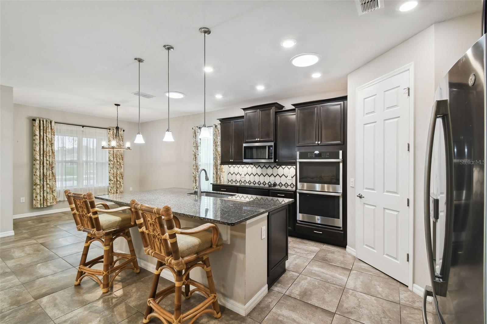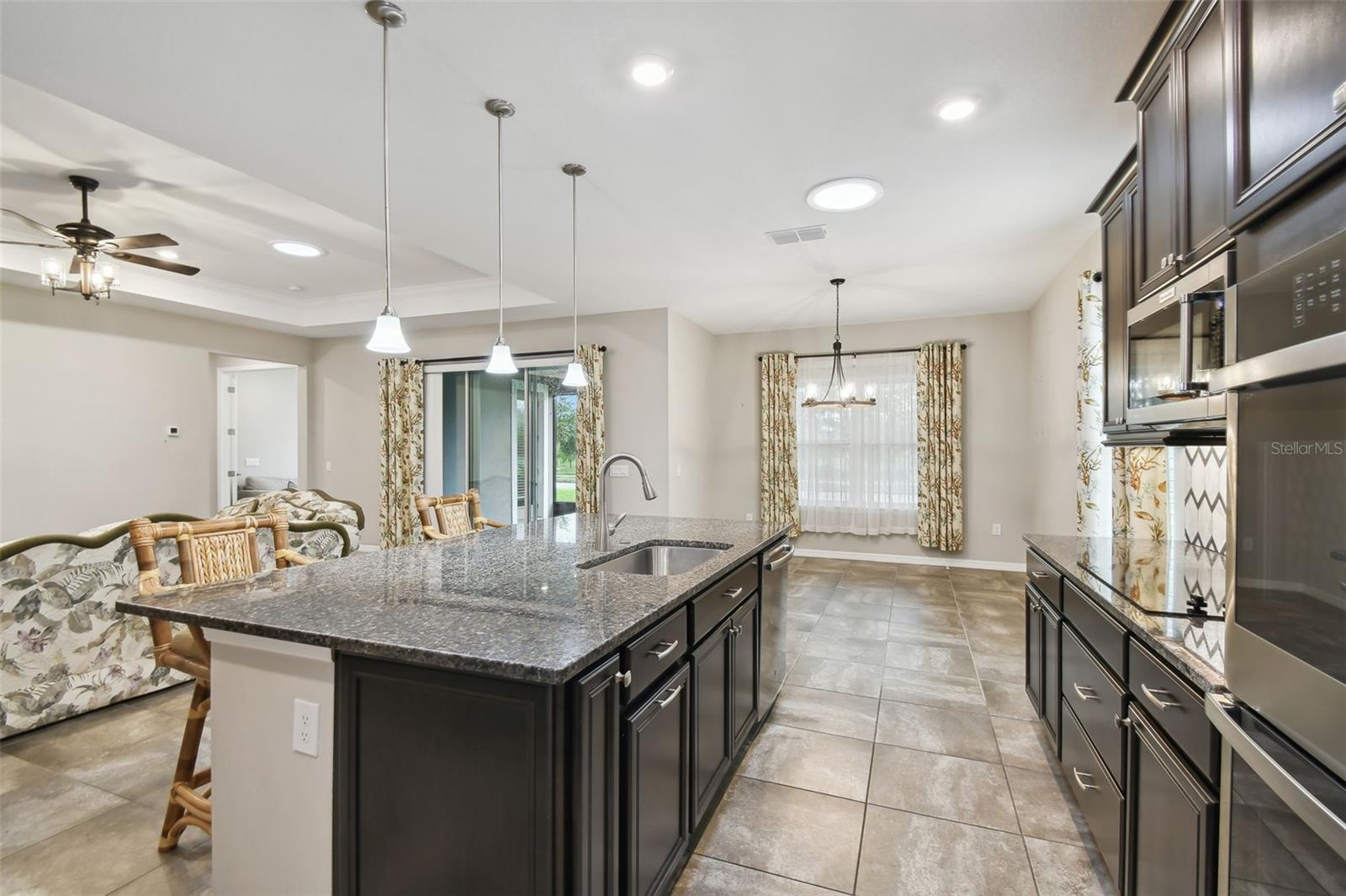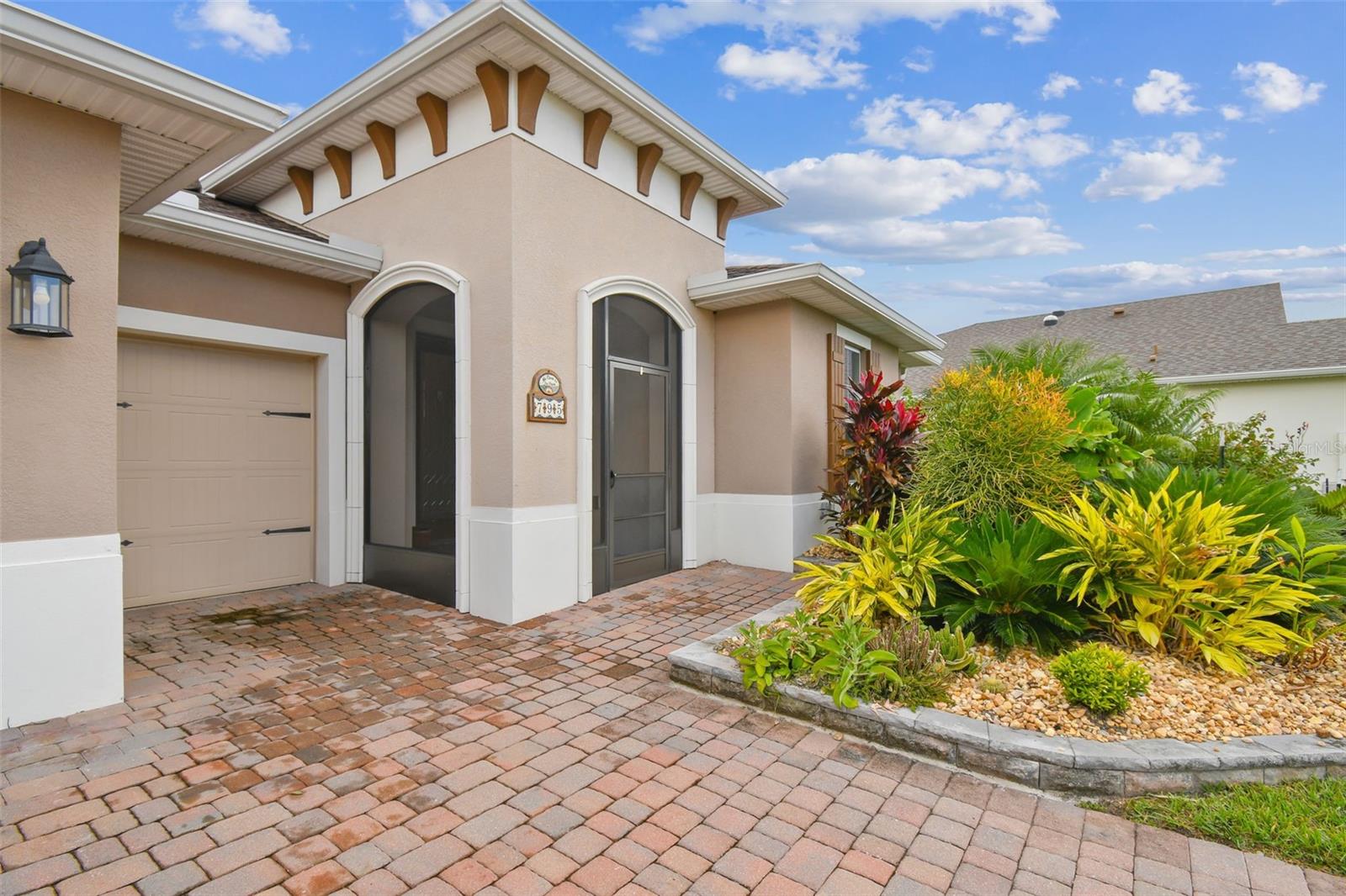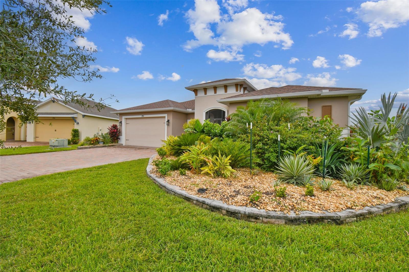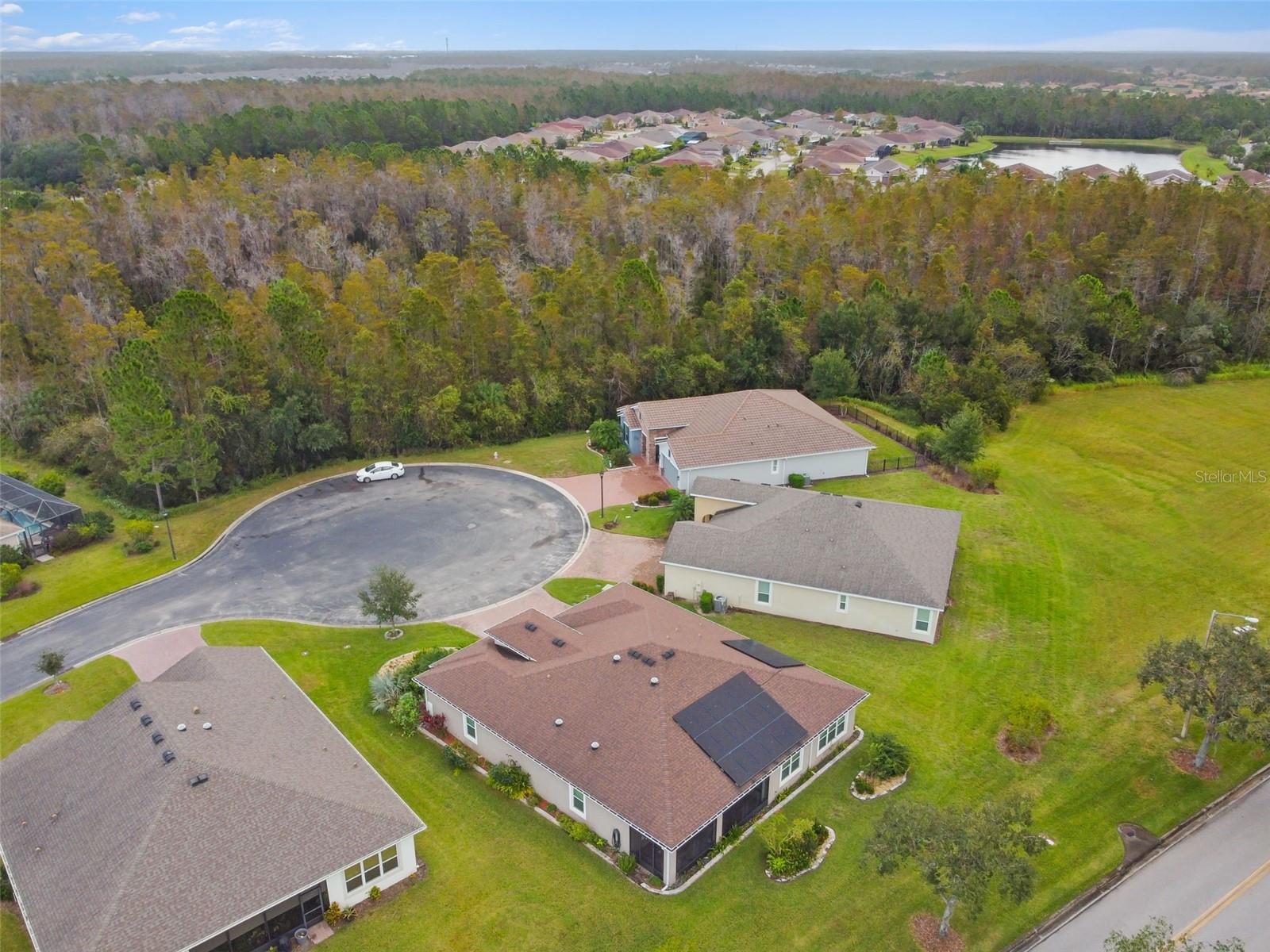 HUGE PRICE REDUCTION! Welcome to this exquisite 2020 Siena Model home, perfectly situated on a serene cul-de-sac, offering both privacy and tranquility. This stunning residence features custom landscaping that enhances its curb appeal and provides a picturesque water view that adds to the overall charm. The Paid SOLAR PANELS keep your power bills below $30 per month. Inside, you will find a spacious 3-bedroom, 2.5-bathroom layout, complemented by a versatile den/study that can easily adapt to your lifestyle needs, whether as a home office, craft room, or reading nook. The open concept design creates a seamless flow between the living spaces, making it ideal for both everyday living and entertaining guests. As you enter, you are greeted by a screened front entryway adorned with a beautiful leaded glass door, welcoming you into a bright and airy great room. This inviting space features a stunning tray ceiling and strategically placed solar tubes that allow natural light to flood the area, creating a warm and welcoming atmosphere. The gourmet kitchen is a true highlight of the home, perfect for culinary enthusiasts. It boasts an eat-at bar, elegant granite countertops, and a stylish tile backsplash that catches the eye. The kitchen is equipped with a high-quality stove top, a double oven for all your baking needs, and a generously sized walk-in pantry that provides ample storage space. Retreat to the extra-large primary bedroom, where comfort meets elegance. This sanctuary features a lighted crown molding feature that adds a touch of sophistication, along with two spacious walk-in closets to accommodate your wardrobe. The primary bathroom is equally impressive, offering a large shower and double sinks, providing both luxury and convenience. The home includes two additional guest bedrooms, each with walk-in closets, ensuring that family and friends have plenty of space for their belongings. A thoughtfully designed laundry room adds to the home's functionality, complete with custom cabinets and a sink, making laundry day a breeze. For those who enjoy outdoor living, the 2-car garage comes with an additional golf cart garage, providing plenty of storage for your vehicles and recreational equipment. Step outside to the screened lanai, where you can relax and unwind while taking in the breathtaking sunset views. This outdoor space is perfect for morning coffees or evening gatherings, allowing you to connect with nature right from your home. An added bonus of this remarkable property is its energy efficiency. The Solar Panels keep your power bills below $30 per month. This not only contributes to significant savings but this home qualifies for NEW HOME insurance discounts, making it a smart investment for the future. All this in one of the top 55+ communities in America. Solovita offers residents access to state of the art amenities and work out facilities, dance and aerobics studios, a business center, 14 heated swimming pools, 2 heated spas, tennis courts, pickleball courts, shuffleboard, bocce ball, billiards room, art gallery, 3 restaurants and 2 championship 18-hole golf courses, driving range and putting course. Don't miss out on the opportunity to have a first class lifestyle. Check out the Matterport 3D Tour link