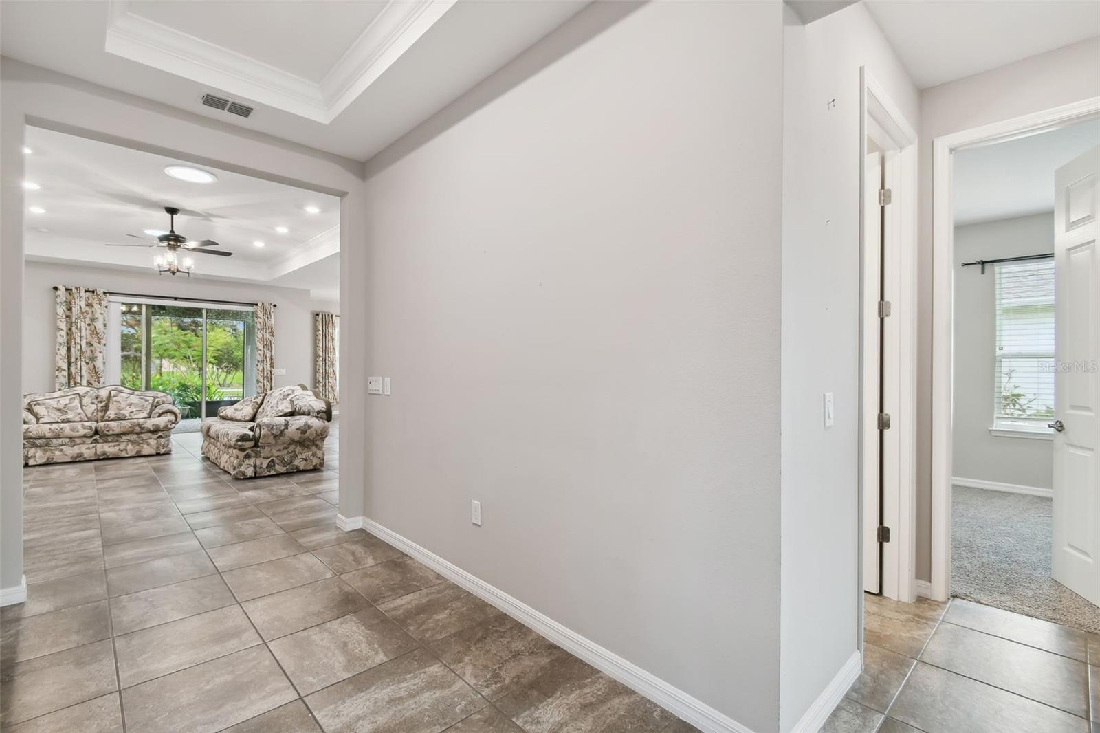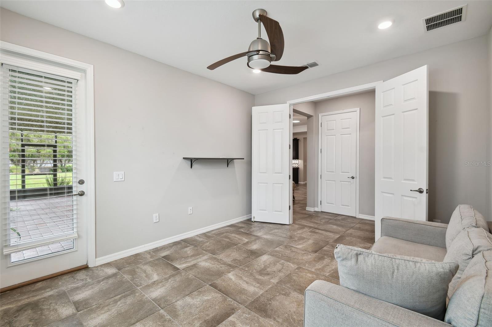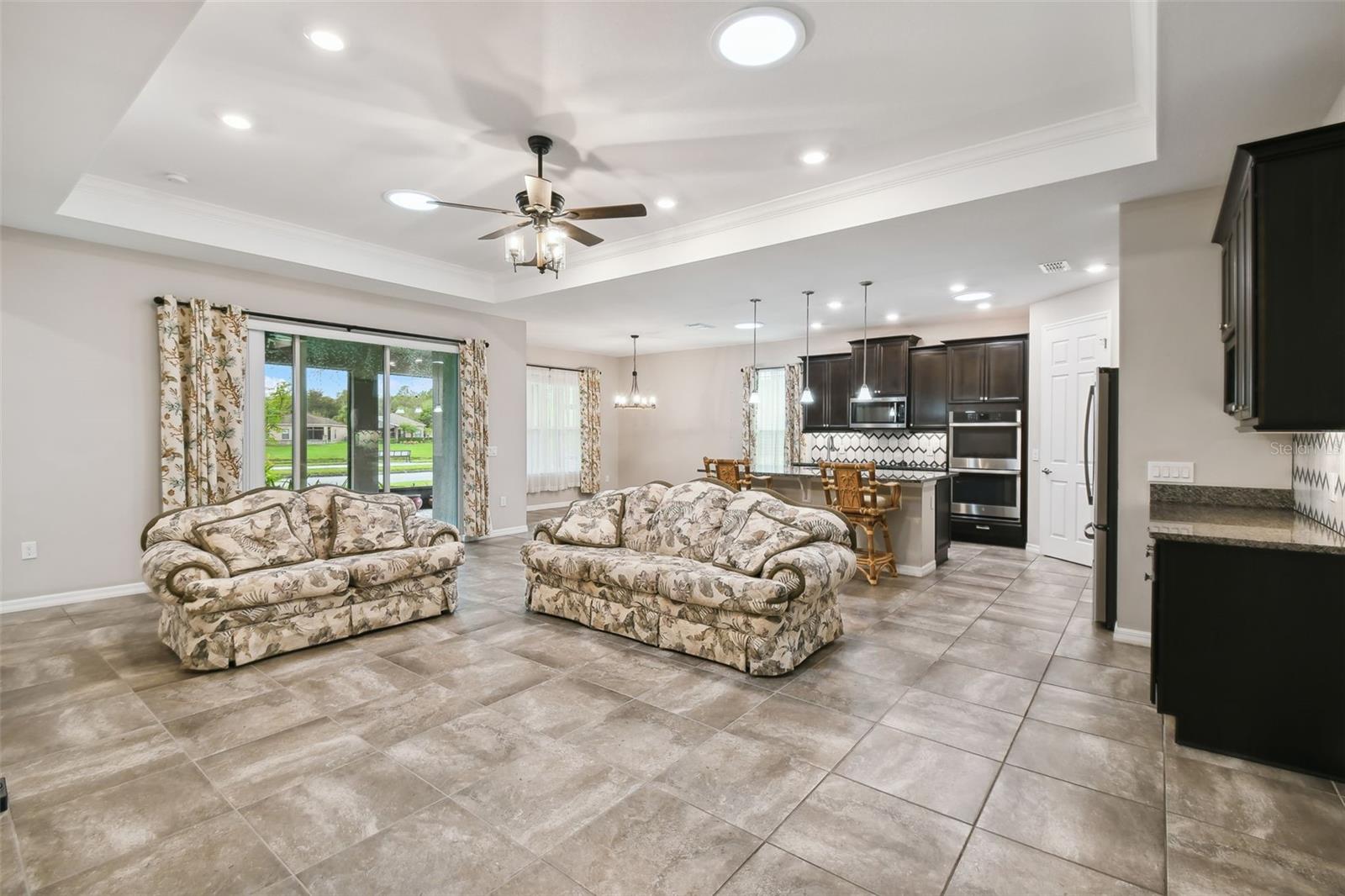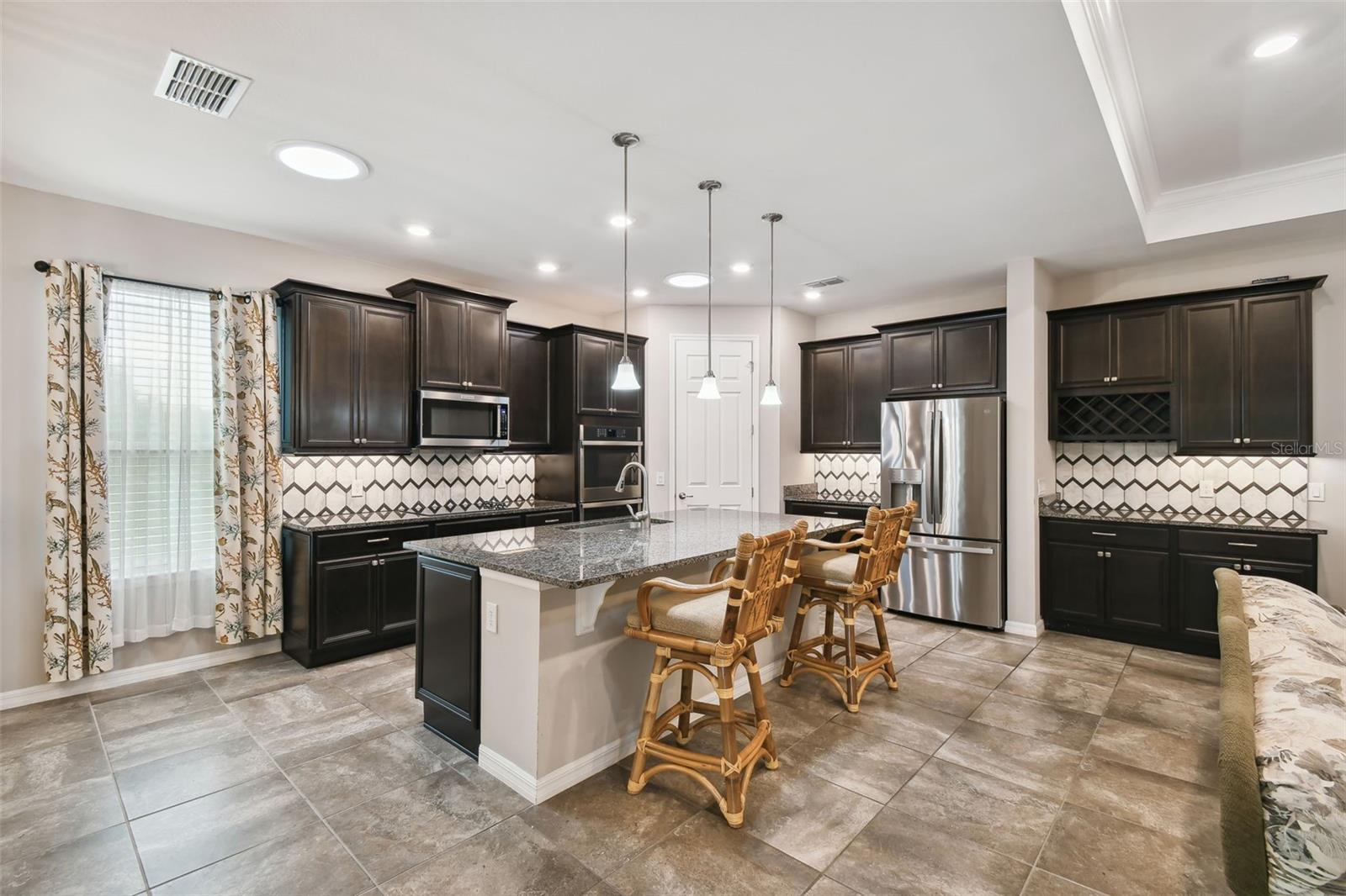 HUGE PRICE REDUCTION! Welcome to this exquisite 2020 Siena Model home, perfectly situated on a serene cul-de-sac, offering both privacy and tranquility. This stunning residence features custom landscaping that enhances its curb appeal and provides a picturesque water view that adds to the overall charm. The Paid SOLAR PANELS keep your power bills below $30 per month. Inside, you will find a spacious 3-bedroom, 2.5-bathroom layout, complemented by a versatile den/study that can easily adapt to your lifestyle needs, whether as a home office, craft room, or reading nook. The open concept design creates a seamless flow between the living spaces, making it ideal for both everyday living and entertaining guests. As you enter, you are greeted by a screened front entryway adorned with a beautiful leaded glass door, welcoming you into a bright and airy great room. This inviting space features a stunning tray ceiling and strategically placed solar tubes that allow natural light to flood the area, creating a warm and welcoming atmosphere. The gourmet kitchen is a true highlight of the home, perfect for culinary enthusiasts. It boasts an eat-at bar, elegant granite countertops, and a stylish tile backsplash that catches the eye. The kitchen is equipped with a high-quality stove top, a double oven for all your baking needs, and a generously sized walk-in pantry that provides ample storage space. Retreat to the extra-large primary bedroom, where comfort meets elegance. This sanctuary features a lighted crown molding feature that adds a touch of sophistication, along with two spacious walk-in closets to accommodate your wardrobe. The primary bathroom is equally impressive, offering a large shower and double sinks, providing both luxury and convenience. The home includes two additional guest bedrooms, each with walk-in closets, ensuring that family and friends have plenty of space for their belongings. A thoughtfully designed laundry room adds to the home's functionality, complete with custom cabinets and a sink, making laundry day a breeze. For those who enjoy outdoor living, the 2-car garage comes with an additional golf cart garage, providing plenty of storage for your vehicles and recreational equipment. Step outside to the screened lanai, where you can relax and unwind while taking in the breathtaking sunset views. This outdoor space is perfect for morning coffees or evening gatherings, allowing you to connect with nature right from your home. An added bonus of this remarkable property is its energy efficiency. The Solar Panels keep your power bills below $30 per month. This not only contributes to significant savings but this home qualifies for NEW HOME insurance discounts, making it a smart investment for the future. All this in one of the top 55+ communities in America. Solovita offers residents access to state of the art amenities and work out facilities, dance and aerobics studios, a business center, 14 heated swimming pools, 2 heated spas, tennis courts, pickleball courts, shuffleboard, bocce ball, billiards room, art gallery, 3 restaurants and 2 championship 18-hole golf courses, driving range and putting course. Don't miss out on the opportunity to have a first class lifestyle. Check out the Matterport 3D Tour link