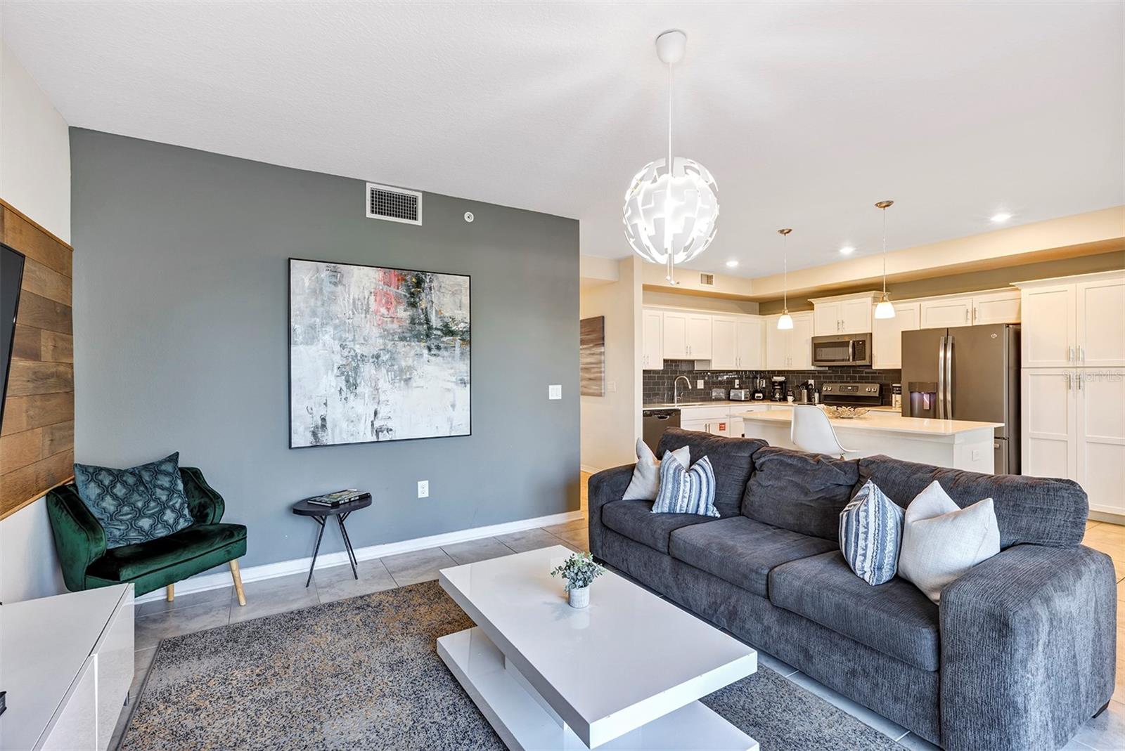 LOADS OF FUTURE BOOKINGS. Beautifully furnished, successful short term rental in Storey Lake. Well-maintained home with future bookings if you continue with current management. In the kitchen, you'll find upgraded finishes such as quartz countertops, 42" cabinets, and stainless steel appliances. The home is professionally and elegantly furnished. This community offers the ultimate resort experience for Orlando vacationers. Storey Lake features an array of amenities for active families, sport courts, splash pad, swimming pool, fitness center, putt putt golf, and more! The monthly HOA fee includes cable, internet, and water. This condo makes a wonderful vacation home in sunny Florida. Invest in a successful short-term rental and start earning money on day 1!