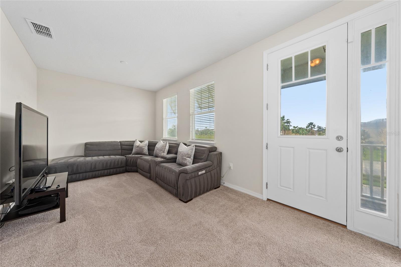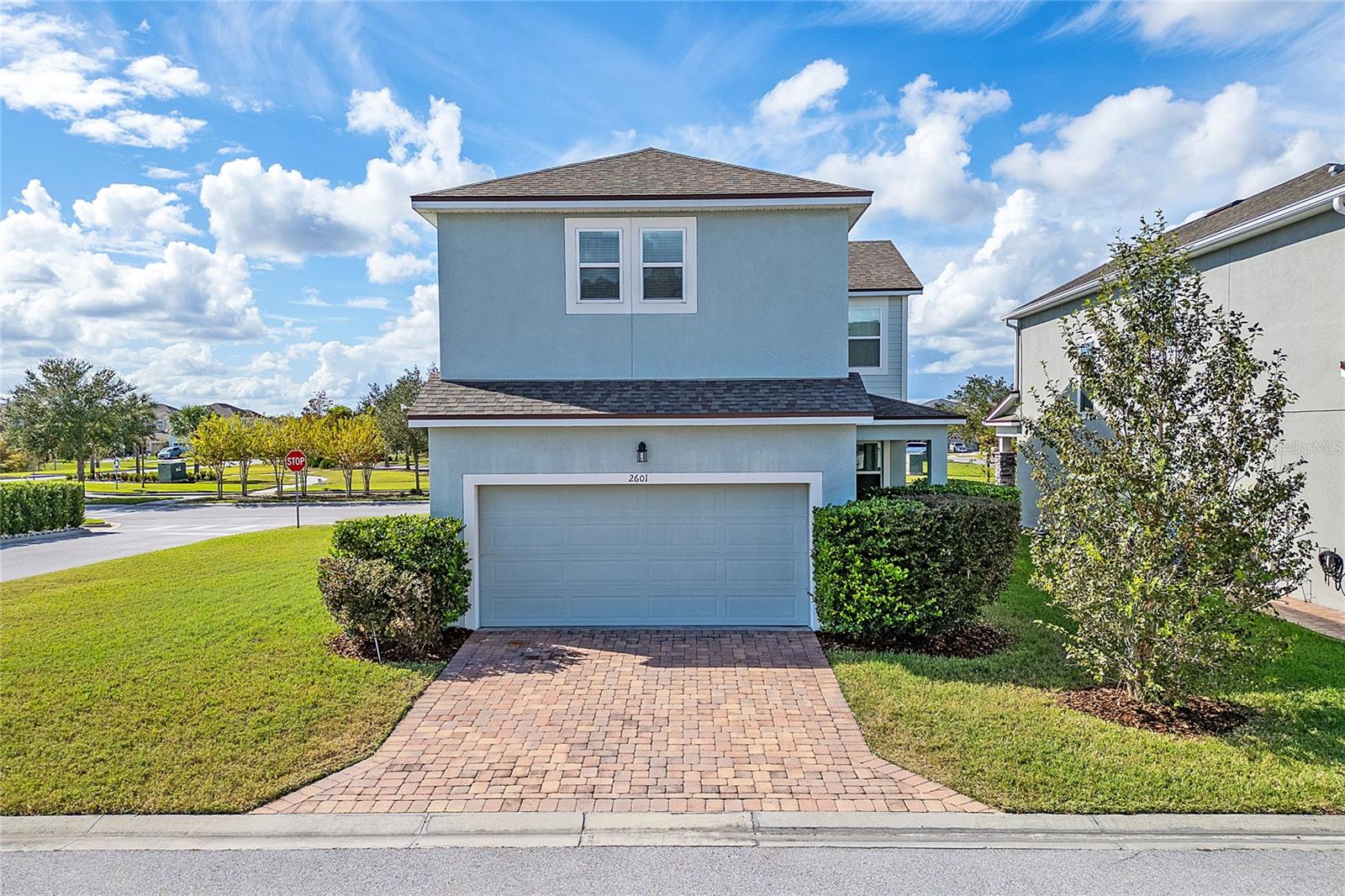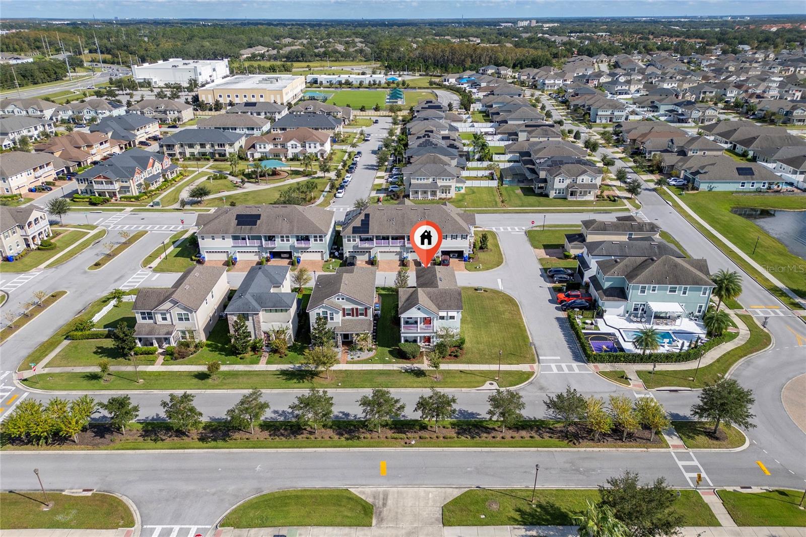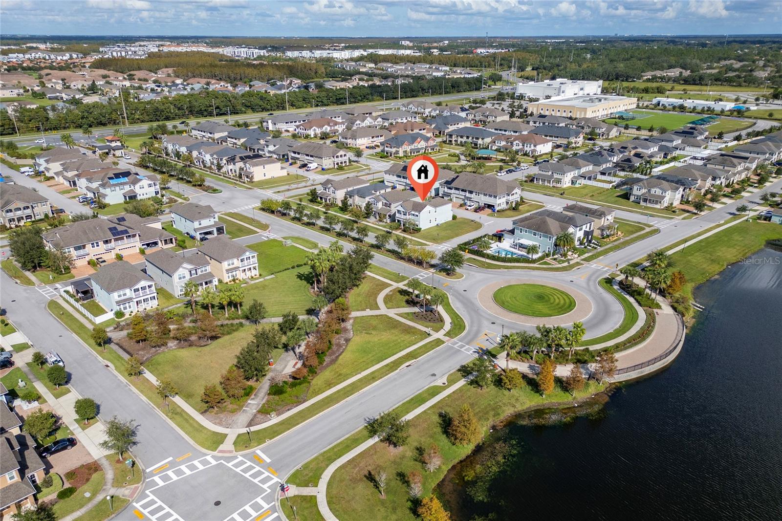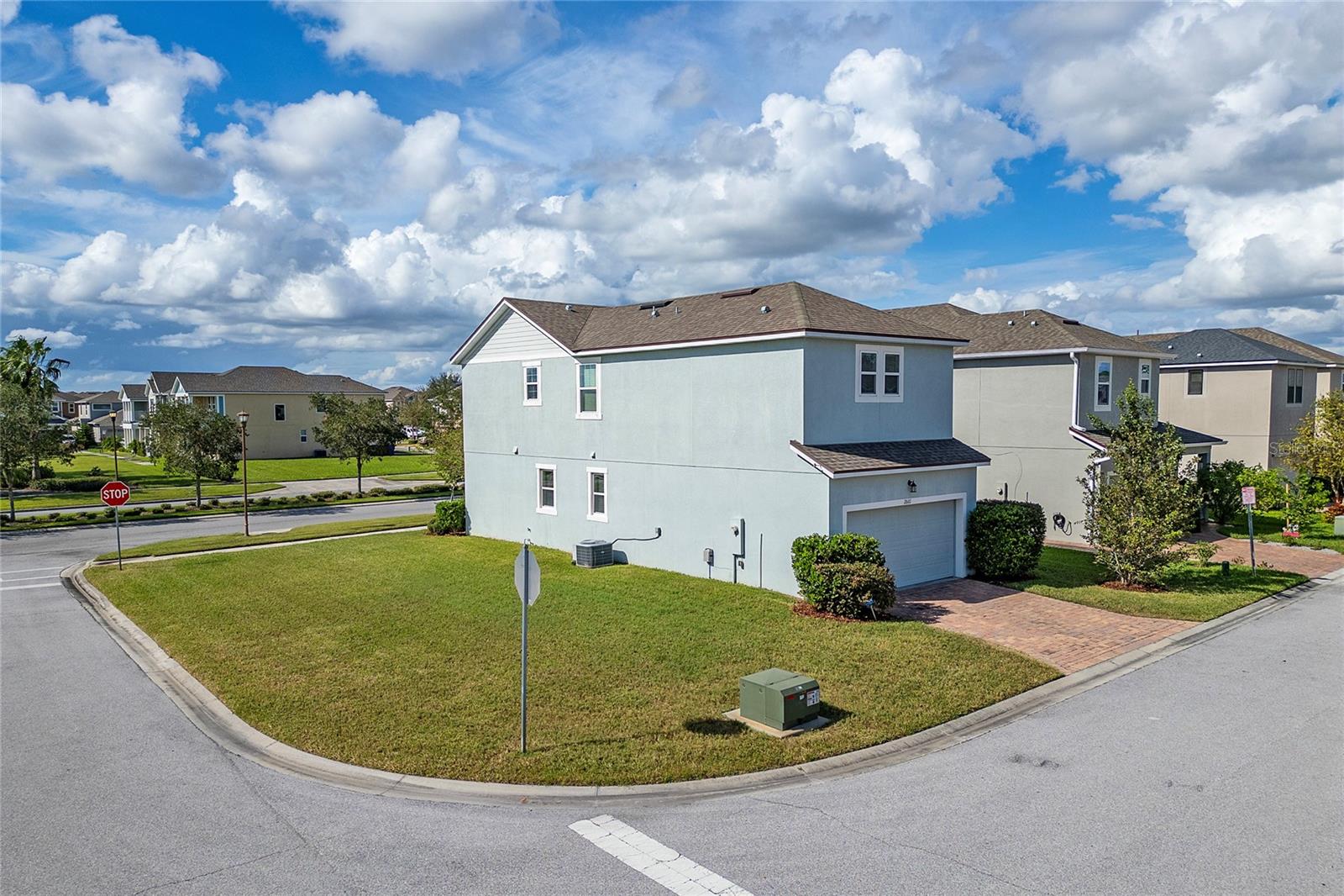 This stunning two-story home situated in an oversize corner lot, 24/7 gated community, offers 3 bedrooms, 2.5 bathrooms, and a versatile den/office space, perfect for work or leisure. The open-concept kitchen features modern quartz countertops and stainless-steel appliances, while a convenient half-bath is ideal for guests. The second-floor master suite boasts tray ceilings, dual walk-in closets, and a luxurious en-suite bath with a luxurious modern vanity with dual sinks. Two additional spacious bedrooms share a common bathroom, and the home includes a separate laundry room with washer and dryer hookups. Enjoy outdoor living with three patios, two on the first floor and one on the second, with beautiful pond views. The back-loading two-car garage has its own private entrance. Situated in a family-friendly community with 24-hour security, resort-style amenities such as a pool, fitness center, clubhouse, and playground, this home is just minutes from shopping, dining, area attractions, and major highways. It’s the perfect blend of comfort, convenience, and luxury.