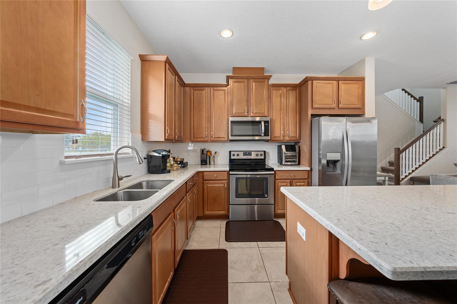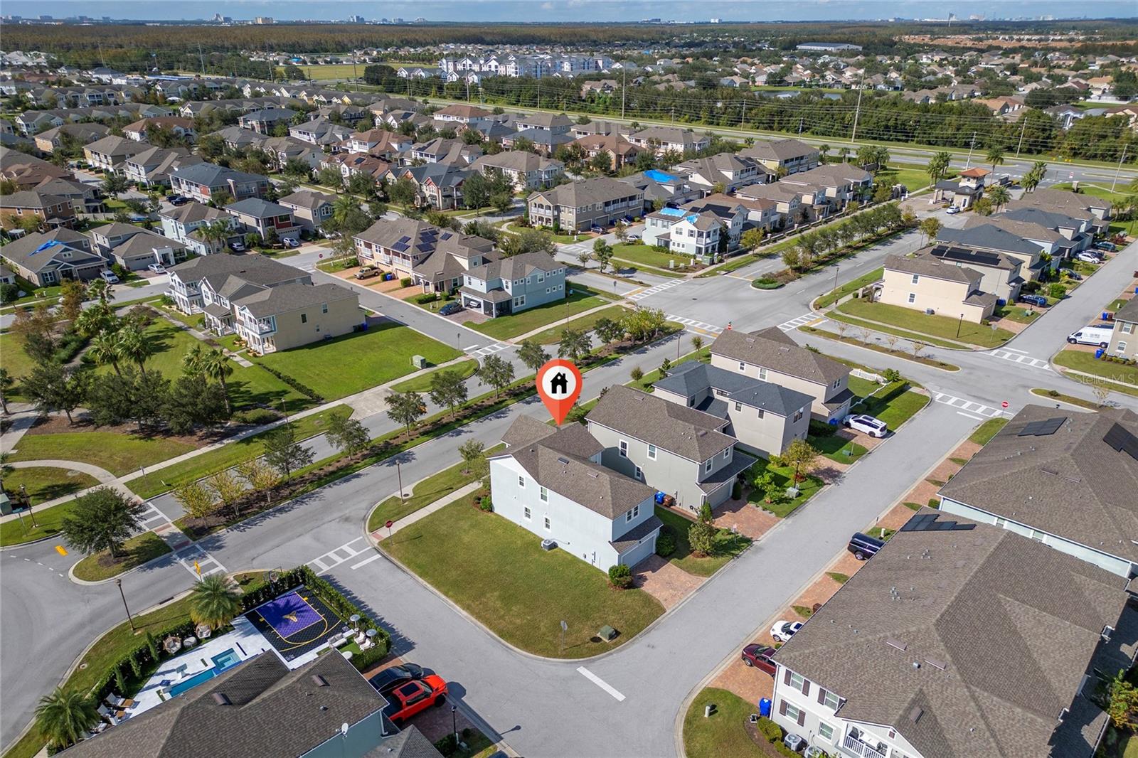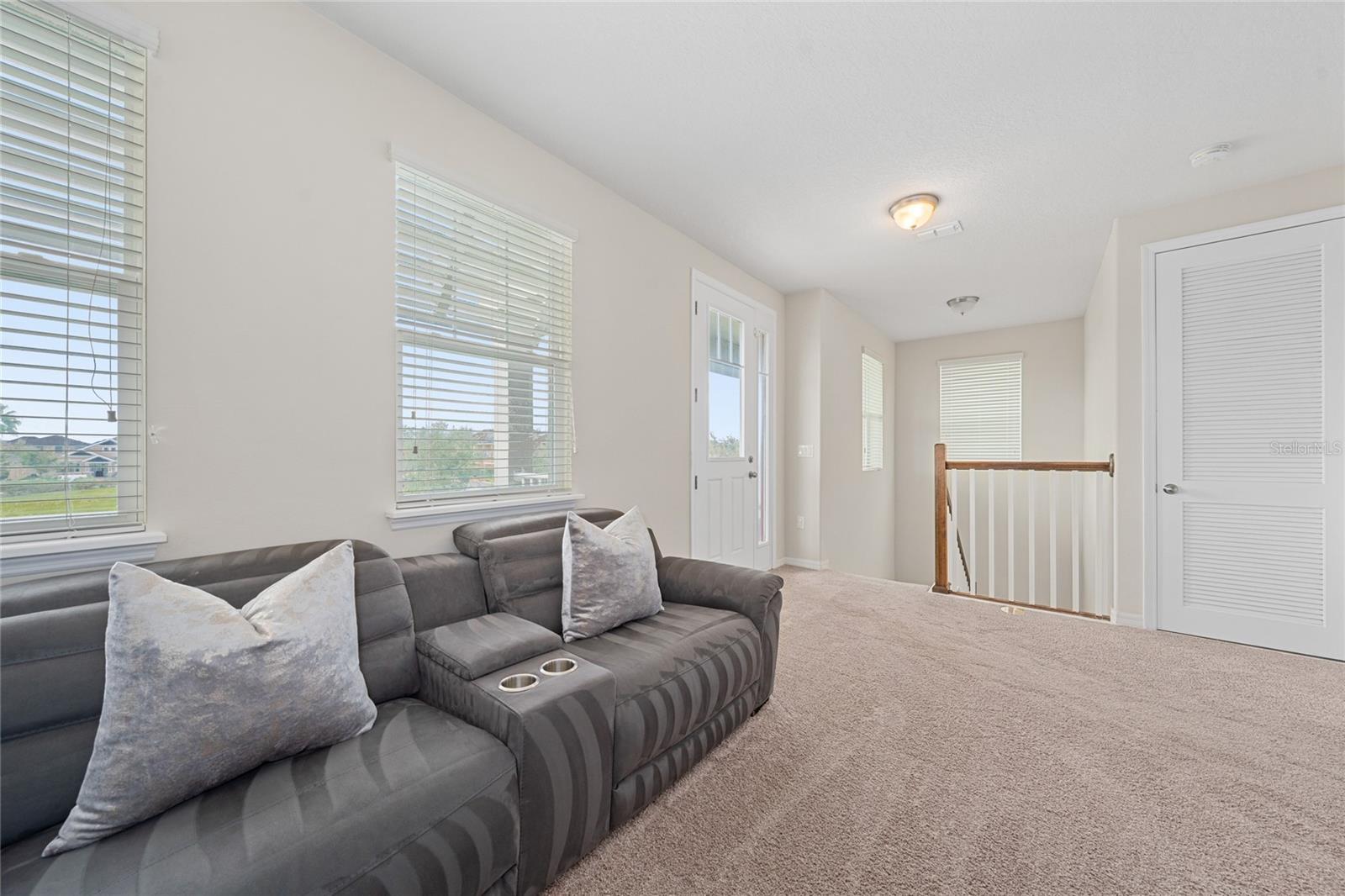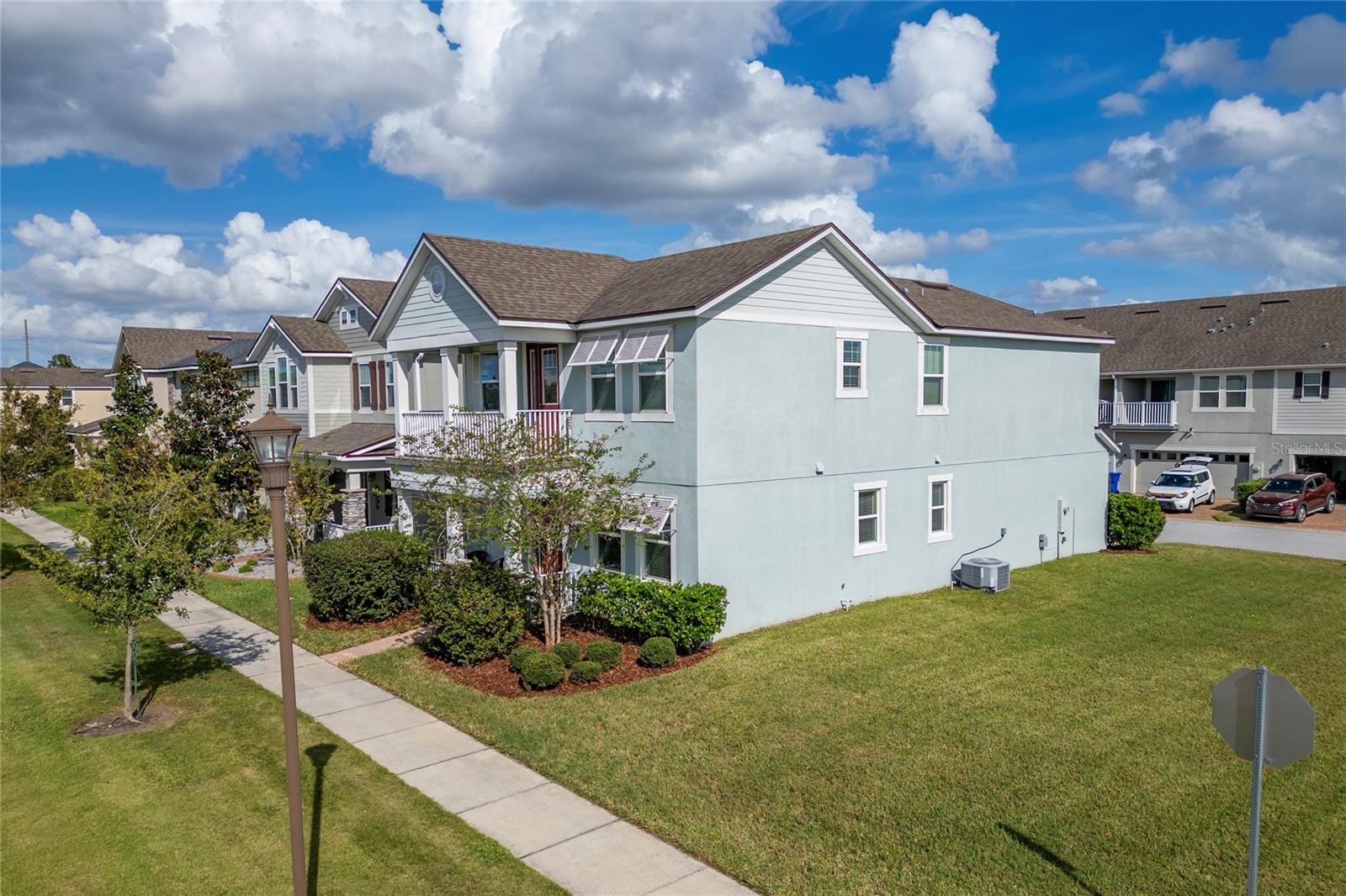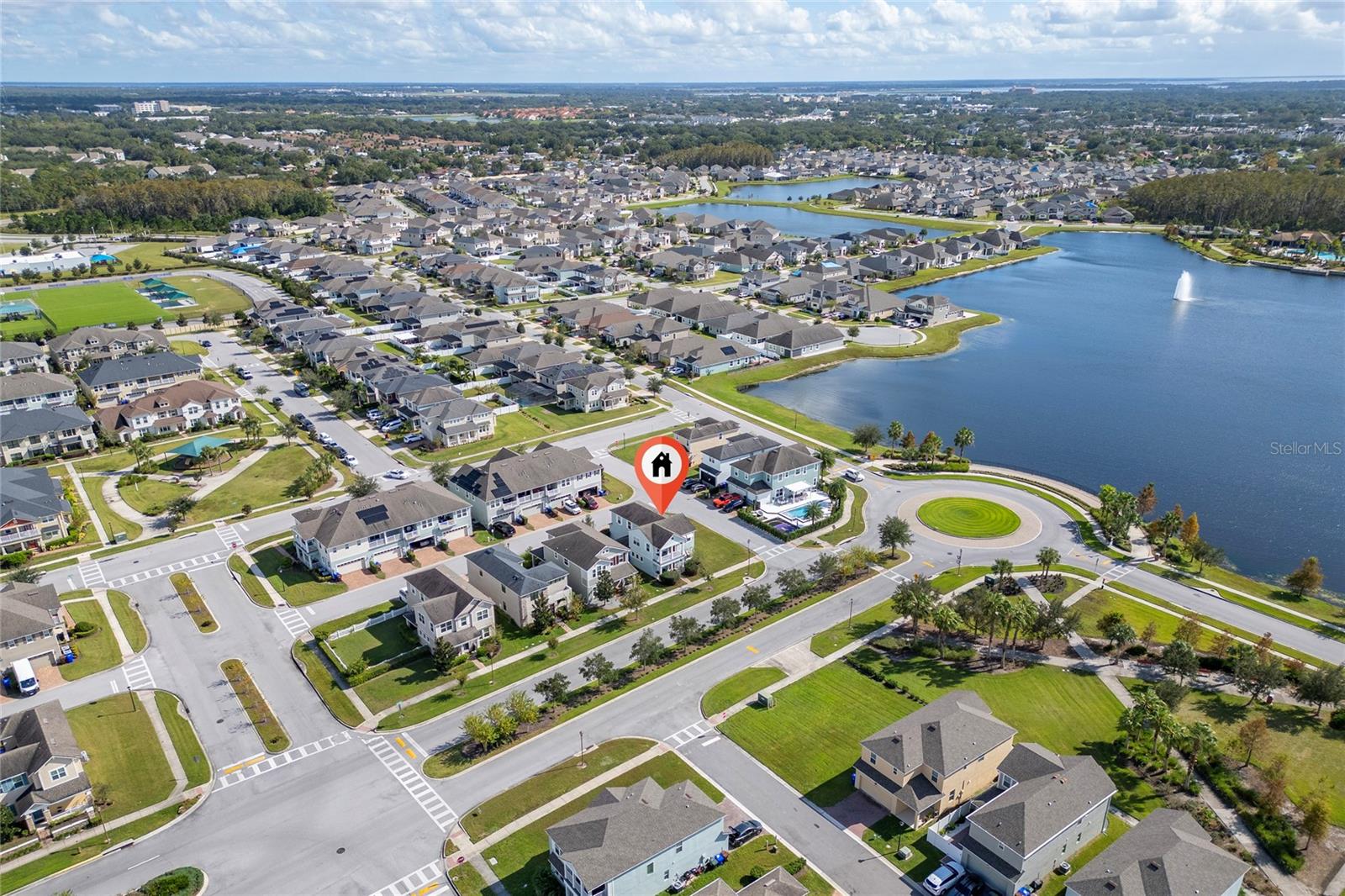 This stunning two-story home situated in an oversize corner lot, 24/7 gated community, offers 3 bedrooms, 2.5 bathrooms, and a versatile den/office space, perfect for work or leisure. The open-concept kitchen features modern quartz countertops and stainless-steel appliances, while a convenient half-bath is ideal for guests. The second-floor master suite boasts tray ceilings, dual walk-in closets, and a luxurious en-suite bath with a luxurious modern vanity with dual sinks. Two additional spacious bedrooms share a common bathroom, and the home includes a separate laundry room with washer and dryer hookups. Enjoy outdoor living with three patios, two on the first floor and one on the second, with beautiful pond views. The back-loading two-car garage has its own private entrance. Situated in a family-friendly community with 24-hour security, resort-style amenities such as a pool, fitness center, clubhouse, and playground, this home is just minutes from shopping, dining, area attractions, and major highways. It’s the perfect blend of comfort, convenience, and luxury.