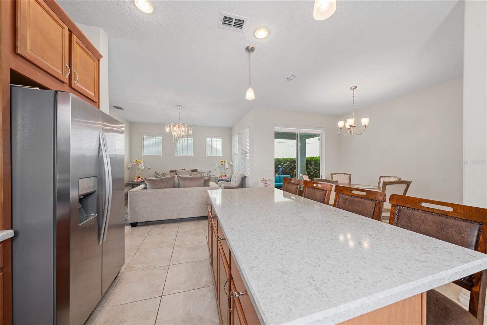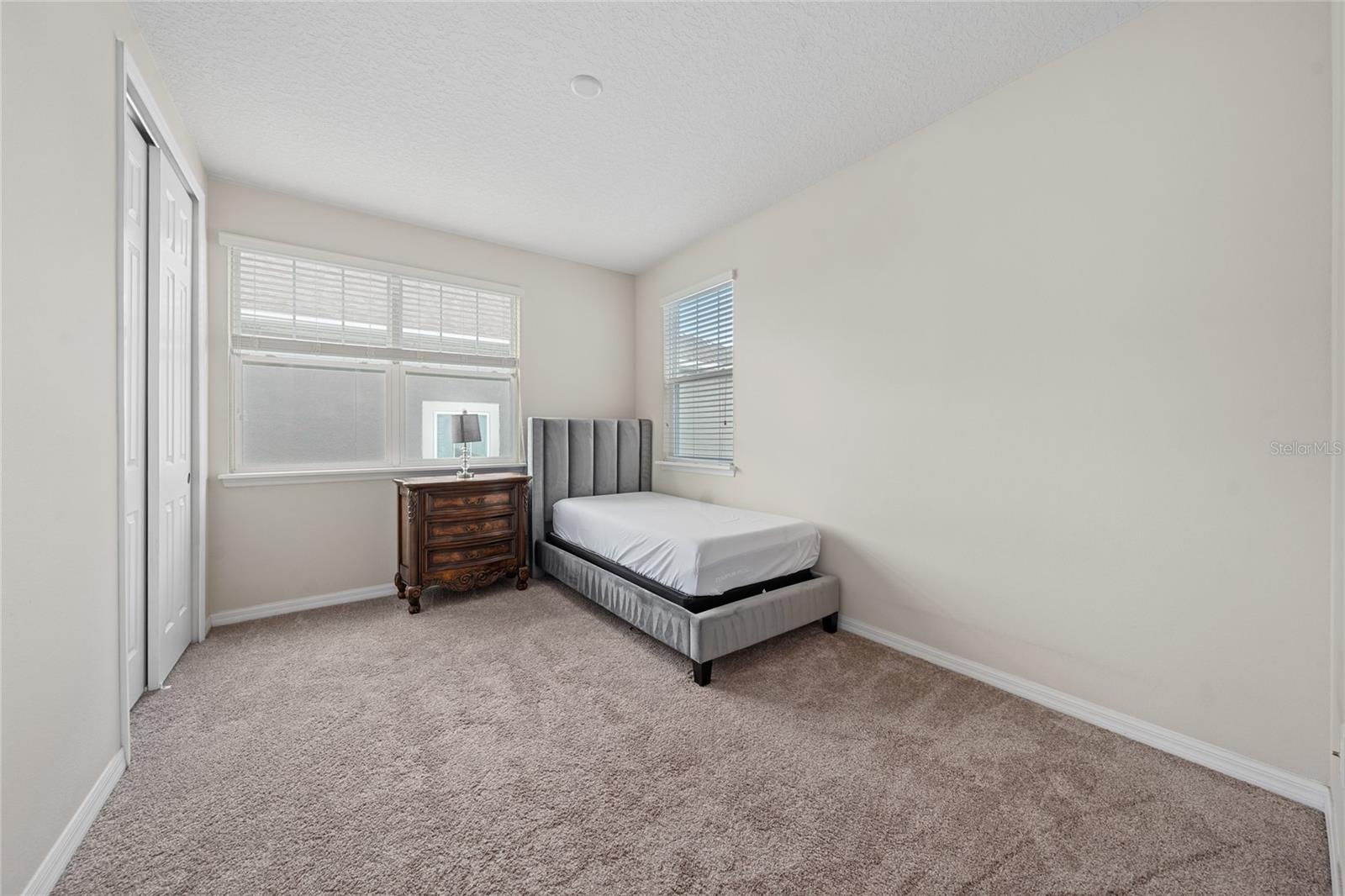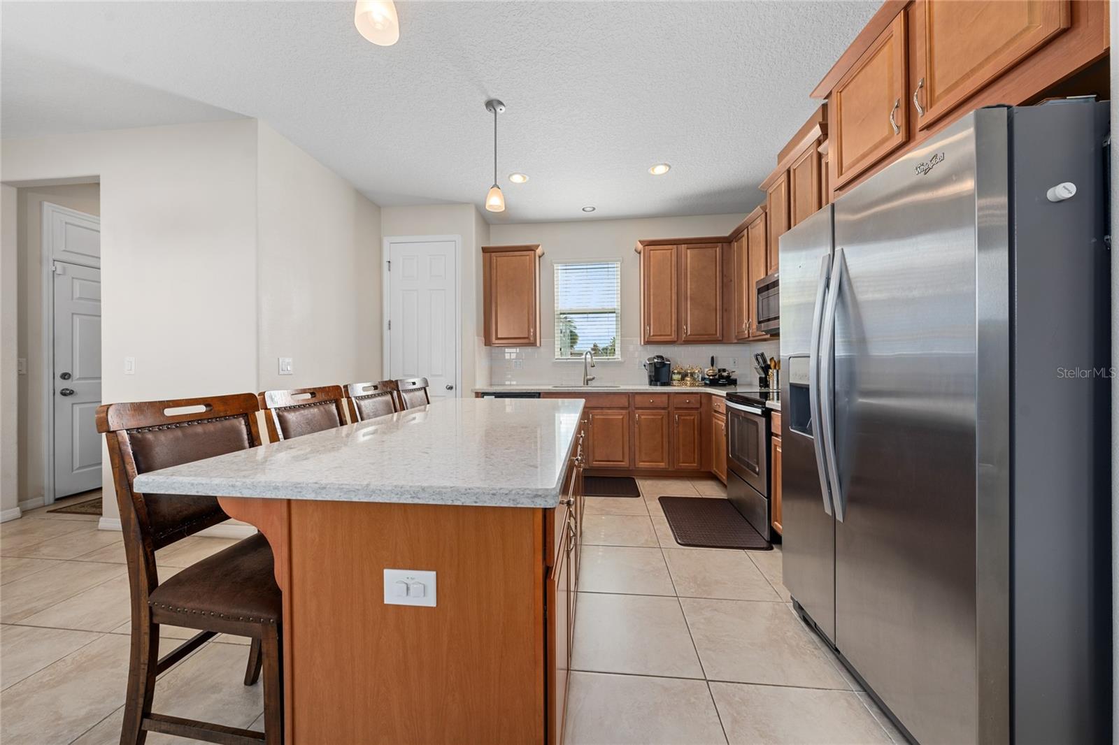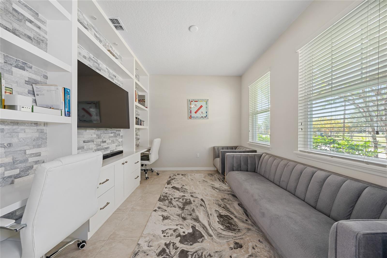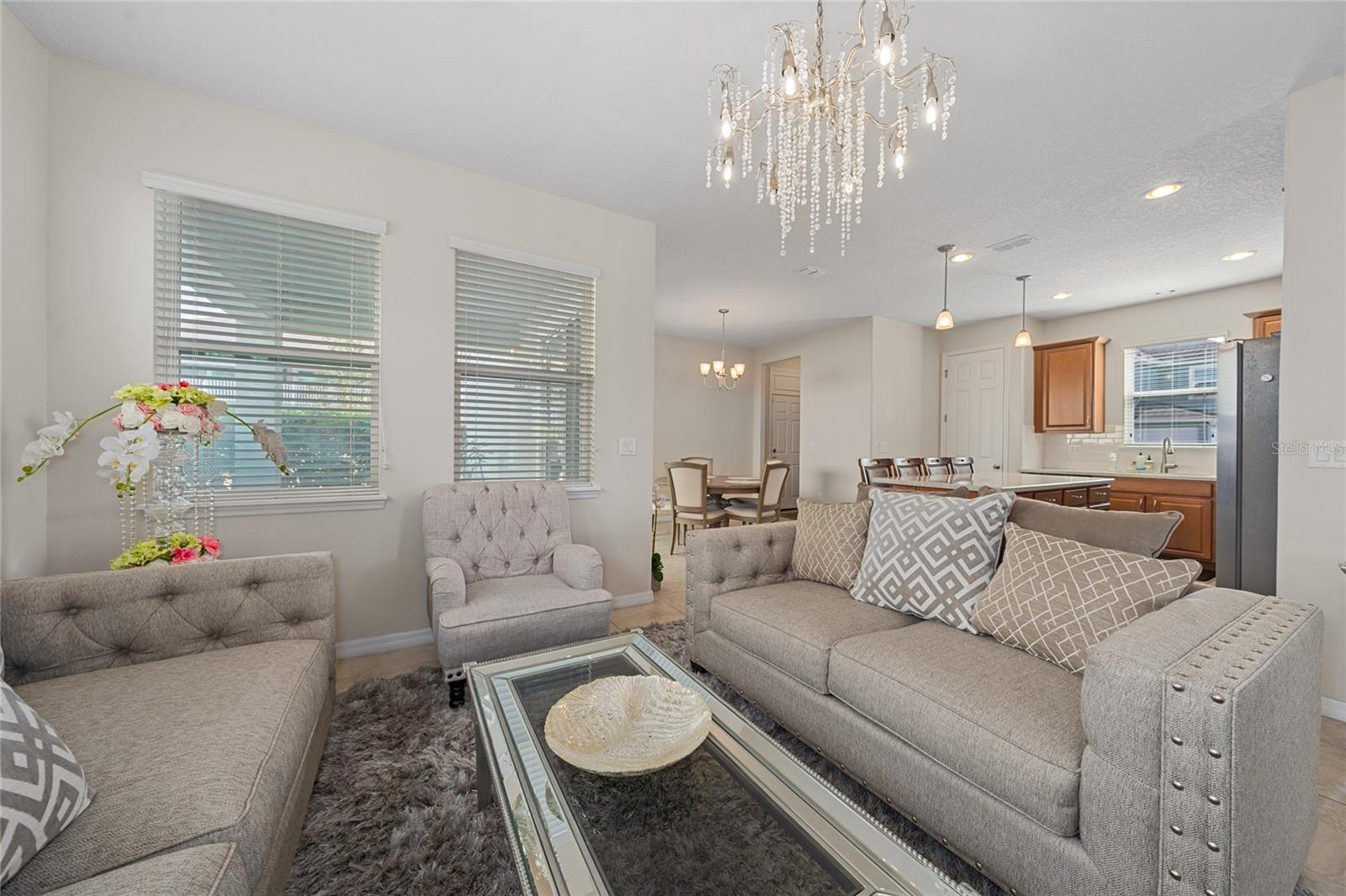 This stunning two-story home situated in an oversize corner lot, 24/7 gated community, offers 3 bedrooms, 2.5 bathrooms, and a versatile den/office space, perfect for work or leisure. The open-concept kitchen features modern quartz countertops and stainless-steel appliances, while a convenient half-bath is ideal for guests. The second-floor master suite boasts tray ceilings, dual walk-in closets, and a luxurious en-suite bath with a luxurious modern vanity with dual sinks. Two additional spacious bedrooms share a common bathroom, and the home includes a separate laundry room with washer and dryer hookups. Enjoy outdoor living with three patios, two on the first floor and one on the second, with beautiful pond views. The back-loading two-car garage has its own private entrance. Situated in a family-friendly community with 24-hour security, resort-style amenities such as a pool, fitness center, clubhouse, and playground, this home is just minutes from shopping, dining, area attractions, and major highways. It’s the perfect blend of comfort, convenience, and luxury.