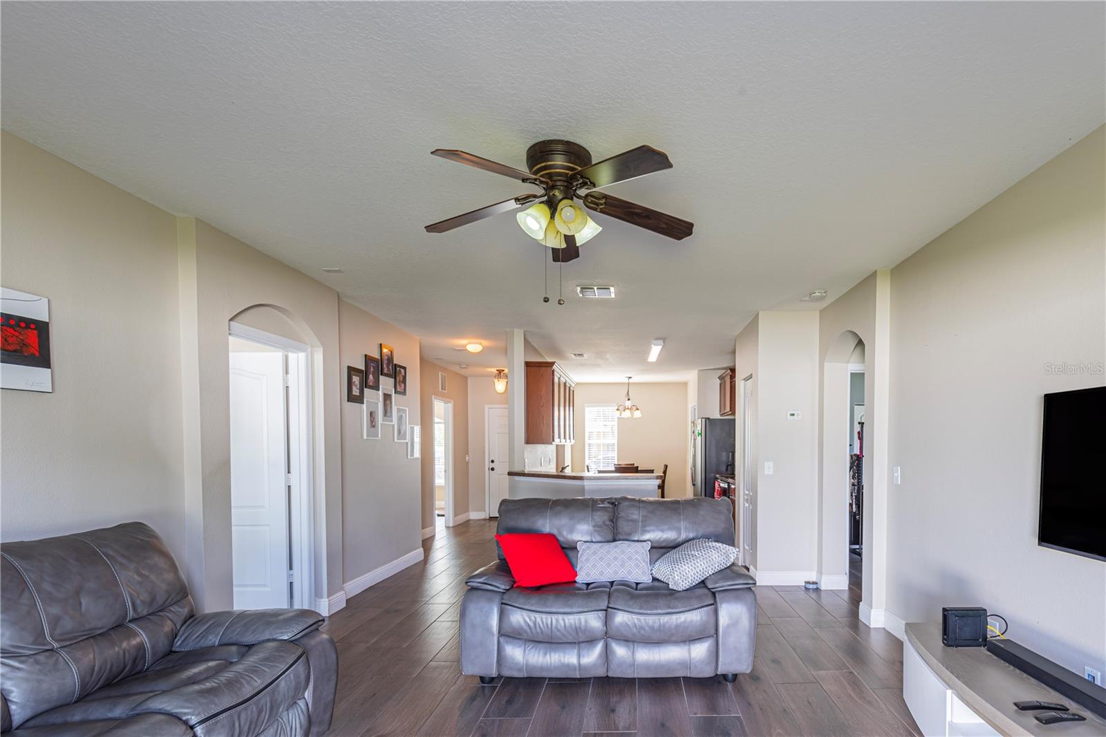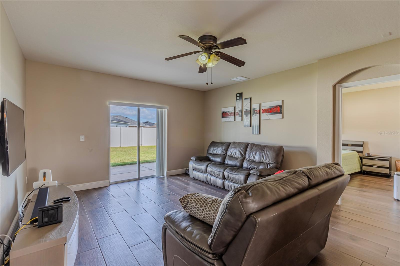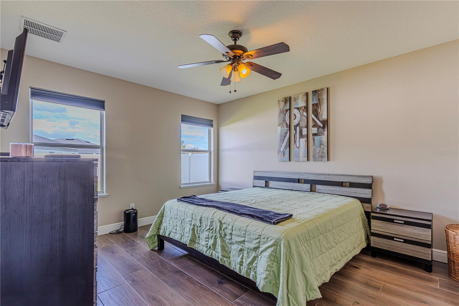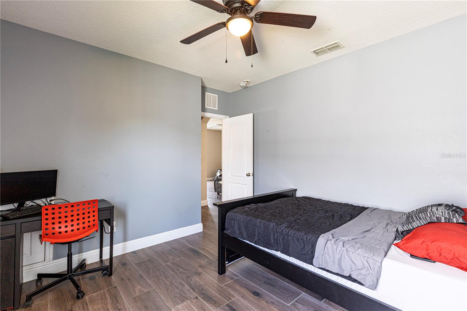 Welcome to this charming 4-bedroom, 2-bathroom home located in the desirable gated community of Raintree at Springlake! Built in 2010, this residence offers a split-bedroom layout with Porcelain Tile Wood Look Floors throughout the house. The house has a semi-open layout showcasing a large kitchen with a cozy breakfast nook and a breakfast bar. Stainless steel matte finish appliances are include: stove, refrigerator, microwave, and dishwasher. A large master suite features a walk-in closet and a large master bath with a garden tub and shower. Large fenced backyard the house also includes indoor laundry room with hookups, a sprinkler and air filter system, and a water filtration system. The community offers fantastic amenities: two pools, two playgrounds, a fitness center, a salon for event that you can rent for your activities, a dog park, a soccer field, a Volleyball court, a tennis court, and scenic walking trails. Conveniently located near the airport and Lake Nona, this home is also zoned for great schools.