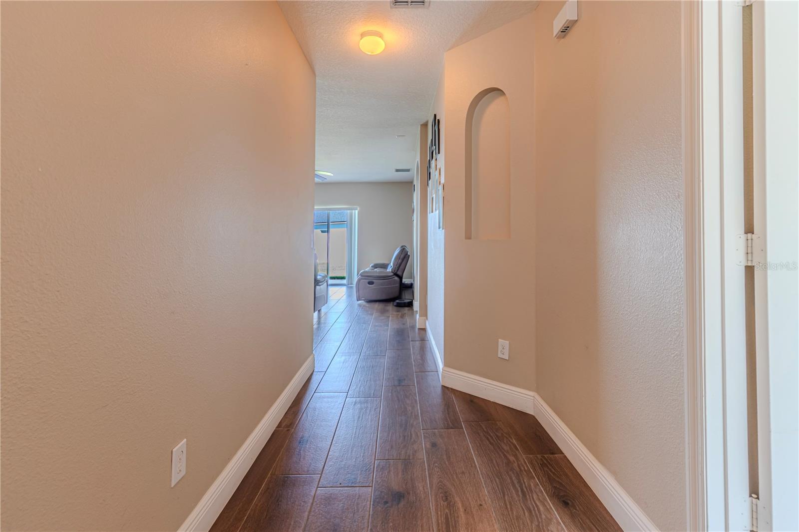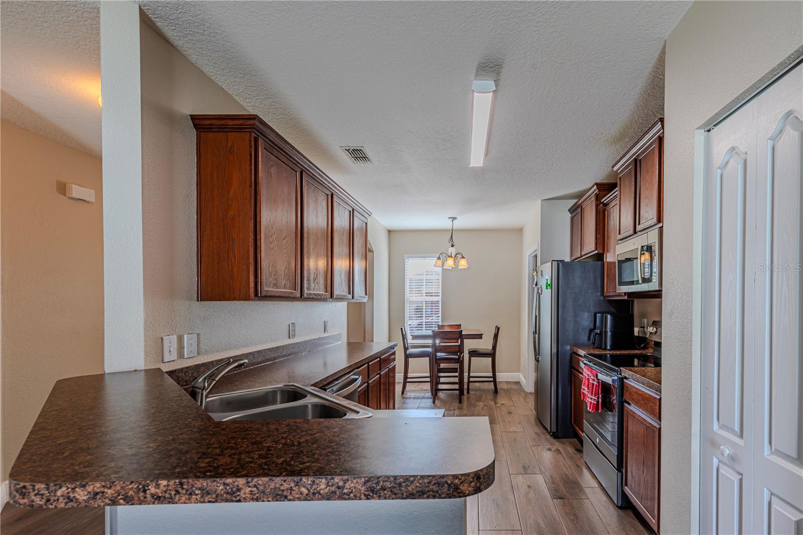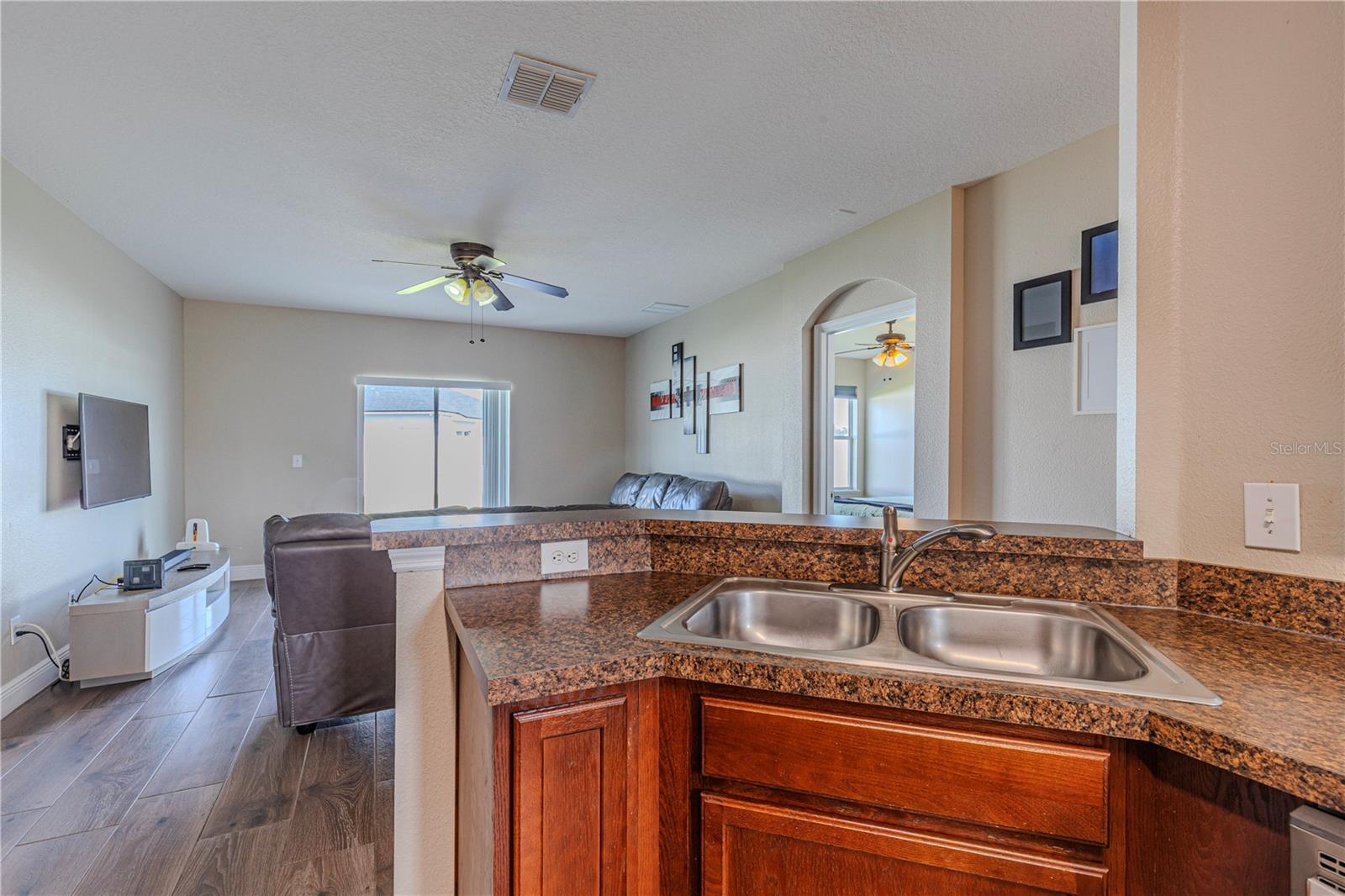 Welcome to this charming 4-bedroom, 2-bathroom home located in the desirable gated community of Raintree at Springlake! Built in 2010, this residence offers a split-bedroom layout with Porcelain Tile Wood Look Floors throughout the house. The house has a semi-open layout showcasing a large kitchen with a cozy breakfast nook and a breakfast bar. Stainless steel matte finish appliances are include: stove, refrigerator, microwave, and dishwasher. A large master suite features a walk-in closet and a large master bath with a garden tub and shower. Large fenced backyard the house also includes indoor laundry room with hookups, a sprinkler and air filter system, and a water filtration system. The community offers fantastic amenities: two pools, two playgrounds, a fitness center, a salon for event that you can rent for your activities, a dog park, a soccer field, a Volleyball court, a tennis court, and scenic walking trails. Conveniently located near the airport and Lake Nona, this home is also zoned for great schools.