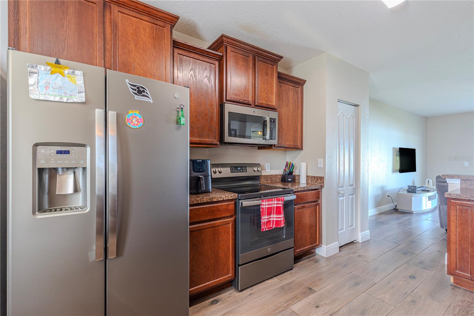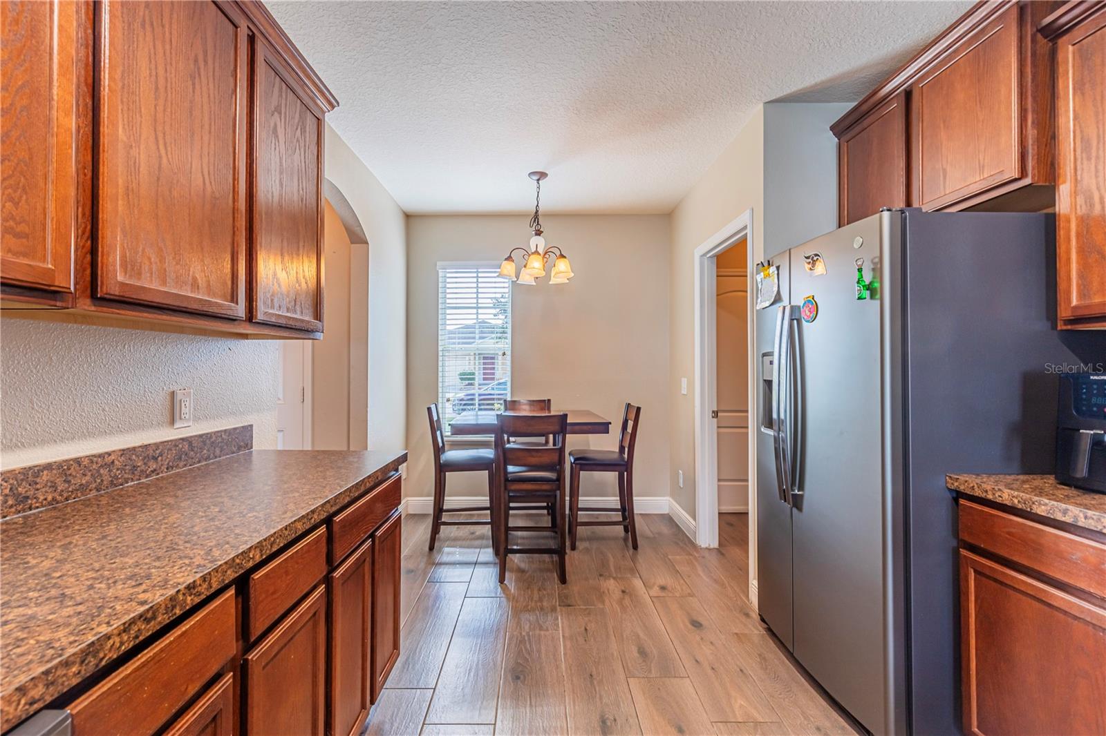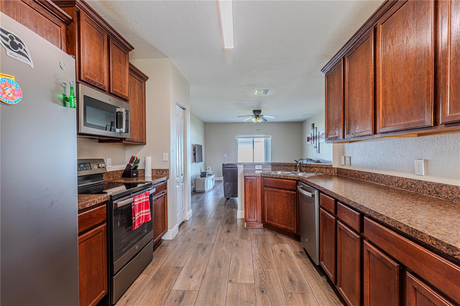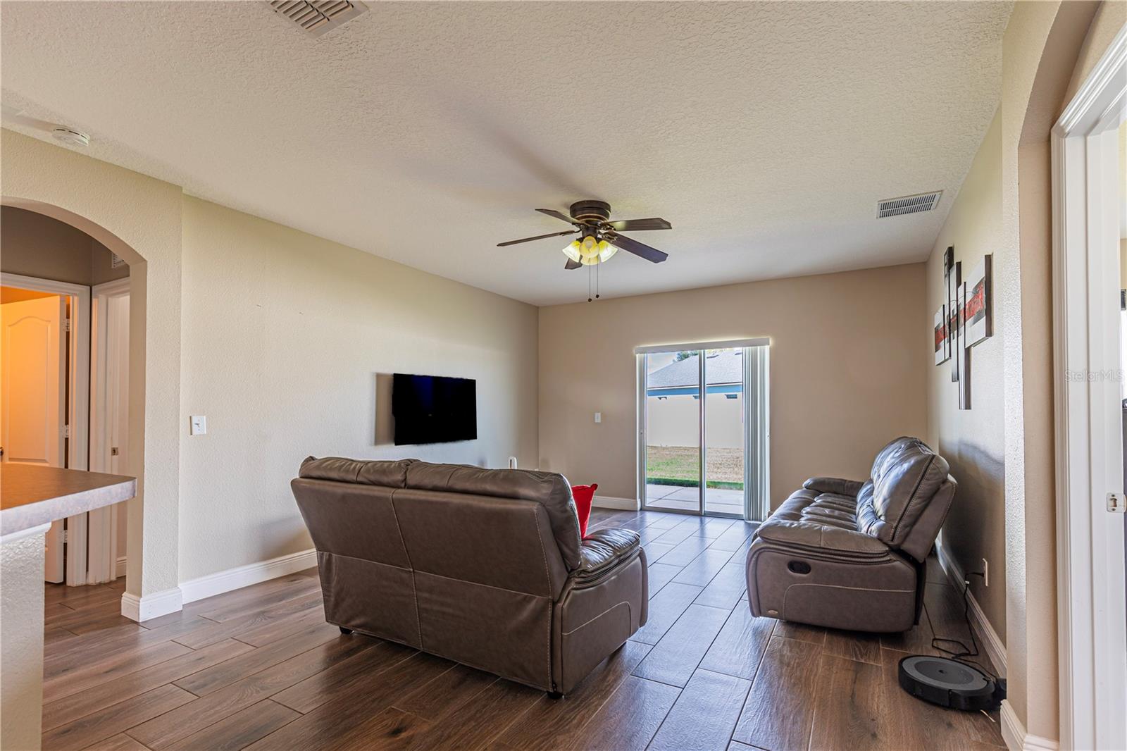 Welcome to this charming 4-bedroom, 2-bathroom home located in the desirable gated community of Raintree at Springlake! Built in 2010, this residence offers a split-bedroom layout with Porcelain Tile Wood Look Floors throughout the house. The house has a semi-open layout showcasing a large kitchen with a cozy breakfast nook and a breakfast bar. Stainless steel matte finish appliances are include: stove, refrigerator, microwave, and dishwasher. A large master suite features a walk-in closet and a large master bath with a garden tub and shower. Large fenced backyard the house also includes indoor laundry room with hookups, a sprinkler and air filter system, and a water filtration system. The community offers fantastic amenities: two pools, two playgrounds, a fitness center, a salon for event that you can rent for your activities, a dog park, a soccer field, a Volleyball court, a tennis court, and scenic walking trails. Conveniently located near the airport and Lake Nona, this home is also zoned for great schools.