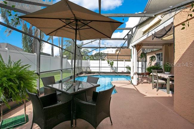 This beautiful home has perfect location near airport, groceries stores, parks. You will live in a vibrant zone close to everything in Orlando. This beauty has lot of upgrades including kitchen, bathrooms, new A/C , water heater, pool heater and roof so, you don't have to worry about any replacements. Tile floor throughout the house, no carpets anywhere. You will fall in love with the covered pool and patio where you can do BBQ while enjoying the pool with your family and friends. This home comes with extra storage in a new shed placed on one side of the house inside the fence.