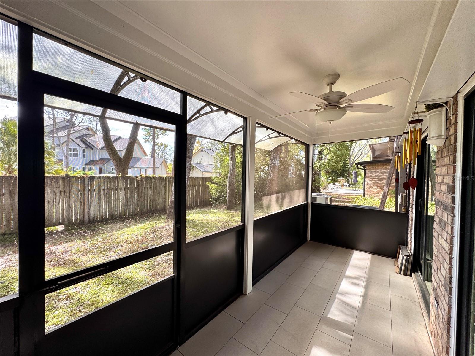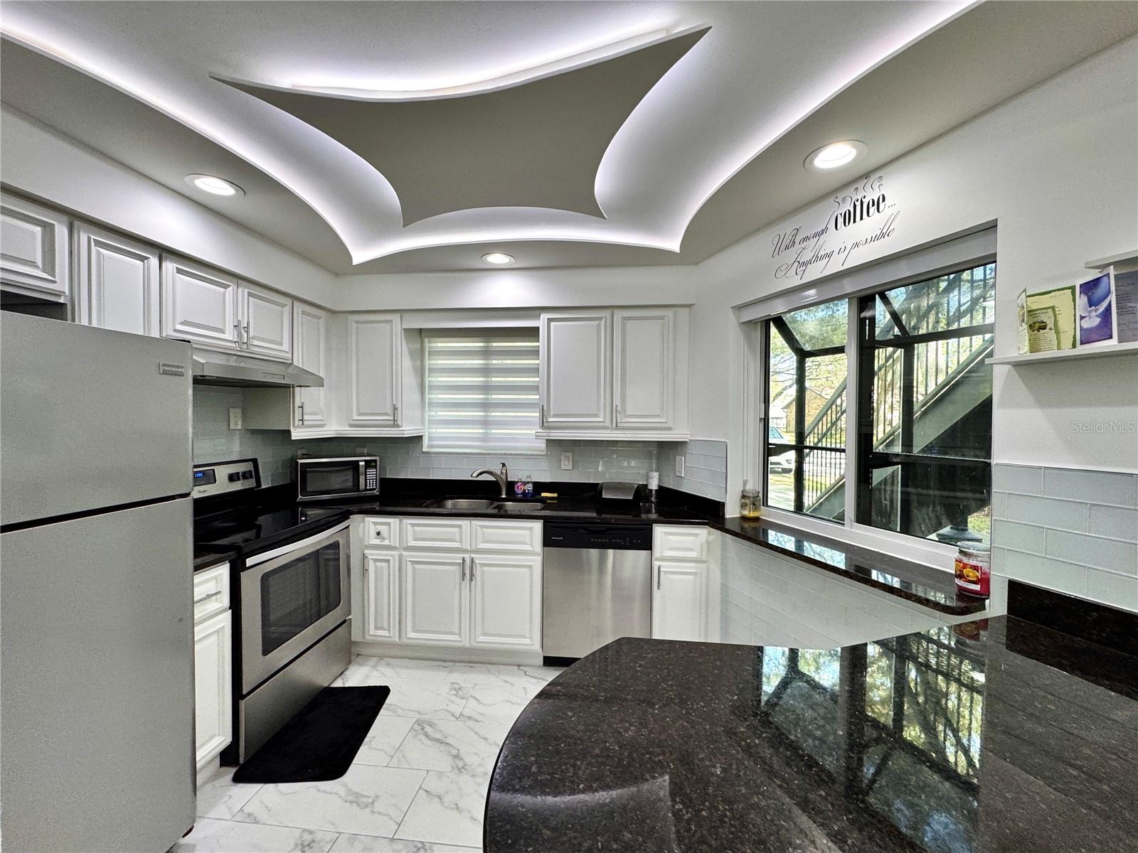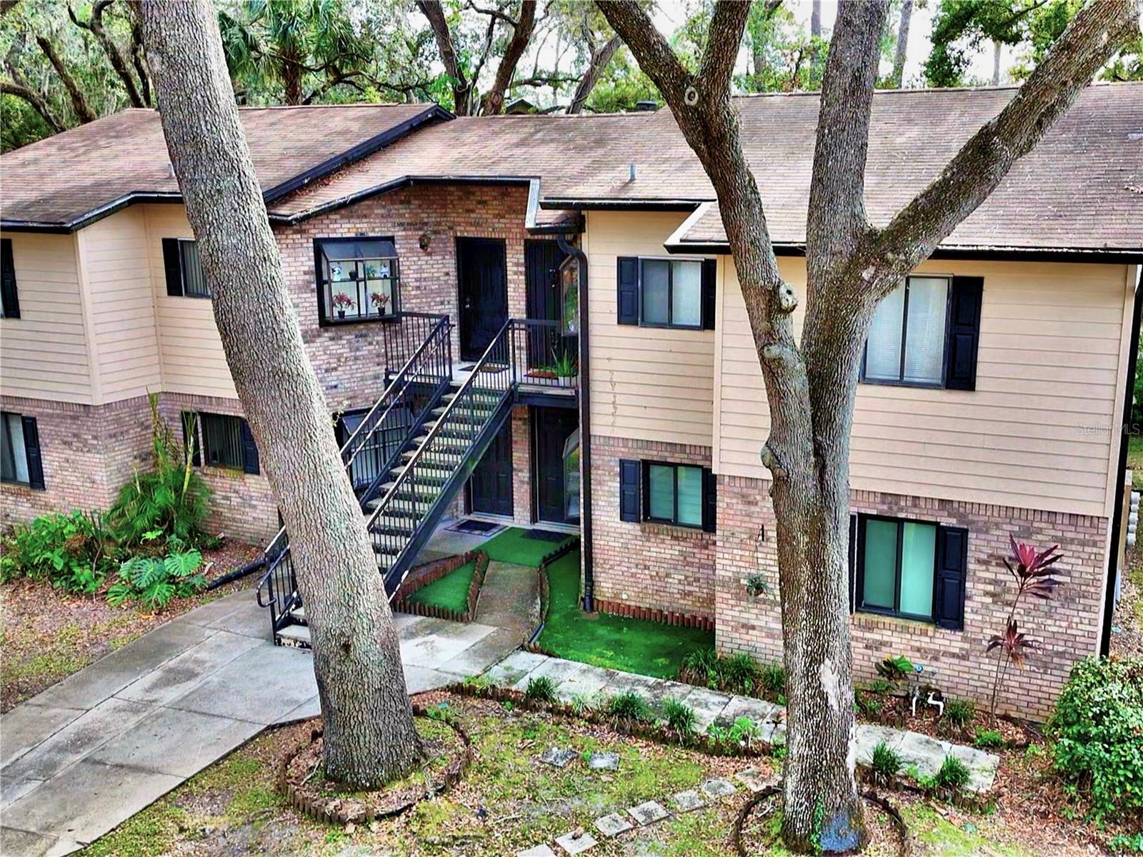 Look no further you have come home! Beautiful 2 bedroom, 2 bath condo tucked away in a quiet street where peacocks roam. Fully renovated in 2022, HVAC, hot water heater, all kitchen appliances and washer and dryer. Wood floors throughout, ceramic tile floors in bathrooms, Glass enclosed showers, ceiling LED lights in living room, kitchen and bedrooms make the property homey and bright. Sliding doors from living room and primary bedroom to screened in porch where you will enjoy many mornings drinking your coffee and enjoying the peace and quiet as well as frequent visit from the peacocks that stroll the neighborhood. Close to shopping and entertainment, public transportation and the theme parks. Custom cabinetry, stainless steel appliances and granite countertops with breakfast bar in the kitchen, LG washer and dryer convey. This condo is move in ready. Come see for yourself and fall in love with your new home!
