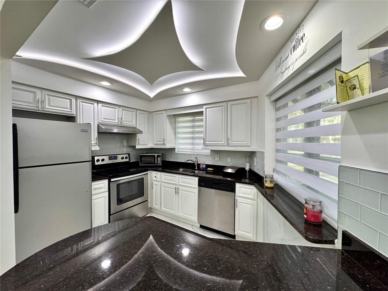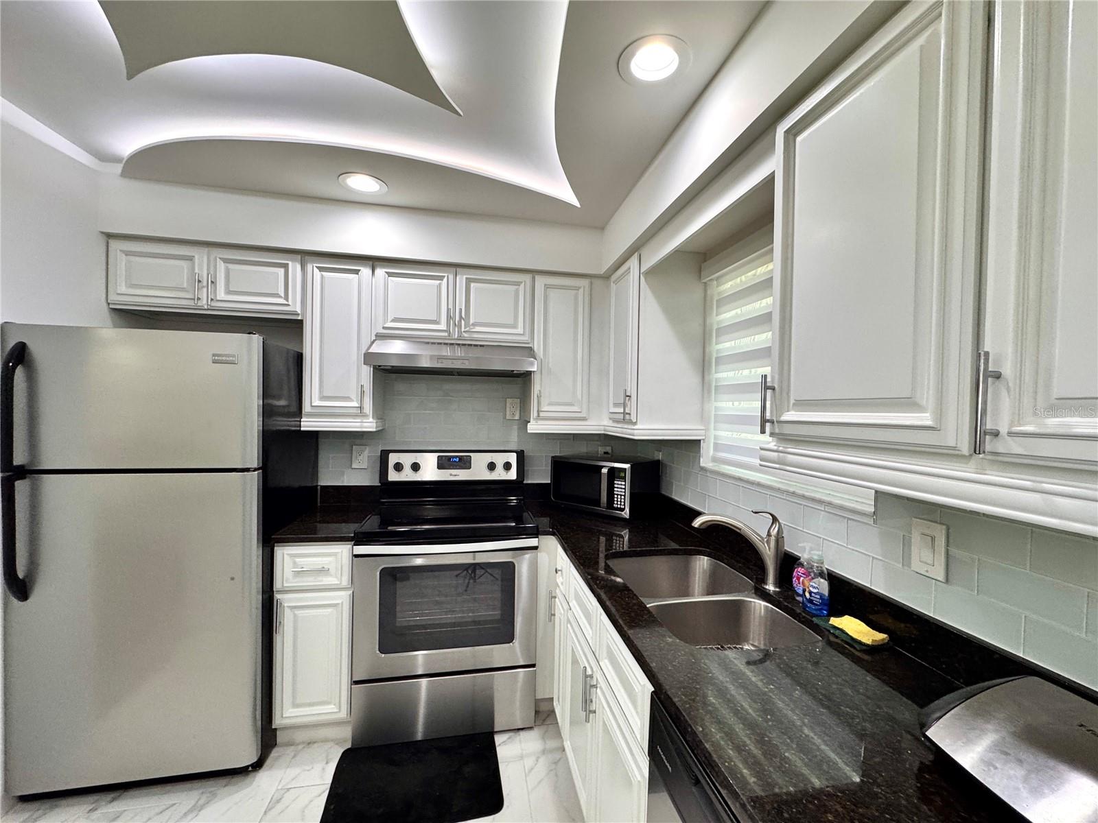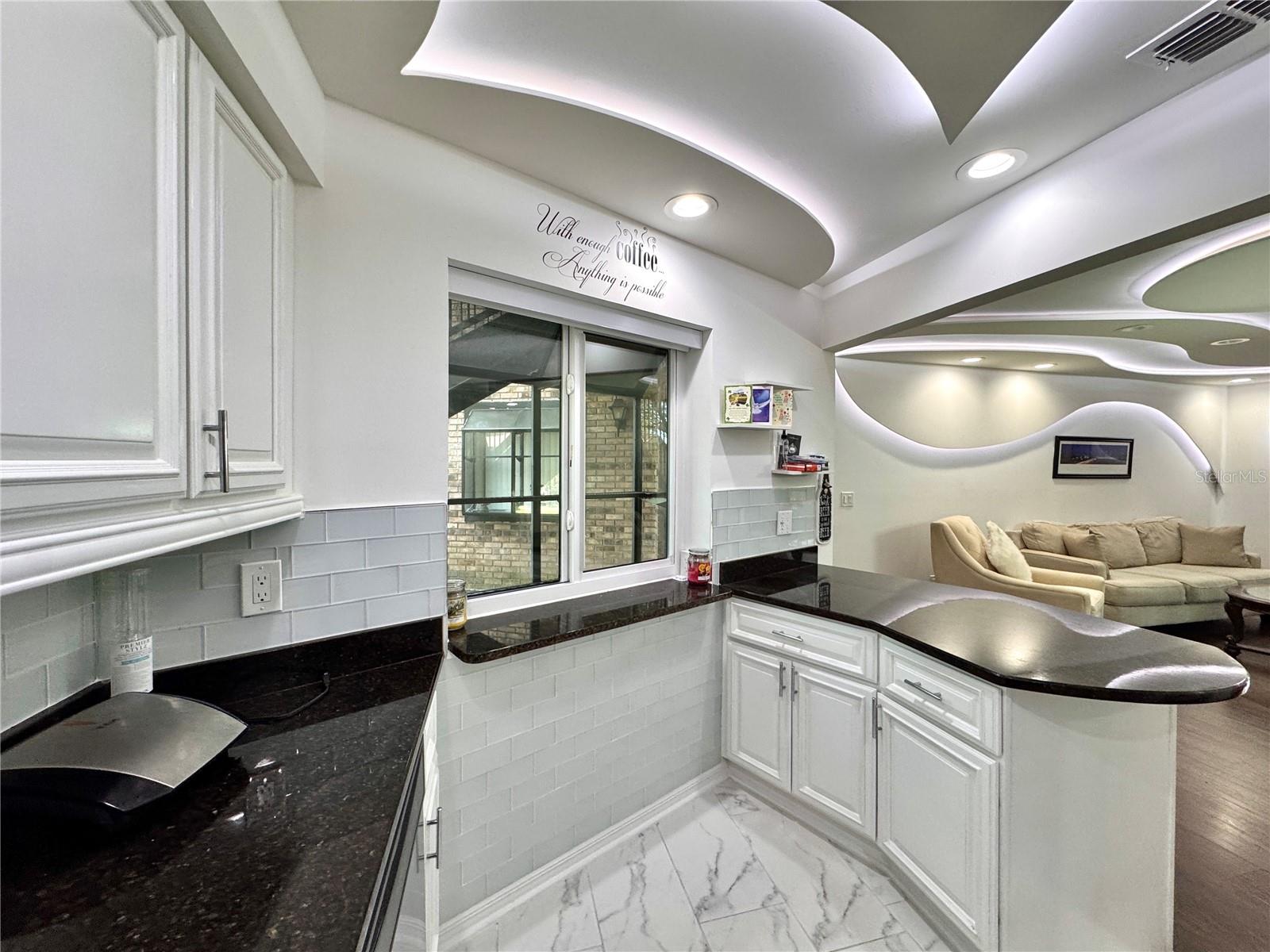 Look no further you have come home! Beautiful 2 bedroom, 2 bath condo tucked away in a quiet street where peacocks roam. Fully renovated in 2022, HVAC, hot water heater, all kitchen appliances and washer and dryer. Wood floors throughout, ceramic tile floors in bathrooms, Glass enclosed showers, ceiling LED lights in living room, kitchen and bedrooms make the property homey and bright. Sliding doors from living room and primary bedroom to screened in porch where you will enjoy many mornings drinking your coffee and enjoying the peace and quiet as well as frequent visit from the peacocks that stroll the neighborhood. Close to shopping and entertainment, public transportation and the theme parks. Custom cabinetry, stainless steel appliances and granite countertops with breakfast bar in the kitchen, LG washer and dryer convey. This condo is move in ready. Come see for yourself and fall in love with your new home!