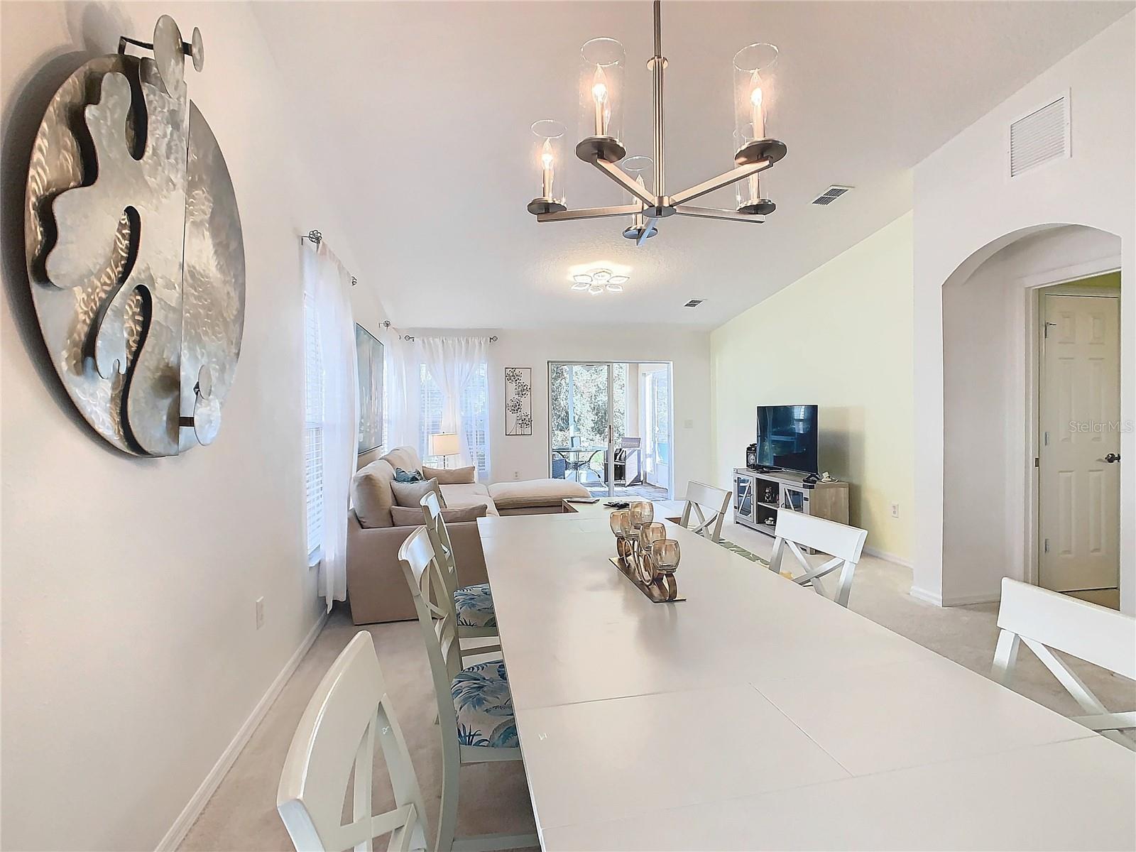 Welcome to your dream home! This move-in ready and COMPLETELY FURNISHED gem offers perfect blend of comfort relaxation. It serves as an ideal second home to enjoy Solivita, where you will find all the amenities, including a-style pool, dining options, a convenience store with a pharmacy, a business center, and courts for tennis and pickleball. This is the lifestyle you have been dreaming of. Nestled with a conservation view and strategically located in cul-de-sac with minimal traffic. This open layout concept property has been recently painted and features numerous upgrades as new lighting, new faucets, and new door handles. The Zinfandel model features1,240 square feet of interior space within a total area of 1,824 square feet. The GREAT ROOM features a split floor plan, with living spaces designed for relaxation and entertainment. It is equipped with a sectional sofa, an eight-chair dining table, a 50-inch TV with a TV stand, window tinting, blinds and more. Just bring your toothbrush; this home has it all. Covered 10’ x 10’ paver screened lanai with two additional paver sitting extended areas patio that has been meticulously designed to enhance both the functionality and appeal of your outdoor environment. Extended entry paver walkway to lanai where you will appreciate the charm of your outdoor space complete with an ideal BBQ area where you can enjoy the beauty of the mature conservation trees. This area offers the perfect retreat to enjoy your coffee, reading, or morning meditation. The owner’s suite offers unparalleled comfort featuring a QUALITY KING BED WITH SEALY POSTUREPEDIC WITH ADJUSTABLE POWER BASE WITH COOLING COVER. Imagine waking up and enjoy your own private conservation view from your king bed. The Owner's suite includes a WALK-IN closet a linen closet, and an En-Suite Master Bathroom with double sink, an upgraded walk-in shower with new glass shower door, new faucets, new toilets, and shower fixtures. NEW QUEEN MATTRESS in the guest bedroom. The spacious kitchen features new stainless-steel appliances, new faucets, a breakfast bar, solid bright wood cabinets, and convenient pull-out drawers. Unlike other models, this upgraded space includes a washer dryer in the interior, rather than in the garage. This home truly has it all and is ready for you to move in and start enjoying the lifestyle you deserve. A one-car garage with Golf Cart space. Solivita is a gated golf community featuring two PGA Championship 18-hole golf courses, two state-of-the-art amenity centers, 14 swimming pools, restaurants, a tennis court, playground, dog park, and over 200 clubs. It is conveniently located near supermarkets, restaurants, pharmacies, a hospital, a new expressway, and is just 25 minutes from major attractions, including the new SunRail Poinciana Station. Schedule your video virtual tour or contact me for a private showing.