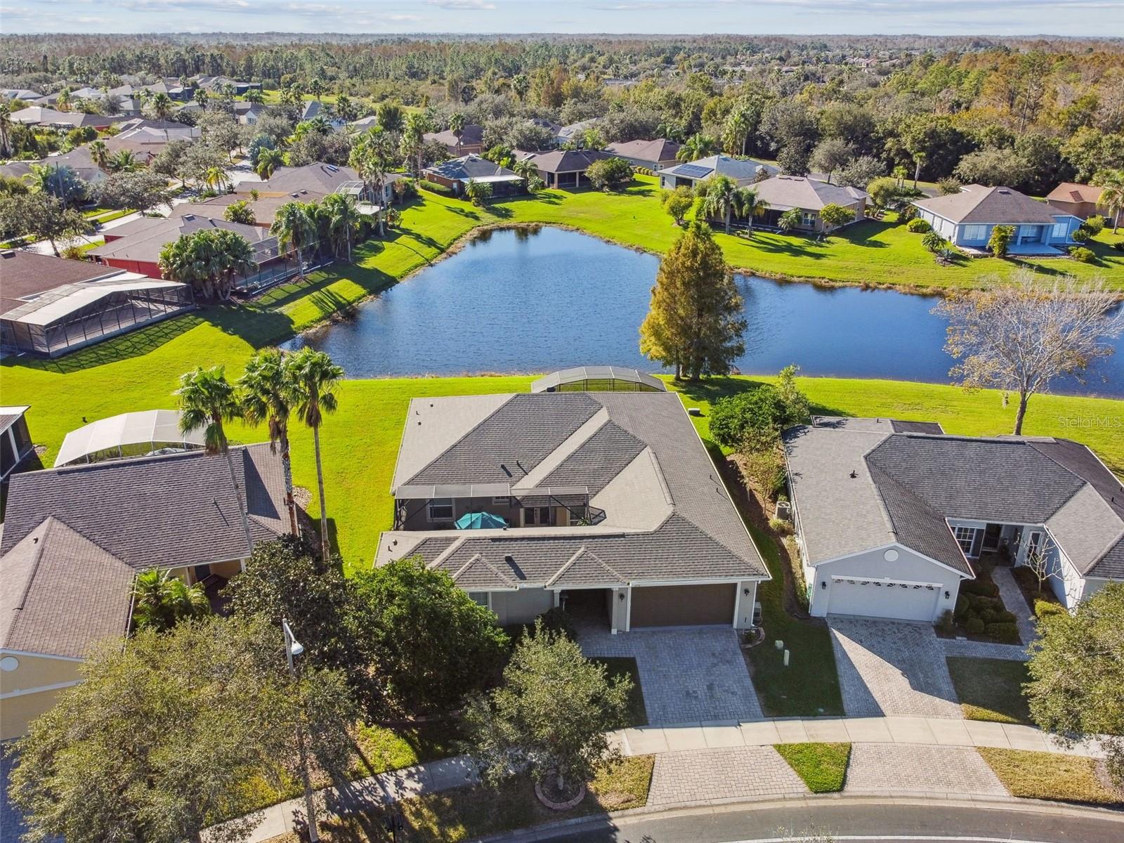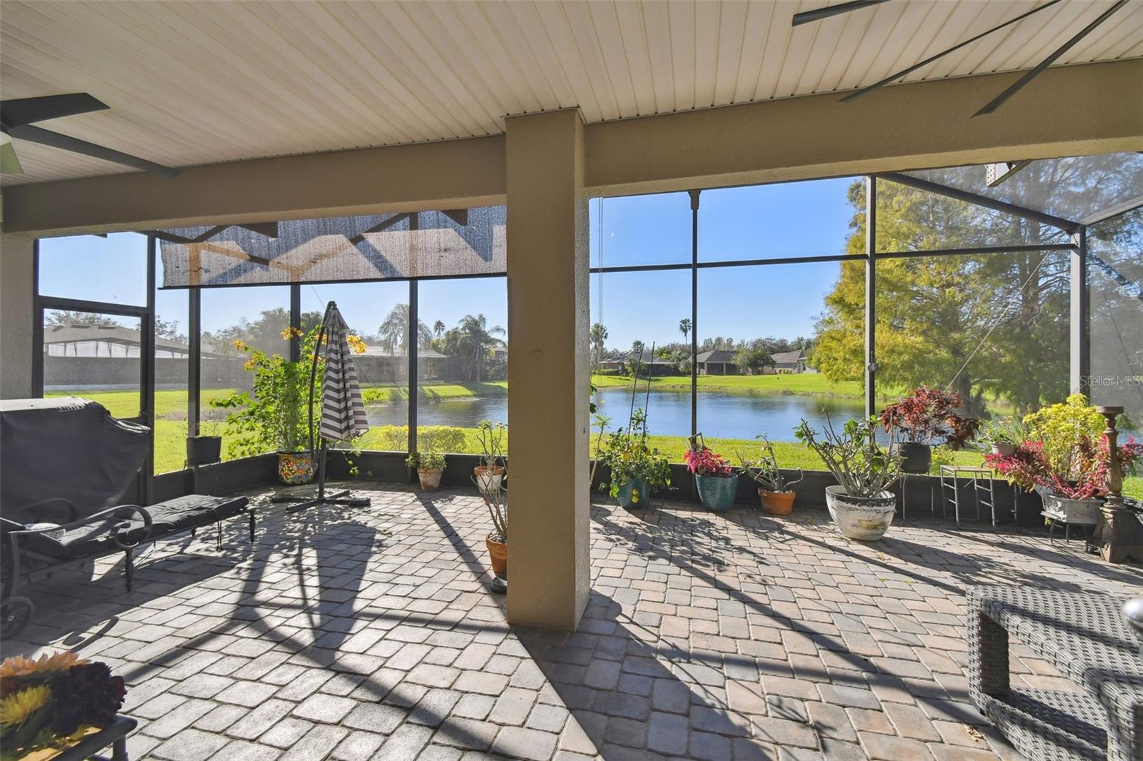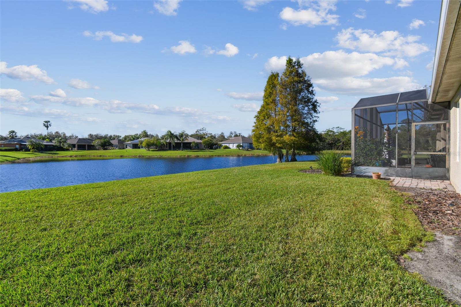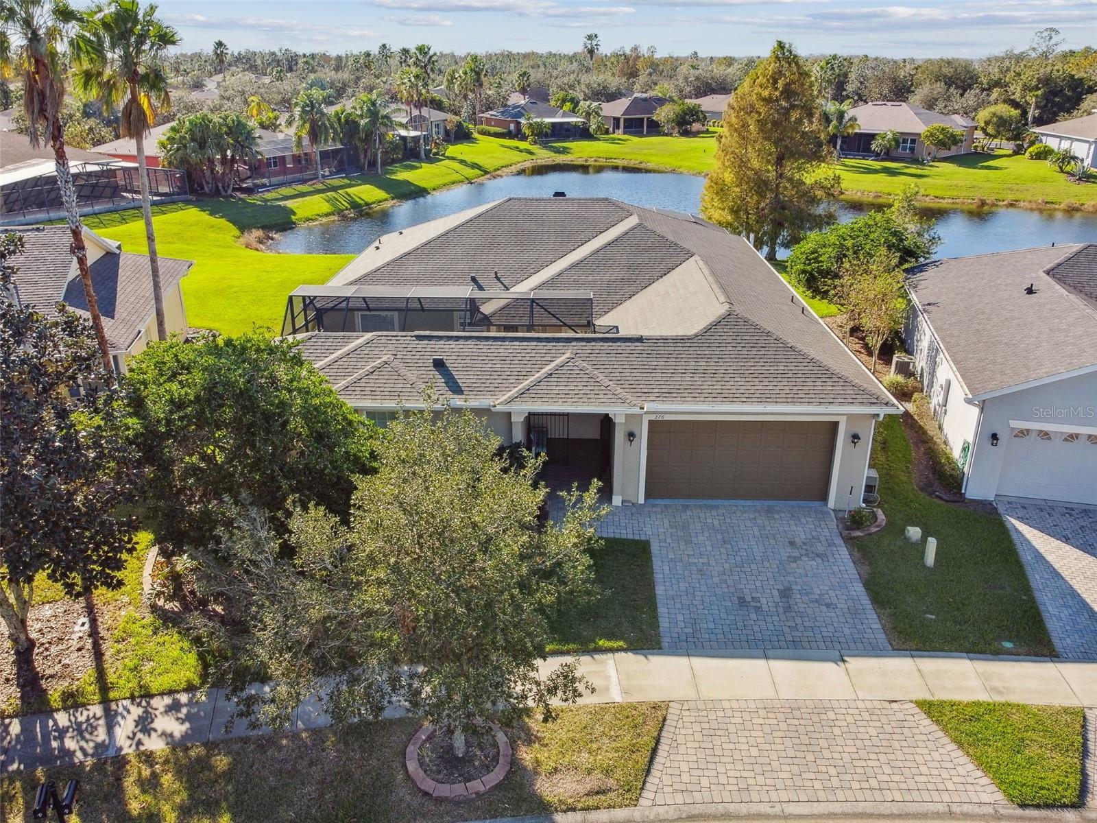 PRICE REDUCTION! MOTIVATED SELLER! CUSTOM GOLF CART INCLUDED! Welcome to your dream waterfront oasis! This exquisite property offers an unparalleled lifestyle with its stunning water views and thoughtfully designed living spaces. Featuring 3 spacious bedrooms, 3 modern bathrooms, and a versatile den/study, this home is perfect for families and entertaining. The convenience of a 2 car garage ensures ample parking and storage for all your needs. As you approach the home, you'll be greeted by the elegant screened courtyard, complete with custom double leaded glass entryway doors. This inviting entrance sets the tone for a home designed for both relaxation and entertaining. Step inside and experience a seamless blend of comfort and style, with ceramic tile and luxury vinyl plank flooring that flows effortlessly throughout the living areas. The expansive great room is a true highlight of the home, offering breathtaking water views that create a serene backdrop for everyday living. Natural light pours in, enhancing the warm and welcoming ambiance. The heart of the home—the large gourmet kitchen—is a chef's dream. It features a beautiful tile backsplash, state-of-the-art stainless steel appliances, an eat at bar with an abundance of cabinet and counter space complemented by upgraded lighting. Adjacent to the kitchen, the dining area also boasts stunning water views, making every meal feel special. The spacious primary bedroom is a private retreat, complete with a cozy seating area that invites you to unwind after a long day. Two generous walk-in closets offer plenty of storage, while the custom en-suite bathroom provides a luxurious experience with its walk-in shower and thoughtful design elements. For guests or family members, the property features a separate casita/in-law suite located across the screened courtyard, ensuring privacy and comfort. Step outside to the covered and extended screened lanai, where you can relax and take in the serene water views and spectacular sunsets. This outdoor space is ideal for entertaining or simply enjoying your morning coffee while soaking in the beauty of your surroundings. This home includes an extra-large laundry room with a convenient sink, making chores a breeze. A Golf Cart is included in the price of this home! Recent upgrades enhance the property's appeal, including a NEW ROOF installed in 2023, a new HVAC system for the Casita in 2023,, a primary HVAC system that was updated in 2017 and a water softener system. Additional enhancements throughout the property elevate its charm and functionality, making it a truly special place to call home. All this in one of the top 55+ communities in America. Solovita offers residents access to state of the art amenities and work out facilities, dance and aerobics studios, a business center, 14 heated swimming pools, 2 heated spas, tennis courts, pickleball courts, shuffleboard, bocce ball, billiards room, art gallery, 3 restaurants and 2 championship 18-hole golf courses, driving range and putting course. Don't miss out on the opportunity to have a first class lifestyle.