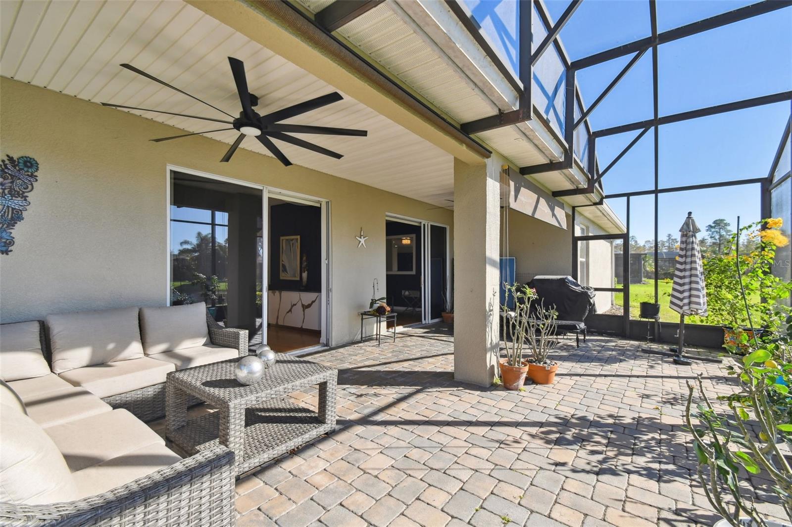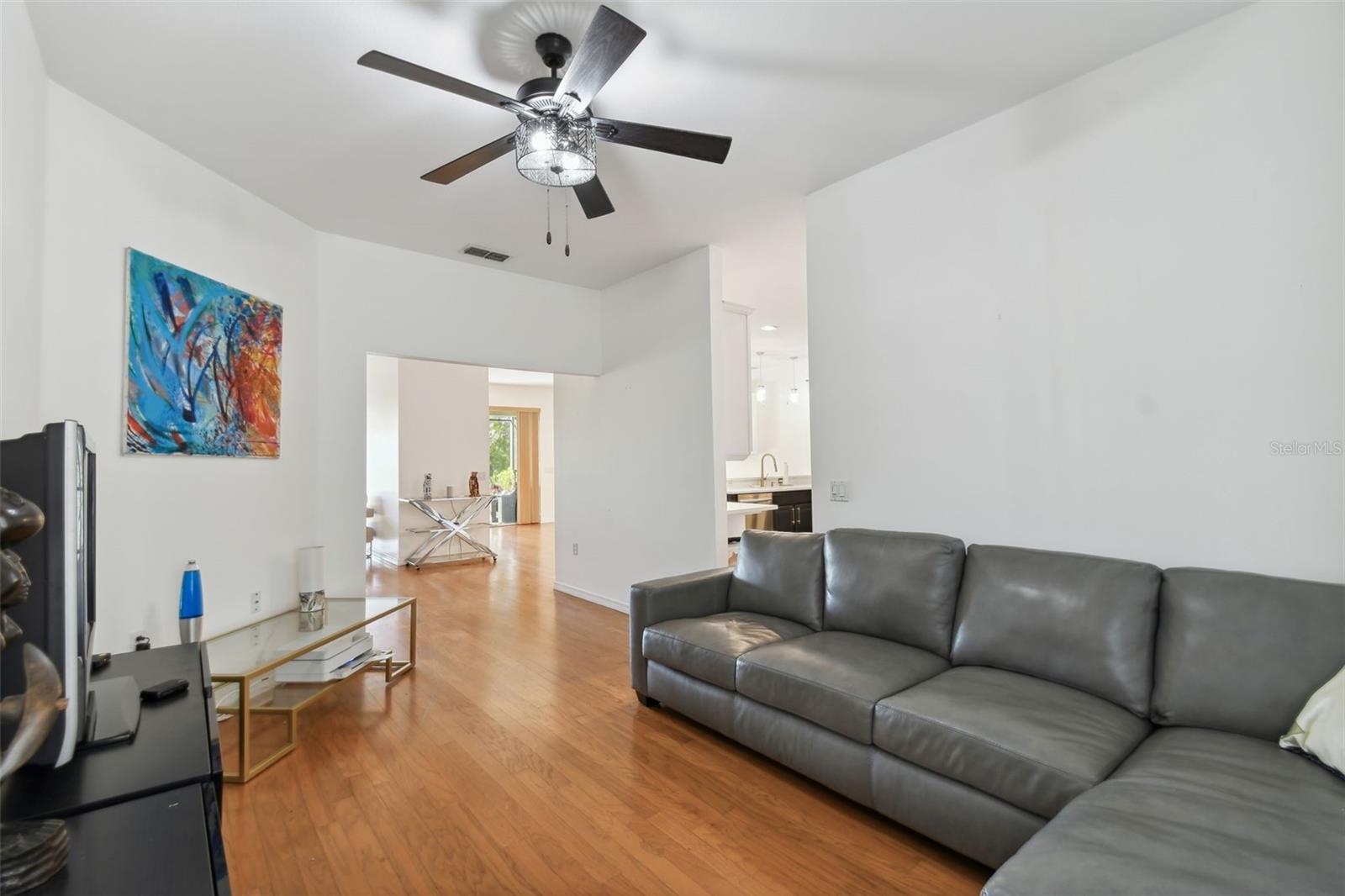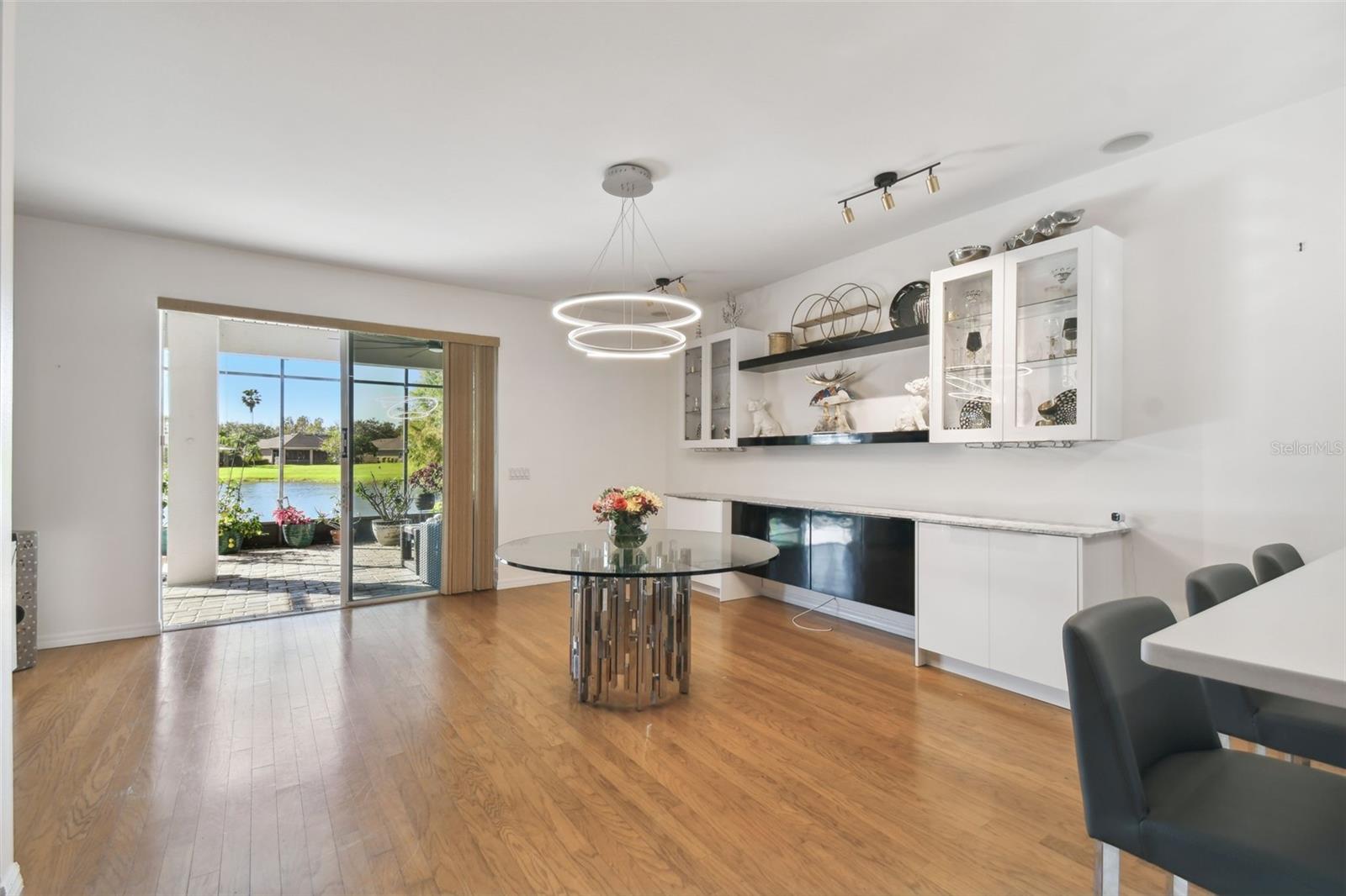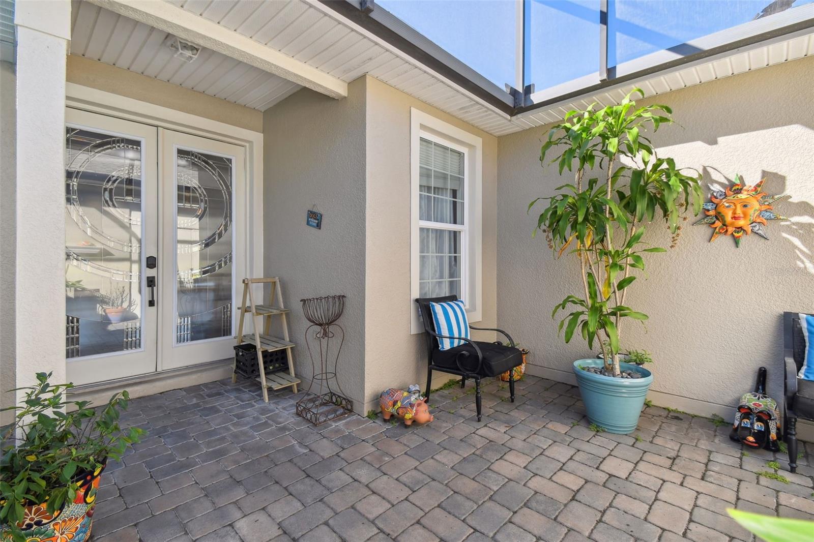 PRICE REDUCTION! MOTIVATED SELLER! CUSTOM GOLF CART INCLUDED! Welcome to your dream waterfront oasis! This exquisite property offers an unparalleled lifestyle with its stunning water views and thoughtfully designed living spaces. Featuring 3 spacious bedrooms, 3 modern bathrooms, and a versatile den/study, this home is perfect for families and entertaining. The convenience of a 2 car garage ensures ample parking and storage for all your needs. As you approach the home, you'll be greeted by the elegant screened courtyard, complete with custom double leaded glass entryway doors. This inviting entrance sets the tone for a home designed for both relaxation and entertaining. Step inside and experience a seamless blend of comfort and style, with ceramic tile and luxury vinyl plank flooring that flows effortlessly throughout the living areas. The expansive great room is a true highlight of the home, offering breathtaking water views that create a serene backdrop for everyday living. Natural light pours in, enhancing the warm and welcoming ambiance. The heart of the home—the large gourmet kitchen—is a chef's dream. It features a beautiful tile backsplash, state-of-the-art stainless steel appliances, an eat at bar with an abundance of cabinet and counter space complemented by upgraded lighting. Adjacent to the kitchen, the dining area also boasts stunning water views, making every meal feel special. The spacious primary bedroom is a private retreat, complete with a cozy seating area that invites you to unwind after a long day. Two generous walk-in closets offer plenty of storage, while the custom en-suite bathroom provides a luxurious experience with its walk-in shower and thoughtful design elements. For guests or family members, the property features a separate casita/in-law suite located across the screened courtyard, ensuring privacy and comfort. Step outside to the covered and extended screened lanai, where you can relax and take in the serene water views and spectacular sunsets. This outdoor space is ideal for entertaining or simply enjoying your morning coffee while soaking in the beauty of your surroundings. This home includes an extra-large laundry room with a convenient sink, making chores a breeze. A Golf Cart is included in the price of this home! Recent upgrades enhance the property's appeal, including a NEW ROOF installed in 2023, a new HVAC system for the Casita in 2023,, a primary HVAC system that was updated in 2017 and a water softener system. Additional enhancements throughout the property elevate its charm and functionality, making it a truly special place to call home. All this in one of the top 55+ communities in America. Solovita offers residents access to state of the art amenities and work out facilities, dance and aerobics studios, a business center, 14 heated swimming pools, 2 heated spas, tennis courts, pickleball courts, shuffleboard, bocce ball, billiards room, art gallery, 3 restaurants and 2 championship 18-hole golf courses, driving range and putting course. Don't miss out on the opportunity to have a first class lifestyle.