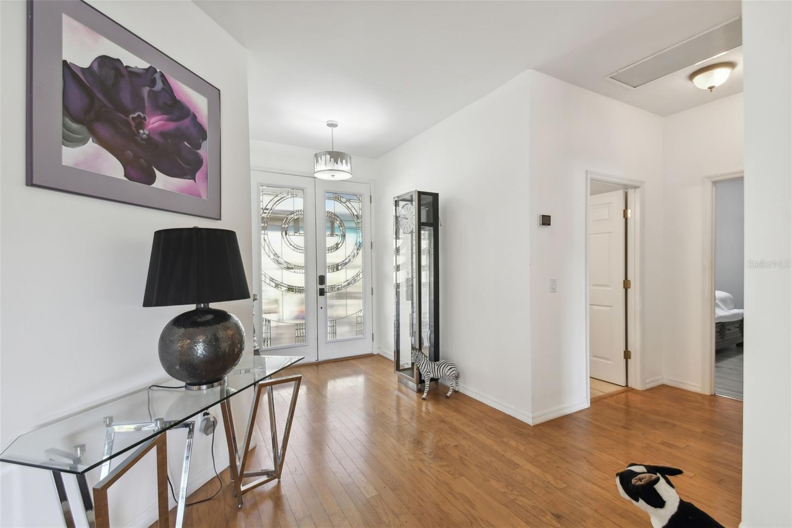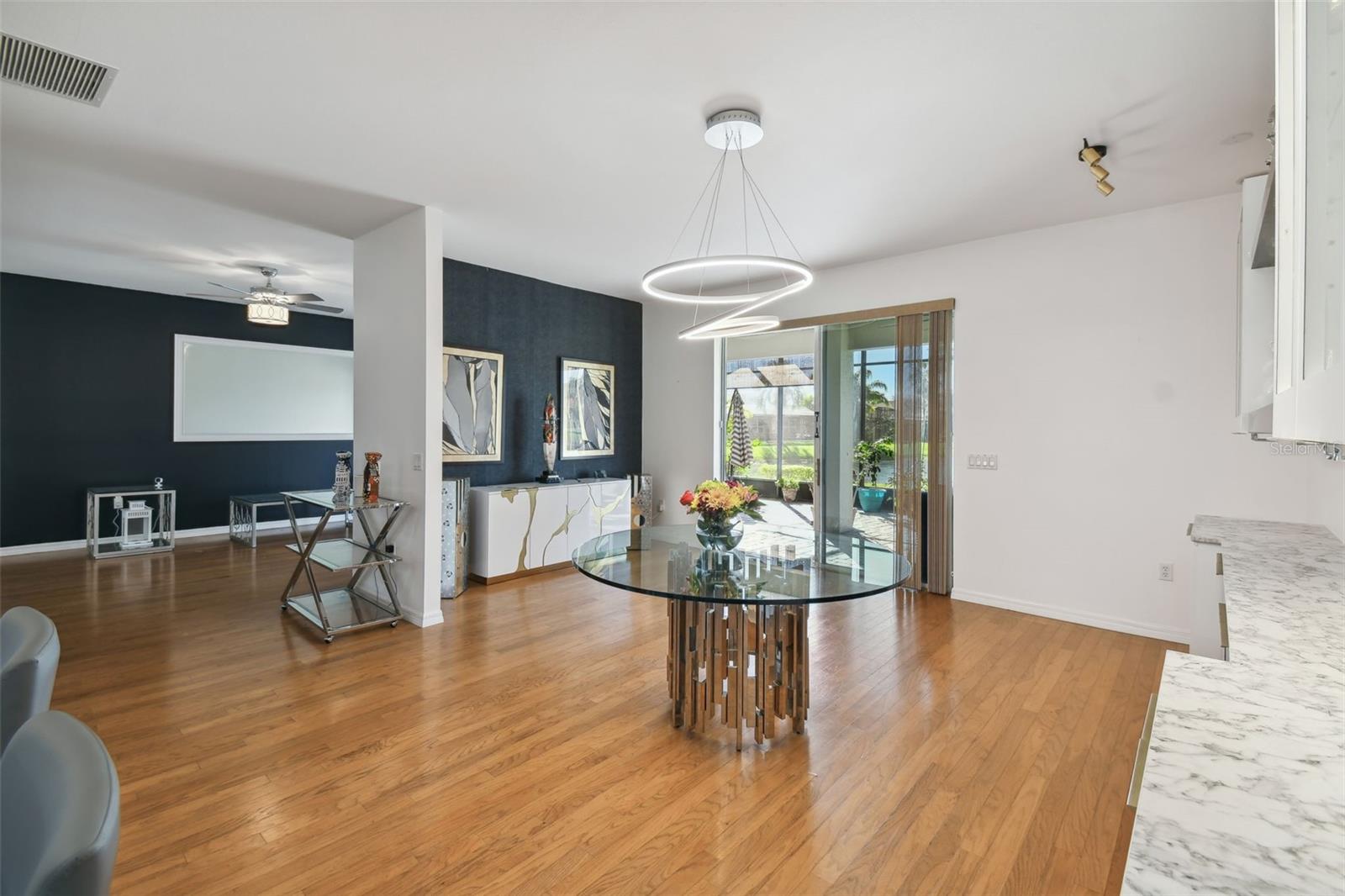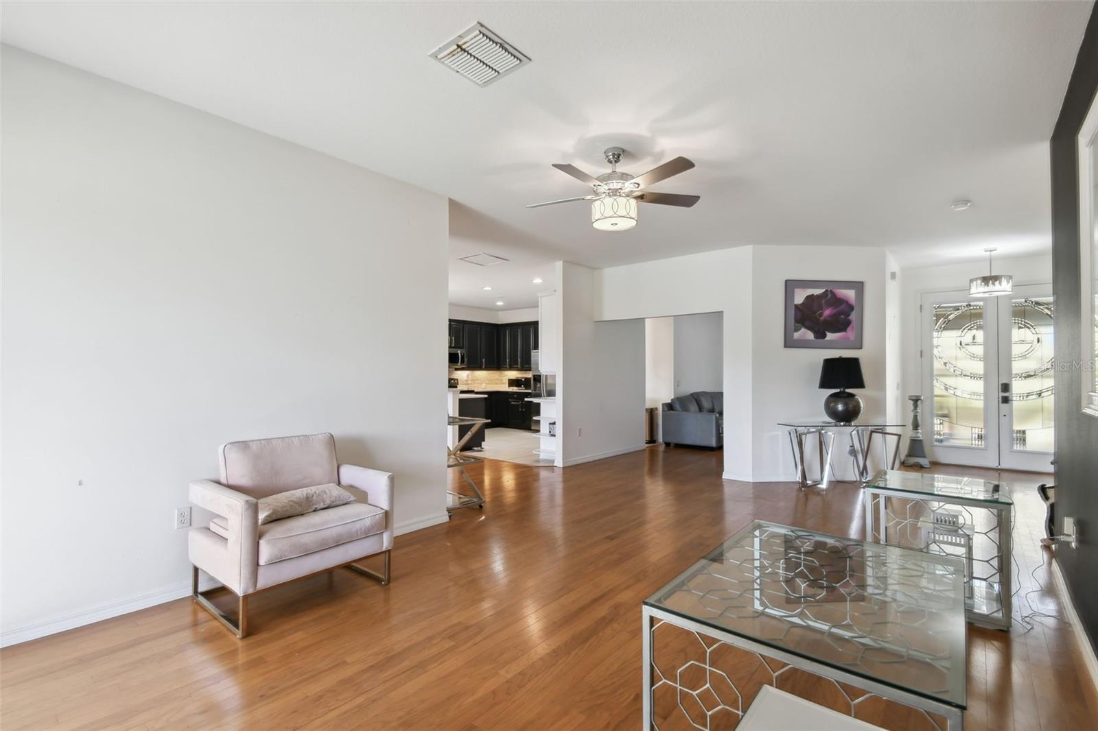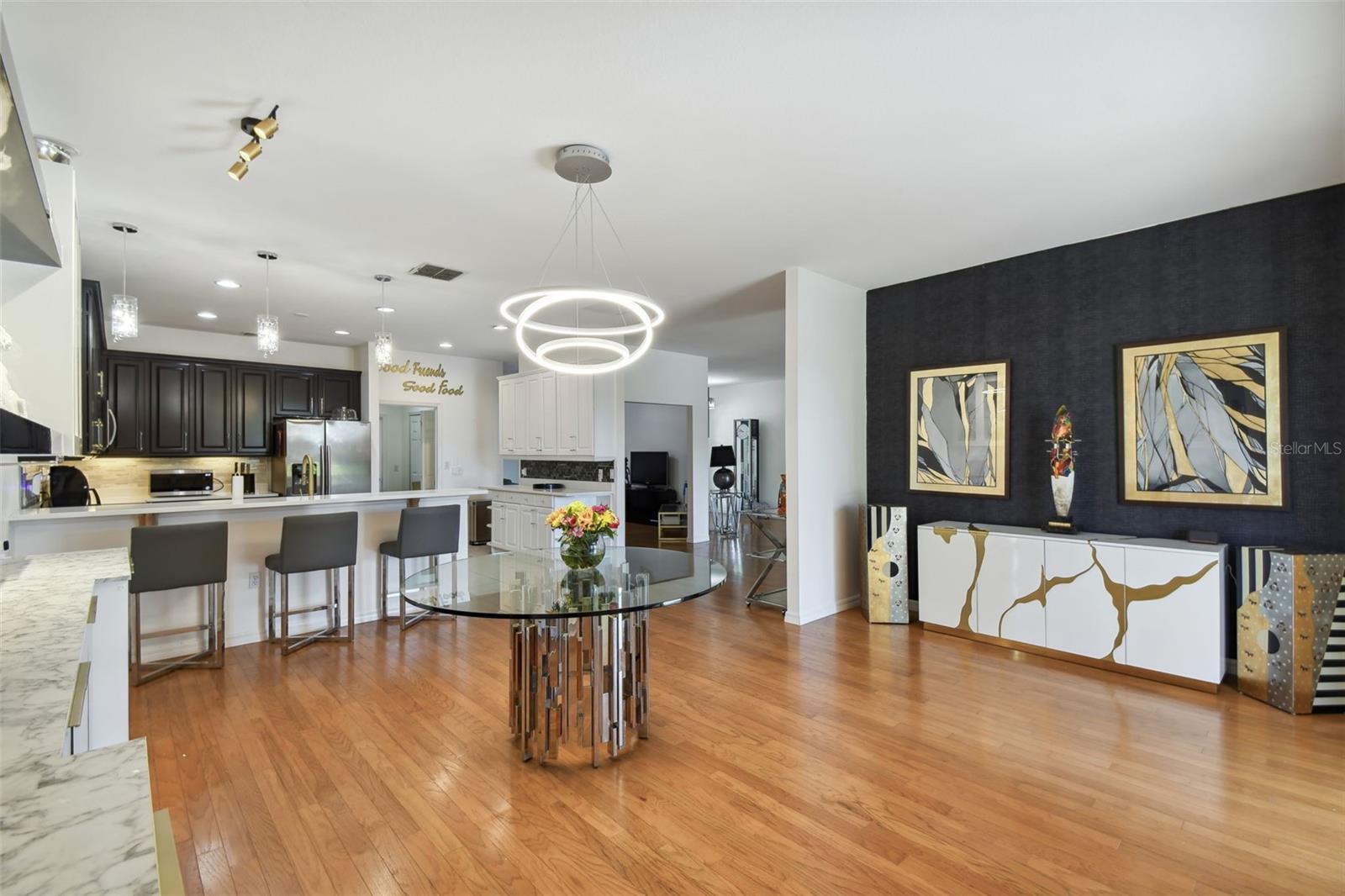 PRICE REDUCTION! MOTIVATED SELLER! CUSTOM GOLF CART INCLUDED! Welcome to your dream waterfront oasis! This exquisite property offers an unparalleled lifestyle with its stunning water views and thoughtfully designed living spaces. Featuring 3 spacious bedrooms, 3 modern bathrooms, and a versatile den/study, this home is perfect for families and entertaining. The convenience of a 2 car garage ensures ample parking and storage for all your needs. As you approach the home, you'll be greeted by the elegant screened courtyard, complete with custom double leaded glass entryway doors. This inviting entrance sets the tone for a home designed for both relaxation and entertaining. Step inside and experience a seamless blend of comfort and style, with ceramic tile and luxury vinyl plank flooring that flows effortlessly throughout the living areas. The expansive great room is a true highlight of the home, offering breathtaking water views that create a serene backdrop for everyday living. Natural light pours in, enhancing the warm and welcoming ambiance. The heart of the home—the large gourmet kitchen—is a chef's dream. It features a beautiful tile backsplash, state-of-the-art stainless steel appliances, an eat at bar with an abundance of cabinet and counter space complemented by upgraded lighting. Adjacent to the kitchen, the dining area also boasts stunning water views, making every meal feel special. The spacious primary bedroom is a private retreat, complete with a cozy seating area that invites you to unwind after a long day. Two generous walk-in closets offer plenty of storage, while the custom en-suite bathroom provides a luxurious experience with its walk-in shower and thoughtful design elements. For guests or family members, the property features a separate casita/in-law suite located across the screened courtyard, ensuring privacy and comfort. Step outside to the covered and extended screened lanai, where you can relax and take in the serene water views and spectacular sunsets. This outdoor space is ideal for entertaining or simply enjoying your morning coffee while soaking in the beauty of your surroundings. This home includes an extra-large laundry room with a convenient sink, making chores a breeze. A Golf Cart is included in the price of this home! Recent upgrades enhance the property's appeal, including a NEW ROOF installed in 2023, a new HVAC system for the Casita in 2023,, a primary HVAC system that was updated in 2017 and a water softener system. Additional enhancements throughout the property elevate its charm and functionality, making it a truly special place to call home. All this in one of the top 55+ communities in America. Solovita offers residents access to state of the art amenities and work out facilities, dance and aerobics studios, a business center, 14 heated swimming pools, 2 heated spas, tennis courts, pickleball courts, shuffleboard, bocce ball, billiards room, art gallery, 3 restaurants and 2 championship 18-hole golf courses, driving range and putting course. Don't miss out on the opportunity to have a first class lifestyle.