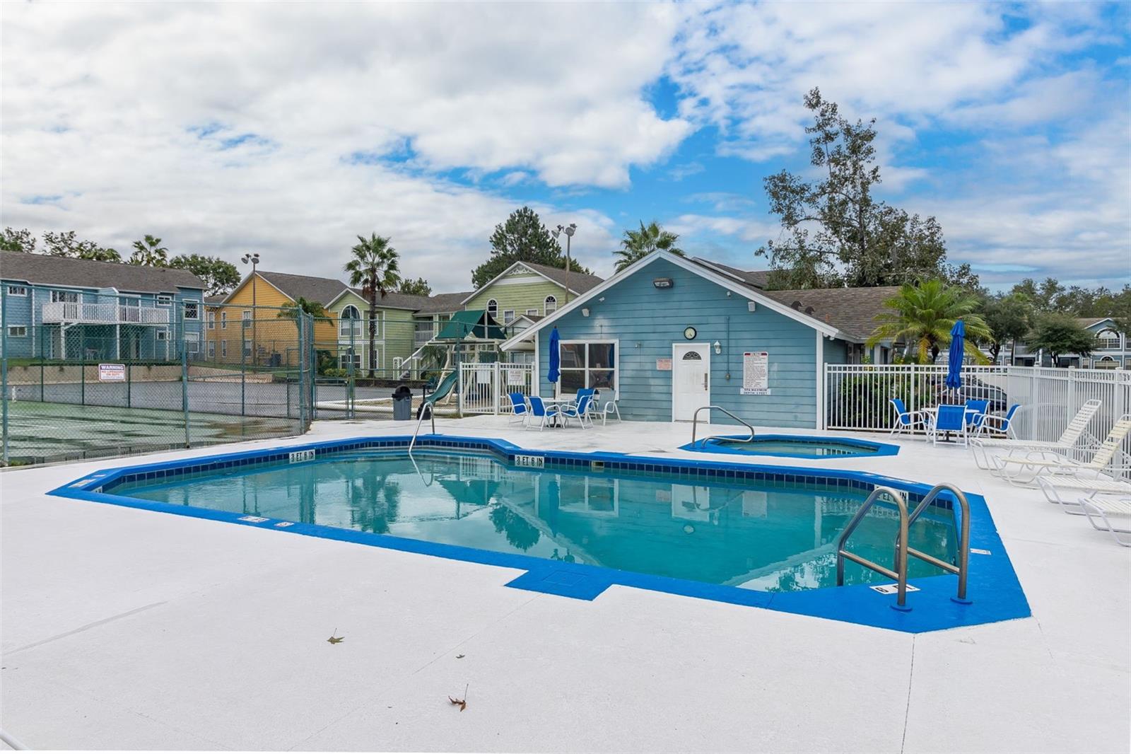 Seller Financing being offered. Fantastic Opportunity to own your investment or vacation home property in Florida! Close to the major attractions and with lots of shopping centers and restaurants at close proximity. This lovely gated and furnished condo is on a second floor and has high ceilings in the living room area. Open concept floorplan kitchen, dining room and living room. Washer and Dryer included. Primary bedroom and a secondary room have walk in closets. Rent it short term or year round with flexibility. Extended balcony patio to relax and backs to recreational area: BBQ, Playground, tennis court, pool and jacuzzi. Some see it before its gone!
