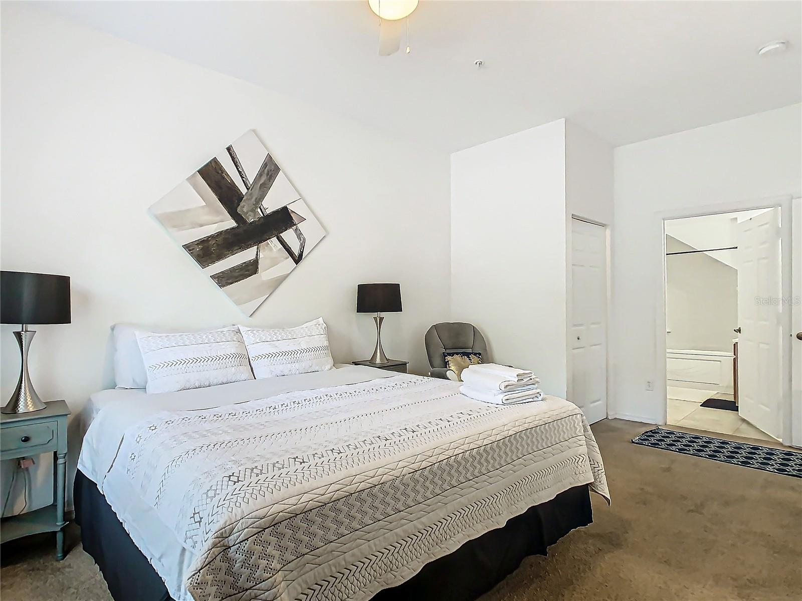 This spacious 4-bedroom, 3-bathroom condominium in Venetian Bay, Kissimmee, offers a flexible layout with two master bedrooms—one on the first floor for added convenience and the other upstairs, along with two additional bedrooms. As an end unit, it provides extra privacy and natural light. The community boasts excellent amenities, including a pool, tennis courts, park, and clubhouse. Conveniently located near Old Town Kissimmee, local parks, attractions and a variety of restaurants, this home offers both comfort and prime location. Fully furnished, short term rental allowed.