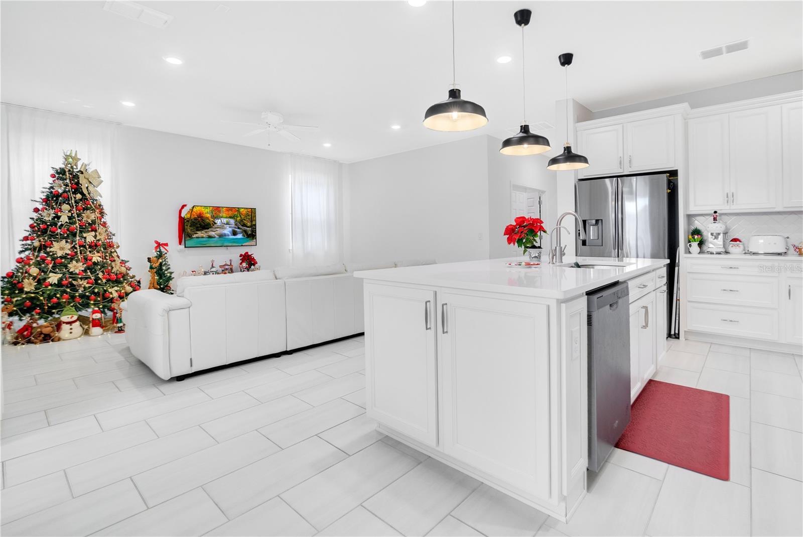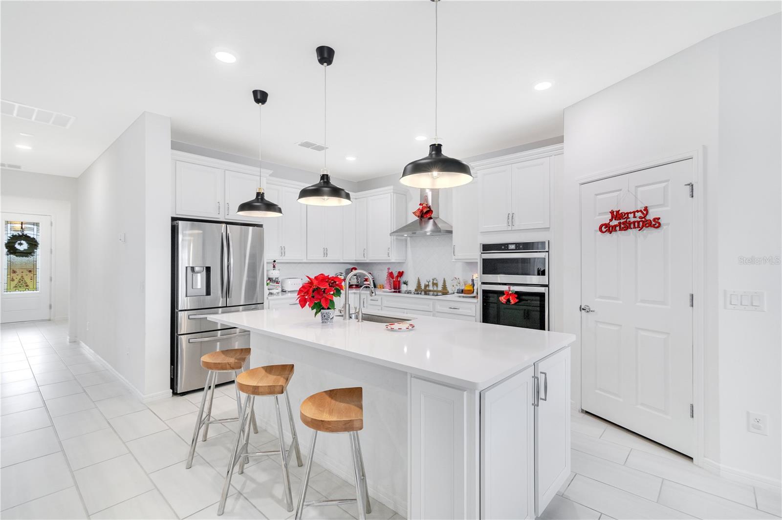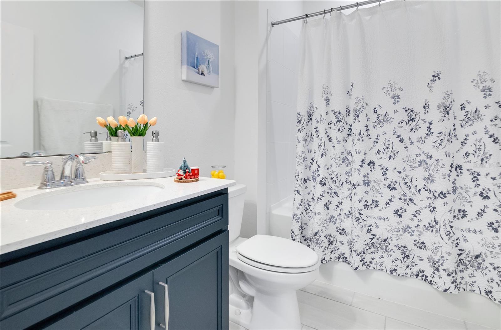 The Stunning Home in Tohoqua, 3 bedrooms, 2-bathroom, high ceilings, ceramic tile throughout the entire house the living room, office room dining room with Gourmet kitchen with quartz, 42 inches cabinets soft-close, large drawers bank, build in stainless steel appliances, Pantry, tall crown, is an open floor plan with a lot of natural light. You can enjoy beautiful views of the pond from the back of the house, and the covered screened in lanai, fenced backyard. Surround sound speakers prewiring in the living room. Windows sensor with alarm, front door full lite glass. The master bedroom, have 2 sinks, has a step-in shower, walk in closet, frameless shower glass, Private toilet. Attic over the garage plus garage smart keypad. Sound insolation at the office and cat-9 outlets in flex room. Nestle Tohoqua a fresh and sought after neighborhood, this community have many amenities. Providing easy access to world- class amusement parks, Orlando International Airport, Medical City, downtown Orlando. the community have walking trails, playgrounds, park, tennis courts, fitness center, pool are included in your low association fees.