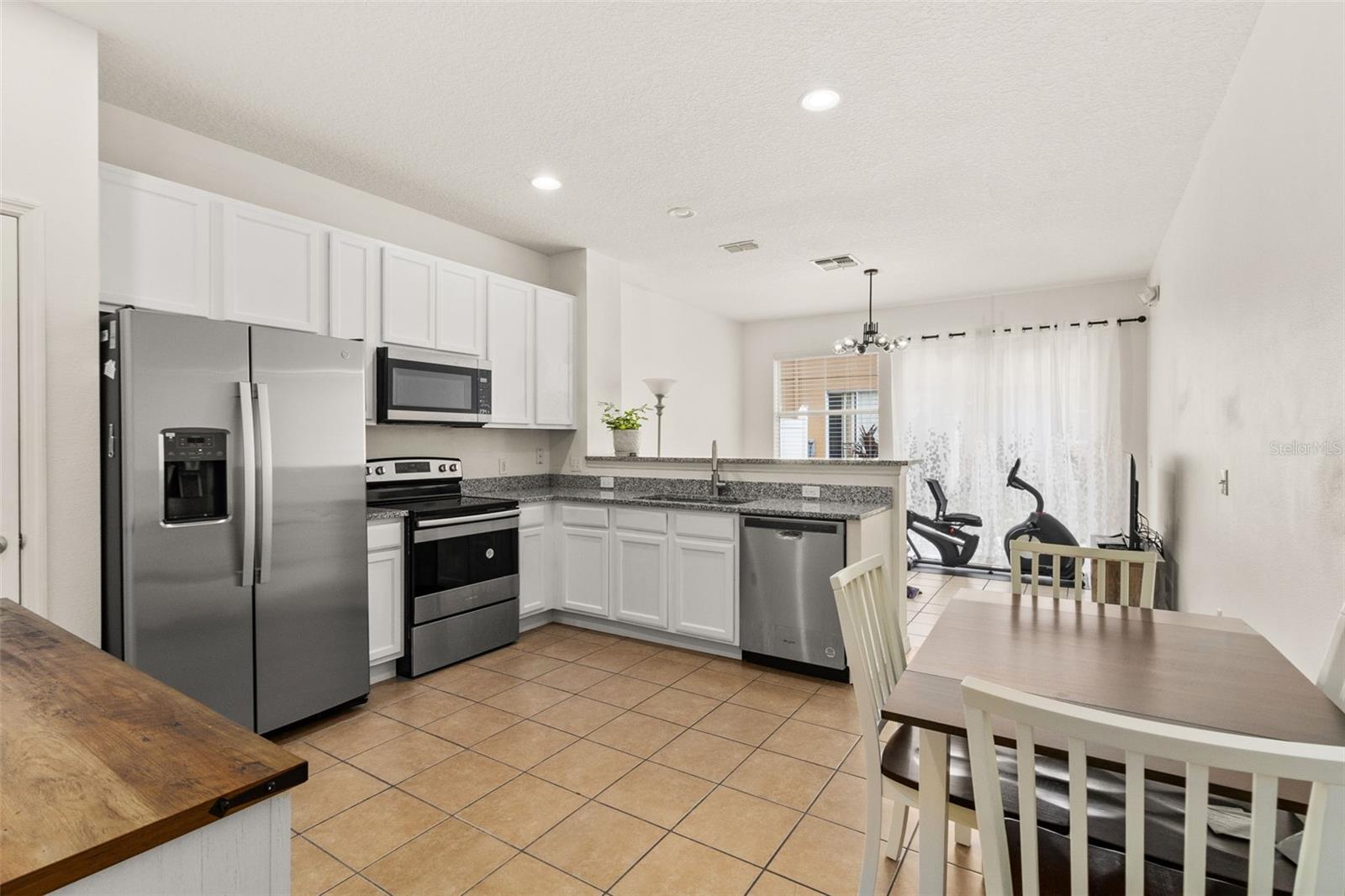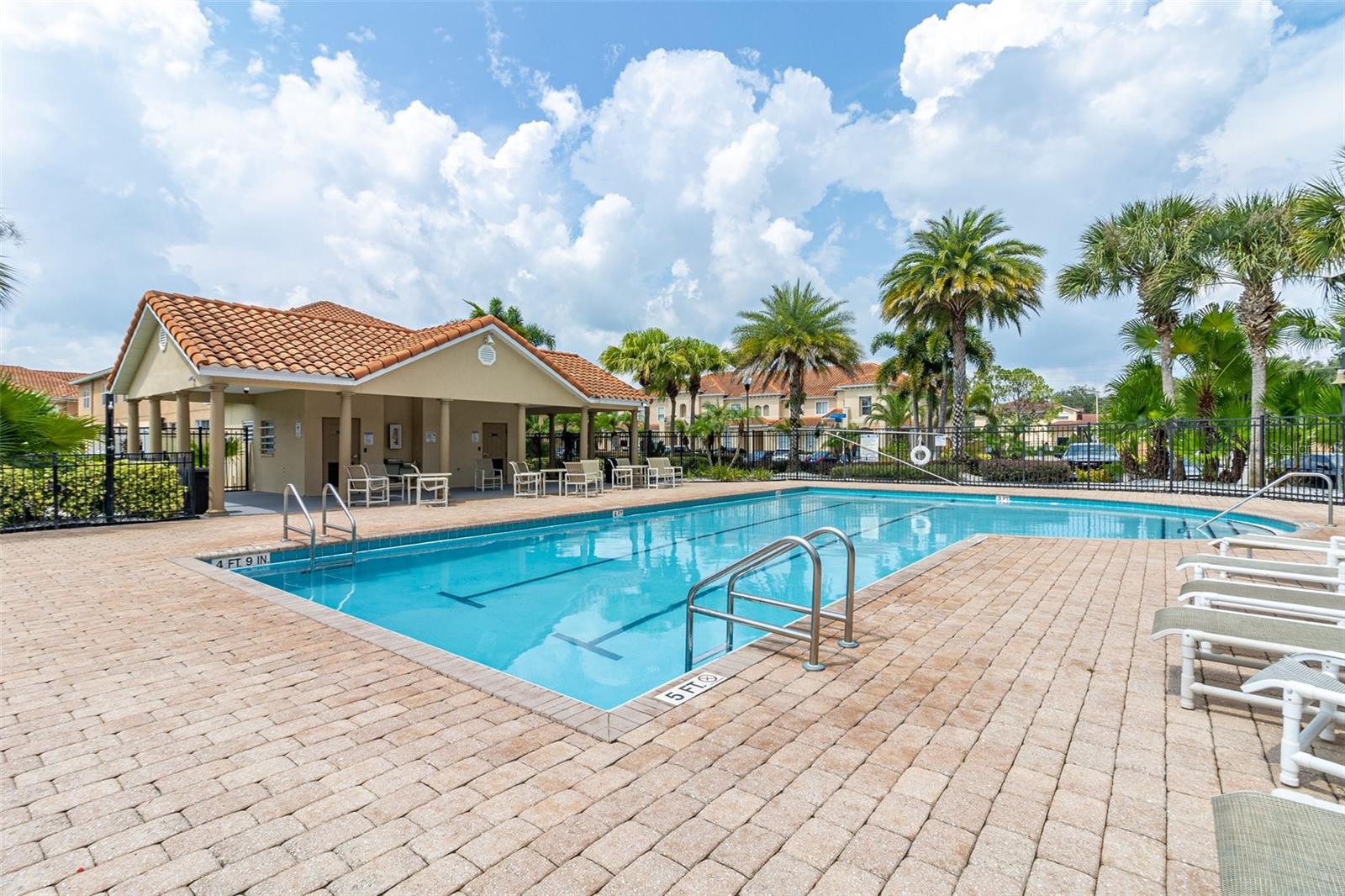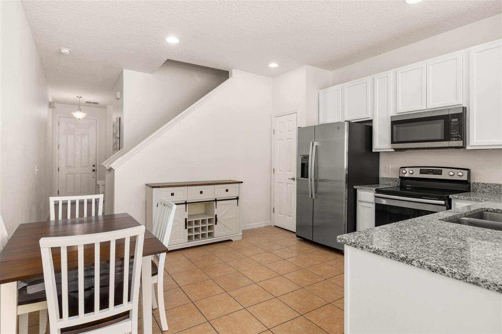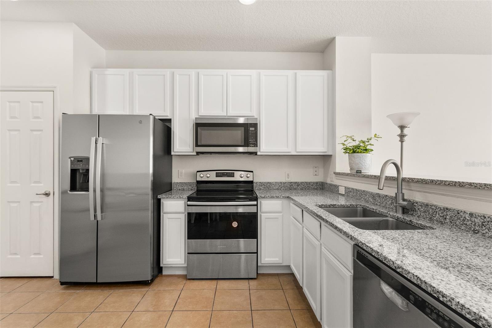 Beautiful and spacious 3 bedroom, 3 bathroom townhouse in the GATED COMMUNITY of PARADISE CAY. This LARGER UNIT boasts 1,362 square feet under A/C and features an OPEN FLOOR PLAN with a recently UPGRADED kitchen including GRANITE COUNTERTOPS, NEW FRIGDE, and FRESHLY PAINTED CABINETS. With 2 MASTER bedrooms and 2 FULL bathrooms upstairs, and a third BEDROOM AND FULL BATH ON THE FIRST FLOOR, this home is perfect for families or guests. A NEW WATER HEATER has just been installed for added convenience. **Now, all bedroom windows have blinds and curtains, while the living room window and patio only has blinds**. Located within WALKING DISTANCE to US 192, residents will enjoy easy access to restaurants, grocery stores, and other convenient stores. Paradise Cay is a Mediterranean style community just 4 miles from Disney maingate, offering a pool, cabana, and playground area for residents to enjoy. Short term and long-term rentals are permitted, making this home a great investment opportunity or a comfortable primary residence.