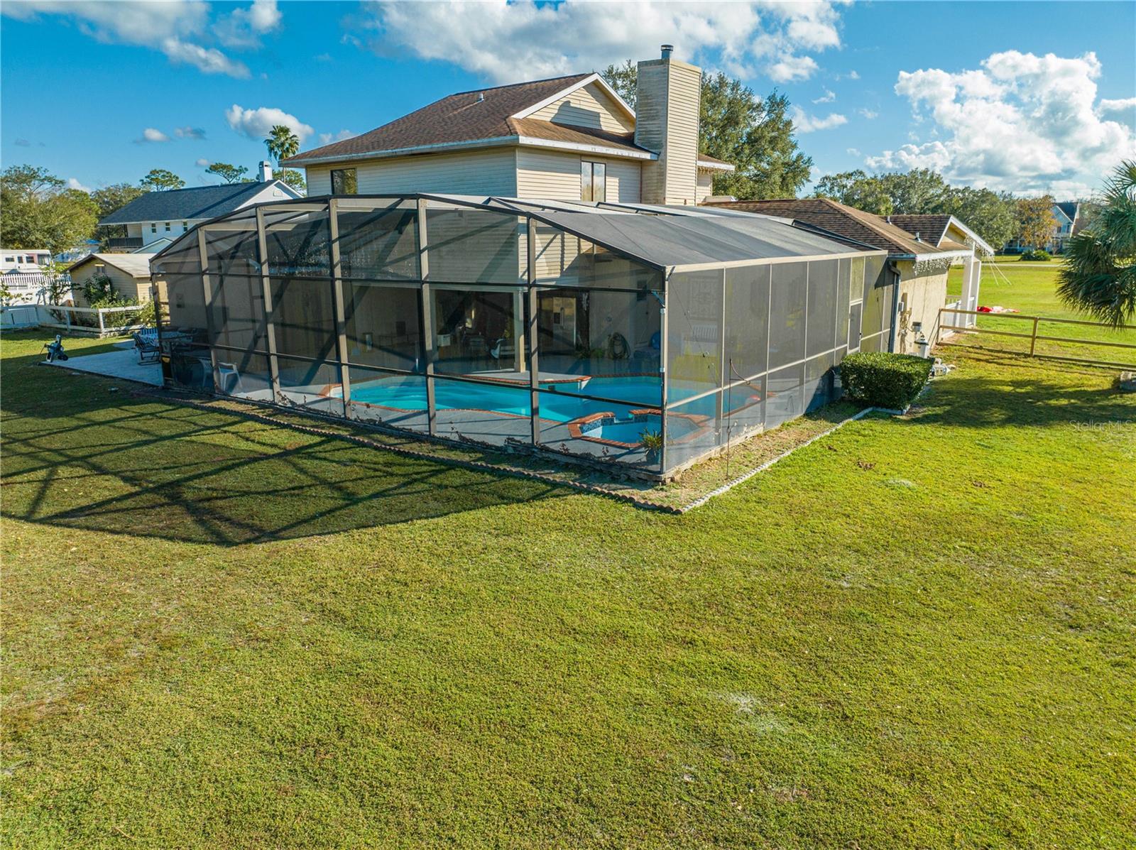 This spacious single family home is a must see!!!. The house is in the mostly sought in the community of Tohop Estates. As you drive around this neighborhood you would see the beauty of this home. The driveway will take you to the 2 attached cars garage. Kitchen /family combo room with Skylight, an island and ceramic tiles. Front house with a good size space porch to enjoy the view outside. A 3.5 bathrooms and 4 bedrooms. Come and see the size of the back porch with pool deck and half bathroom . Lot size is 2.38 Acres; good for farming if you want animals or just entertain guests. There are "NO HOA and NO CDD". Don't wait, let's bring your buyers contract. Investors are welcome!!! Must call Realtor Agent, Oswaldo or Wilma Sanchez. or office for showing. Measurements **MUST BE VERIFY BY BUYERS***, all measurements are Approximate. See attachments of Sellers disclosure, and survey copy. "SOLD AS IS CONDITIONS" Present all contract at "FAR BAR AS IS CONTRACT" " ***** PRICE REDUCE FOR QUICK SALE"********