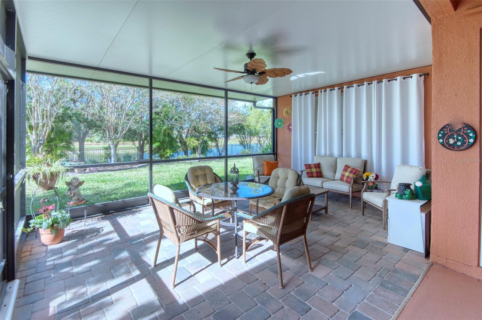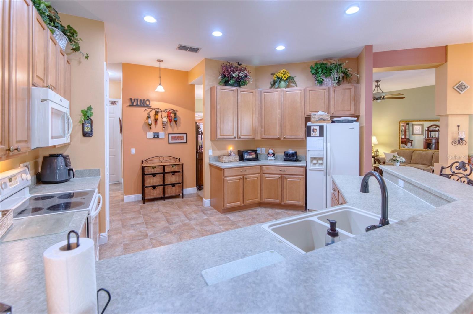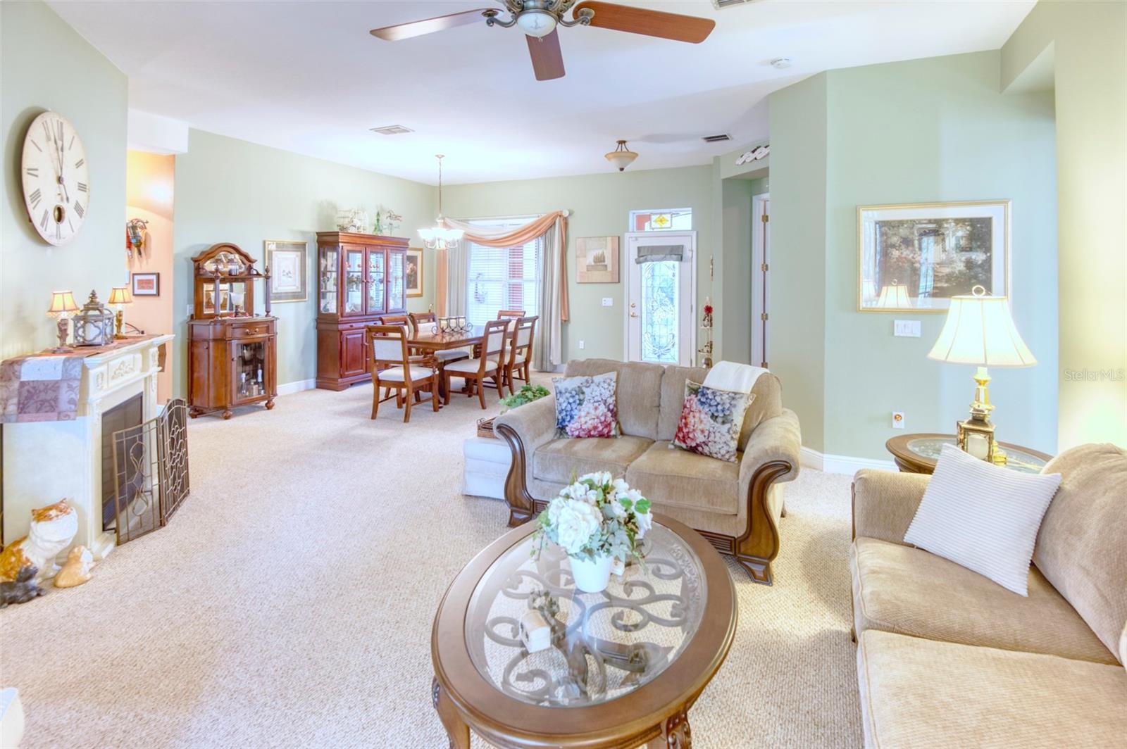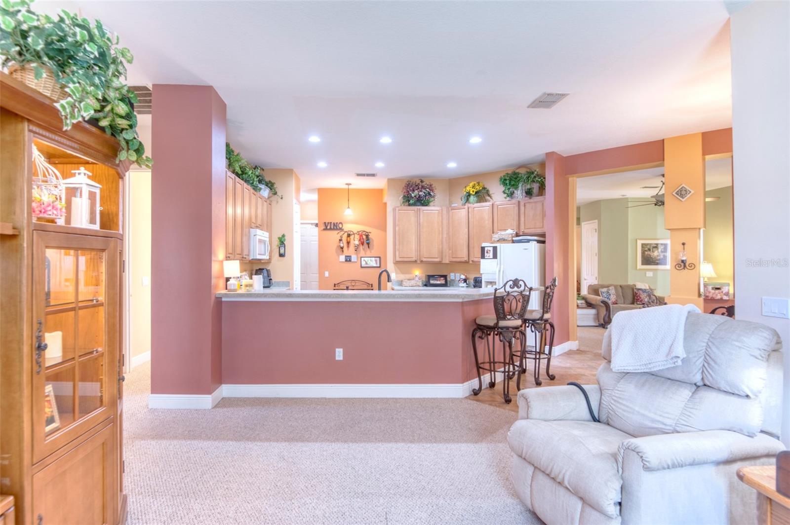 Do you like to entertain? This home offers generous space and is priced to allow for your personal touch and customization. Here’s a rare opportunity to own a stunning Operetta model with a full 3 car garage in the highly desirable 55+ gated community of Solivita. This beautifully maintained 2005 home offers 2,449 sq. ft. of thoughtfully designed living space, featuring 3 bedrooms, 2.5 baths, and countless upgrades that blend elegance, comfort, and functionality. Enter through the screened front entry into a light-filled foyer, showcasing a leaded glass front door with transom window. The spacious living and dining areas flow seamlessly into an enclosed lanai with breathtaking views of a private garden and serene pond—the perfect place to relax or entertain. A French-door den provides an ideal space for an office or reading nook. The kitchen features 42” cabinetry with pull-out draws, matching appliances, ample counter space, and a pantry. The kitchen is open to the family room which provides the chef ability to entertain while cooking for the guests. A powder room and laundry area are conveniently located near by. The primary suite is a true retreat with dual closets and a luxurious en-suite bath complete with dual sinks and a walk-in shower. Two guest rooms and bath provide your guests all the comforts of home. One of the guest rooms contains a Murphy bed which offers flexibility should you need space for an additional office or hobby room. Just fold up the bed and it’s tucked away out of sight! Step outside to take in the beautiful view of the pond and your extended, fenced backyard oasis - perfectly lit for those evening gatherings. Your pets will love the fenced in yard so they may roam freely in their own space. NOTE UPDATES: TILE ROOF REPLACED OCTOBER 2023, A/C JUNE 2024, WATER HEATER JUNE 2024, SMOKE DETECTORS RECENT, GARGE DOOR MOTOR 2023. And, if you’re looking for more storage and workspace, you’ll love the rare three-car garage. It even has ample room for vehicles, a workbench and a wash tub for added convenience. Live the Solivita Lifestyle! Solivita is a vibrant 55+ gated community offering incredible amenities, including pickleball, bocce, shuffleboard, softball and billiards, two state of the art fitness centers, multiple pools, two dog parks, over 250 clubs, access to two 18-hole championship golf courses at Stonegate Golf Club (membership or pay as you go options available). ***SEE THE FULL LENGTH VIDEO ON TOUR LINK*** SCHEDULE YOUR PRIVATE SHOWING TODAY!
