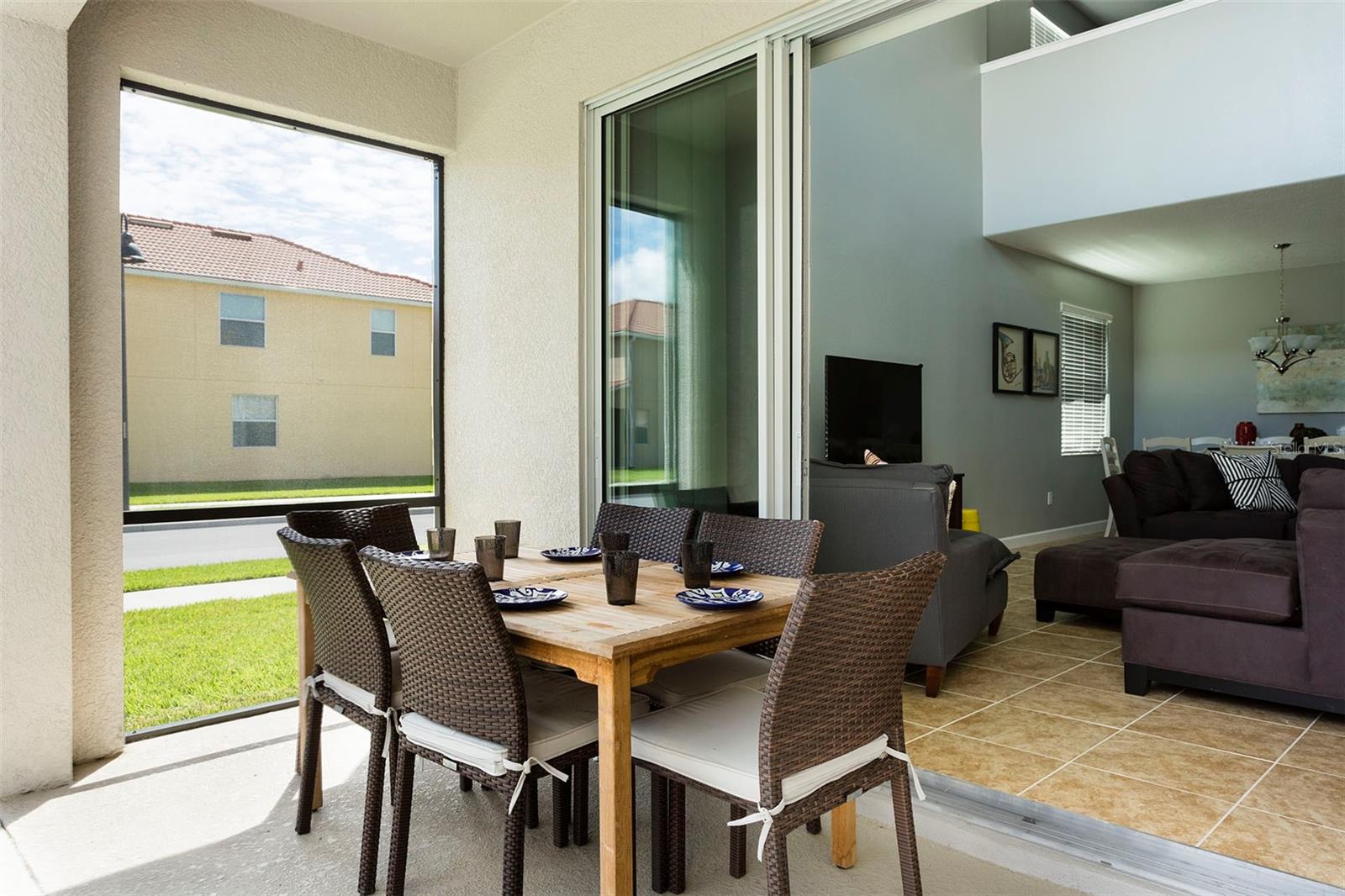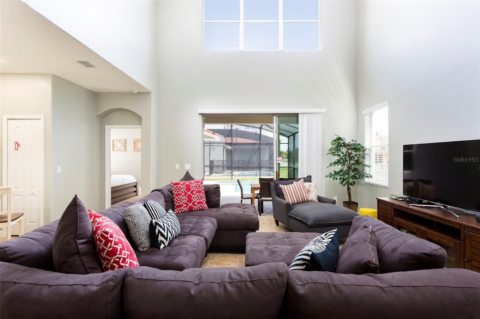 Attention Investors: This five-bedroom, five-bathroom home is in Kissimmee's most sought-after Paradise Palms Resort. If you're searching for a spacious property in a prime resort location, your search ends here! This house is being sold fully furnished and benefits from a heated pool in a screened enclosure. On the first floor, there is a spacious living-dining area with a very high ceiling adjacent to a large kitchen with granite countertops and stainless appliances. The kitchen has beautiful dark cabinets and a large central island with bar stools; the kitchen and living-dining area also benefit from lovely floor tiles for easy maintenance. On the first floor are two bedrooms, including an en-suite primary bedroom, which is excellent for anyone who doesn't want to use the stairs. There is an additional primary bedroom, two more bedrooms, and additional bathrooms on the second floor. As a bonus, an ample loft space has been used as a second living area on the second floor. Paradise Palms is within a ten-minute drive to Disney, and there is an excellent choice of restaurants, supermarkets, and shops, all within a short drive. The resort benefits from an impressive clubhouse, a large community pool with a slide and waterfall, a fitness room, a cinema, tennis and basketball courts, a game room, a playground, and a tikki bar. The HOA fee covers cable TV, internet, landscaping, trash collection, and 24-hour security with a guarded gated entrance. Short-term rentals are allowed in this resort.