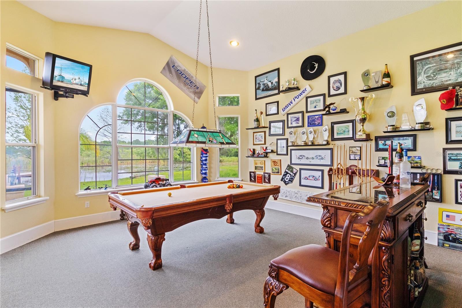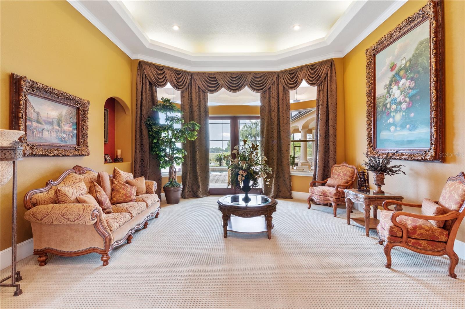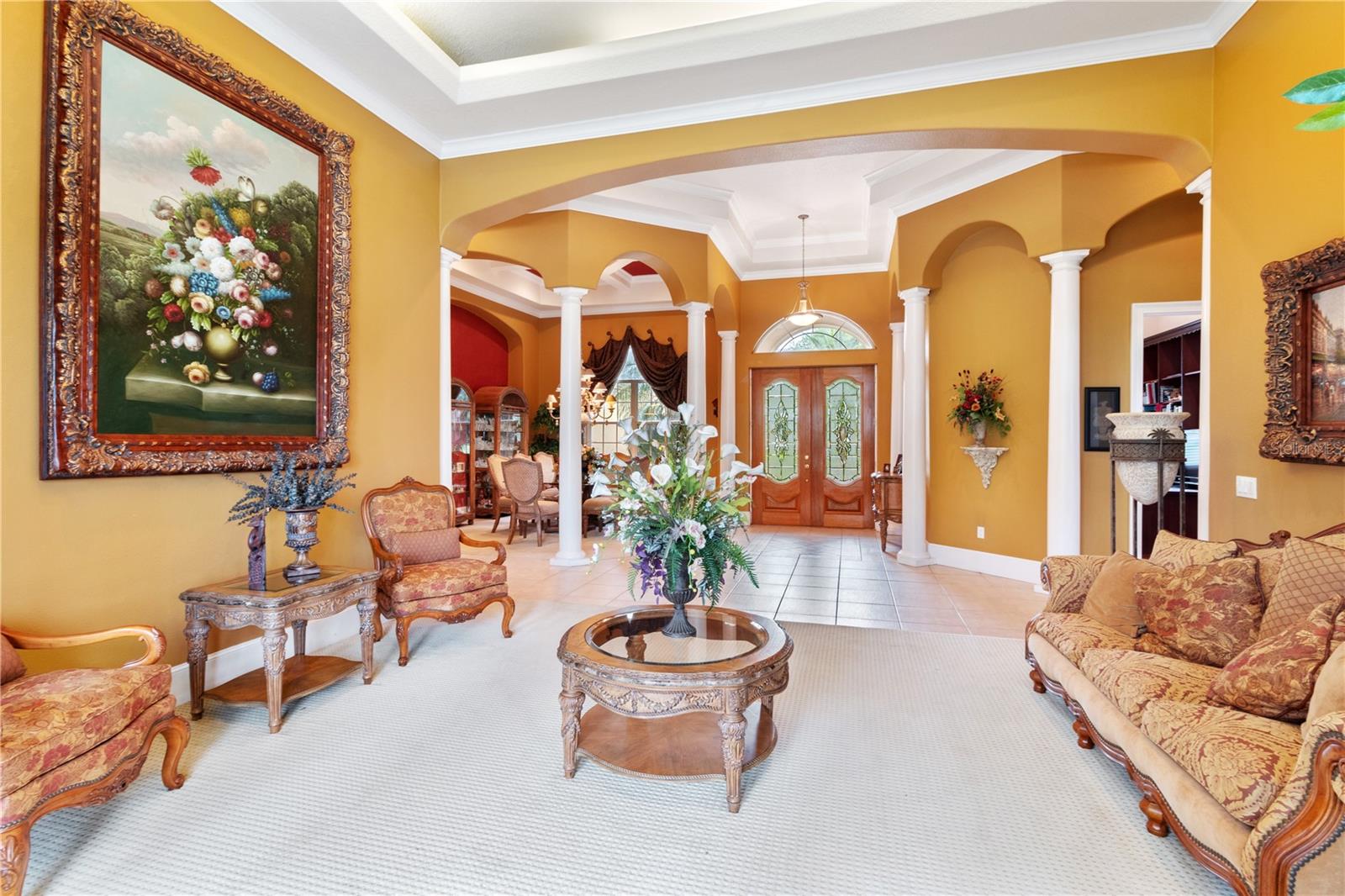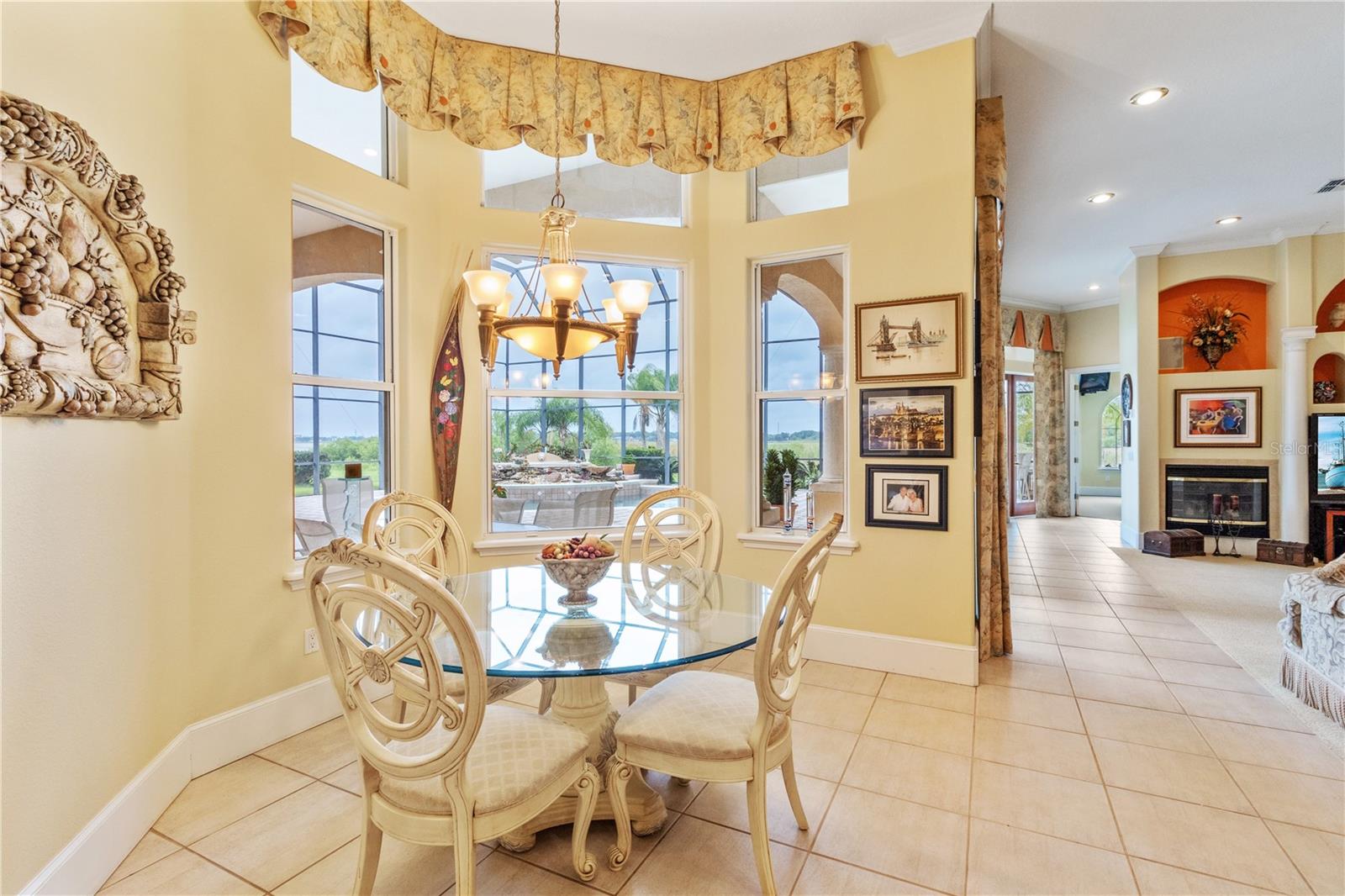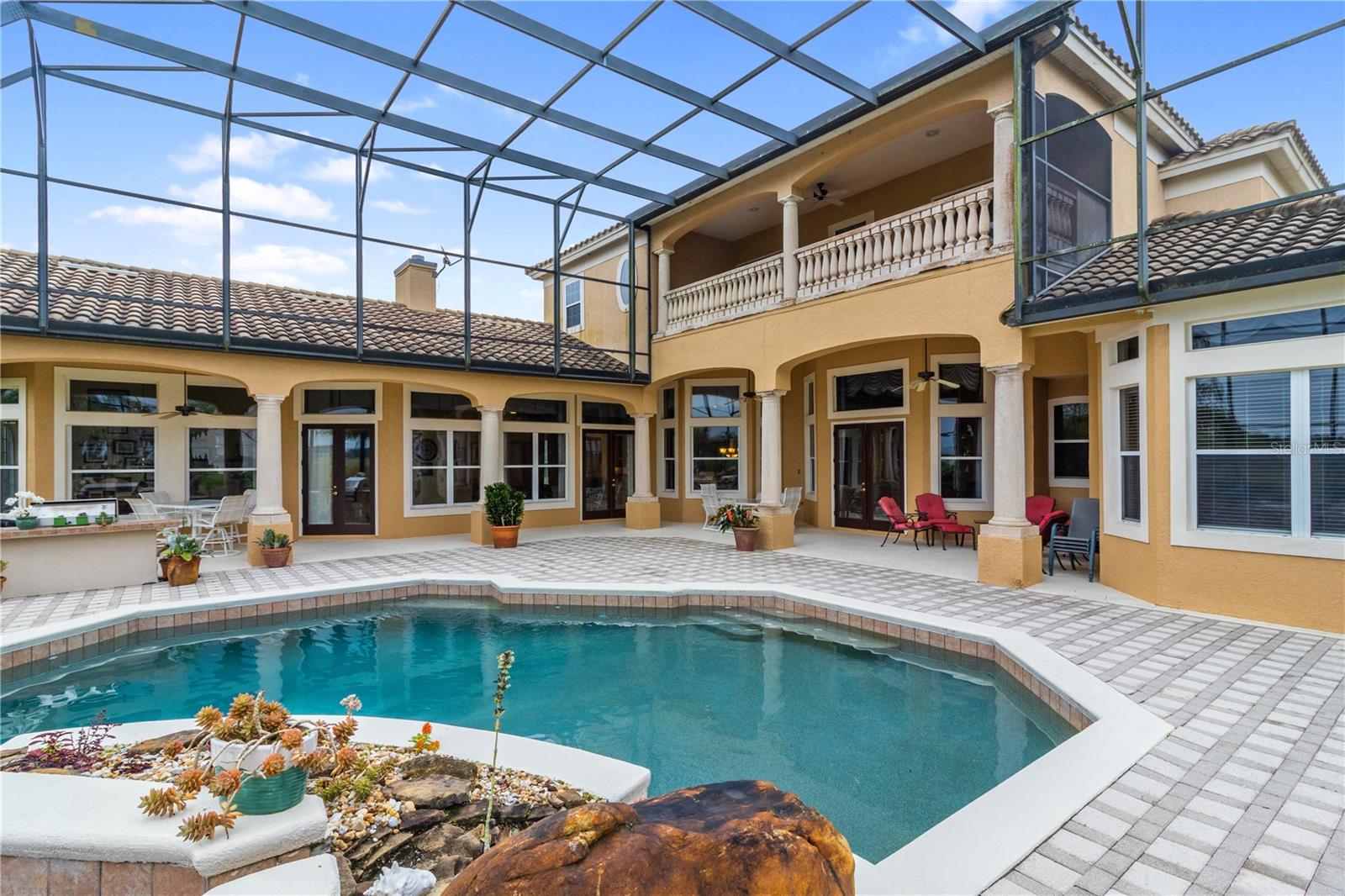Stunning Custom Mediterranean-Style Lakefront Estate in Sunset Pointe Discover the epitome of luxury living in this truly custom-built, Mediterranean-style two-story home nestled in the exclusive, gated community of Sunset Pointe. Situated on a peaceful cul-de-sac with mature oak trees, this lakefront masterpiece offers breathtaking views of Lake Toho, nightly Disney fireworks, and spectacular sunsets from your own backyard. Step into elegance with exquisite architectural details, including Coquina columns, crown moldings, soaring detailed ceilings (12’-14’ downstairs, 10’ upstairs), and cylindrical white columns that enhance the grand entrance, hallway, and dining room. Exceptional Outdoor Living Private pool & hot tub—perfect for relaxing or entertaining Spacious, shaded patio with Coquina columns for outdoor dining & BBQs Two tiled balconies with Coquina balustrades & stunning lake views Private dock for fishing on one of Florida’s best bass fishing lakes Expansive & Elegant Interior 6 bedrooms | 6 bathrooms—ideal for guests & multi-generational living Gourmet kitchen with Maple Kitchen Craft cabinets, granite countertops, & breakfast bar Multiple entertainment spaces, including a living room, family room, dining room, breakfast nook, game & potential media room Large fitness room & private home office for work-from-home convenience Built-in gas fireplace with custom feature wall & shelving in the family room Prime Location with Community & Close by Amenities Exclusive gated community with tennis & soon-to-come pickleball courts Brownie Wise Park is nearby perfect for jogging, dog walking, kayaking & picnics Three-car garage & circular paver driveway for ample parking This one-of-a-kind lakefront estate seamlessly blends elegance, and comfort. Furniture is negotiable. Don’t miss this rare opportunity—schedule your private tour today!
