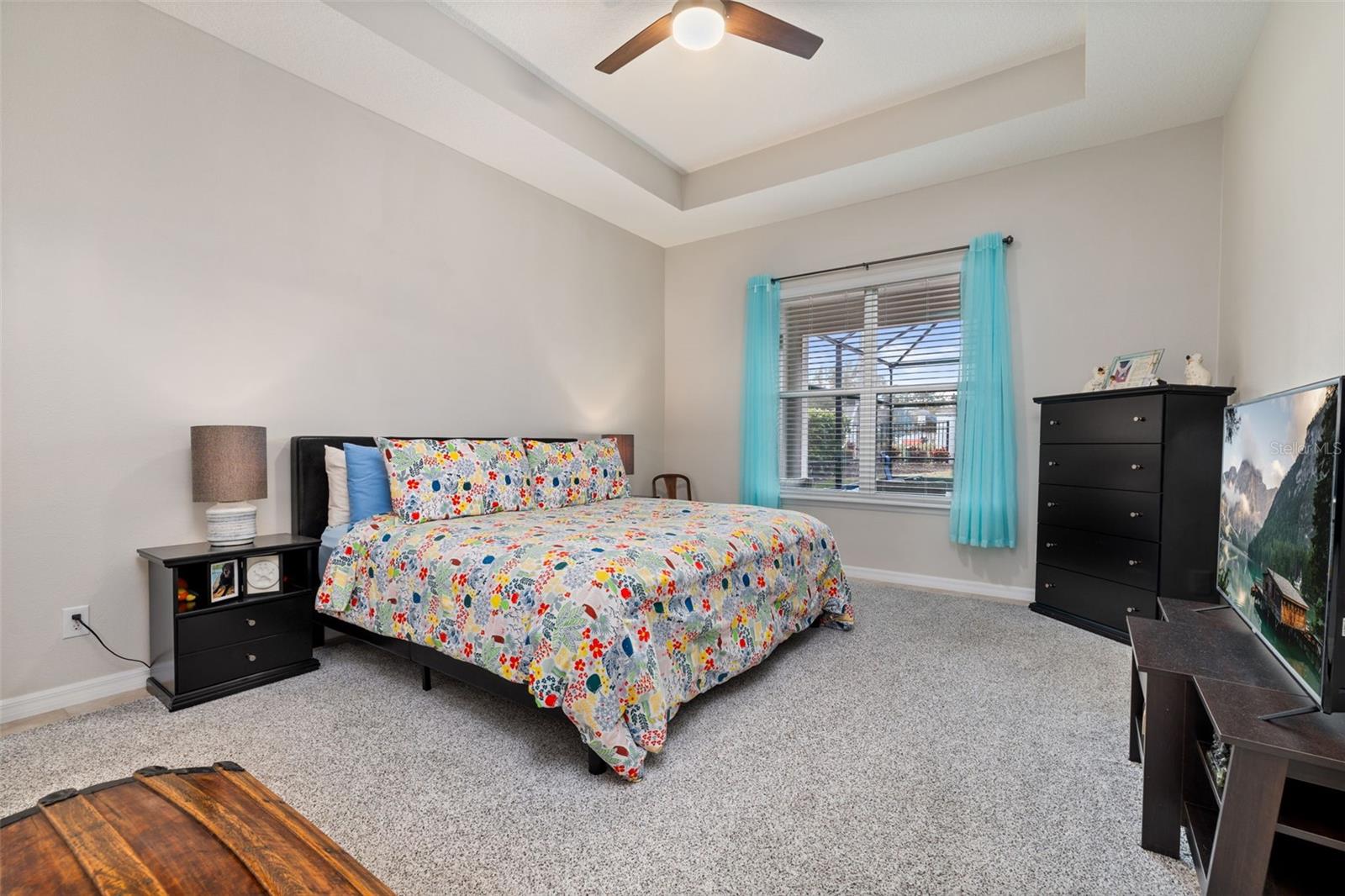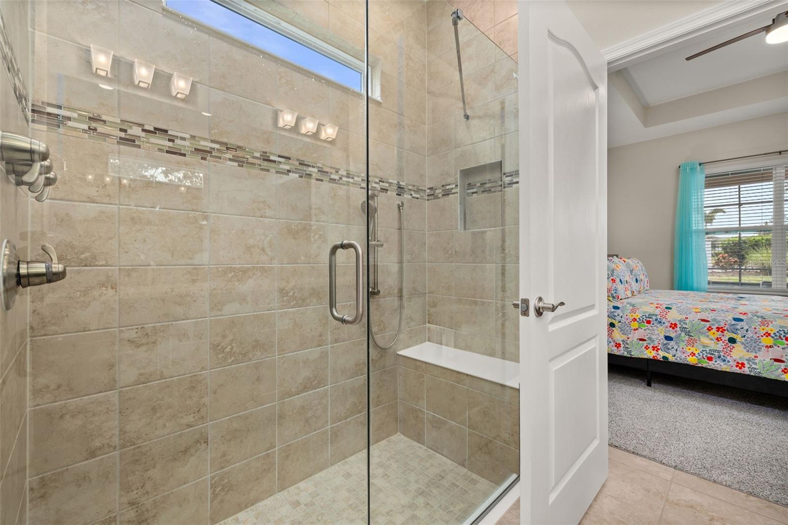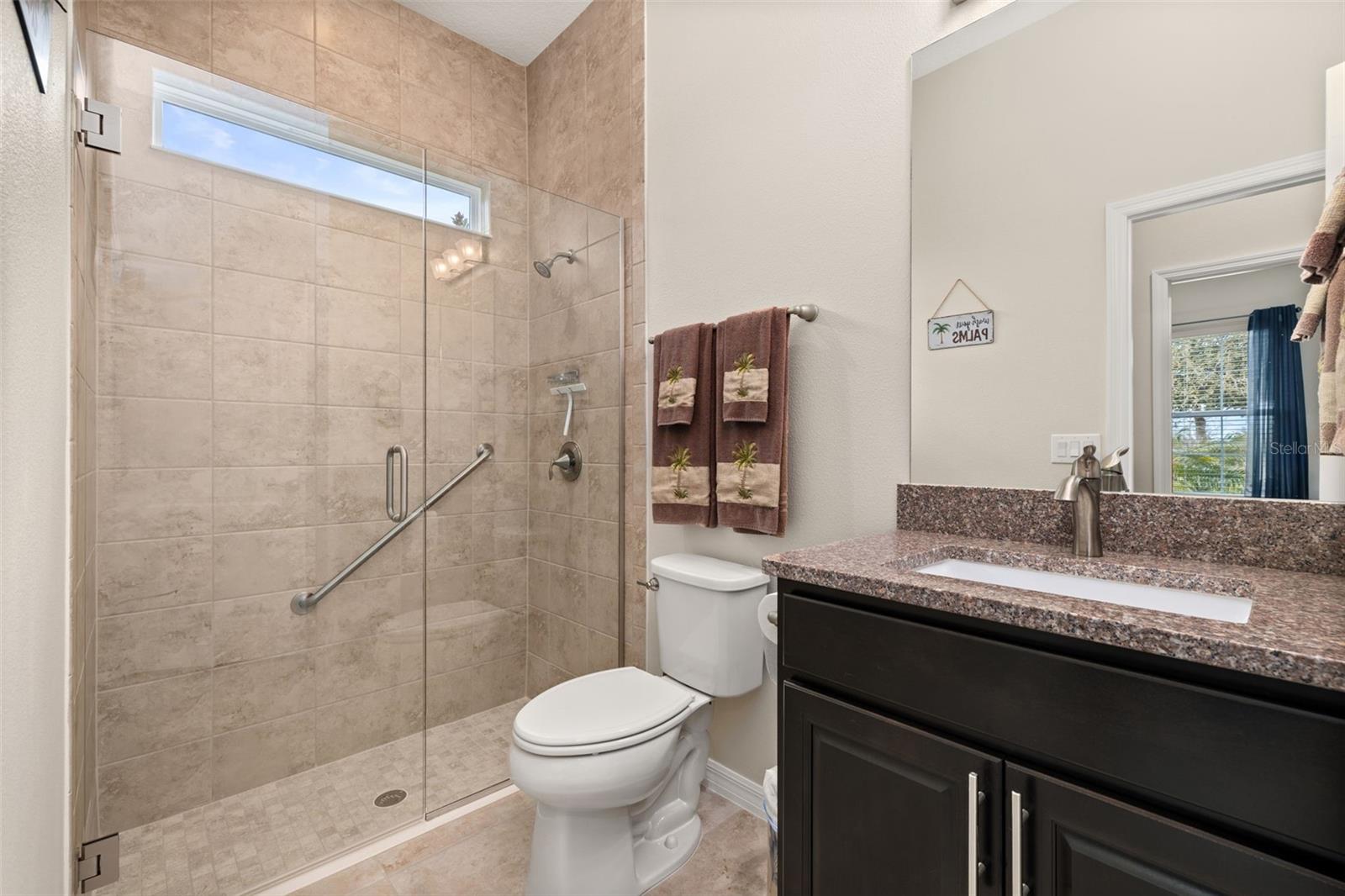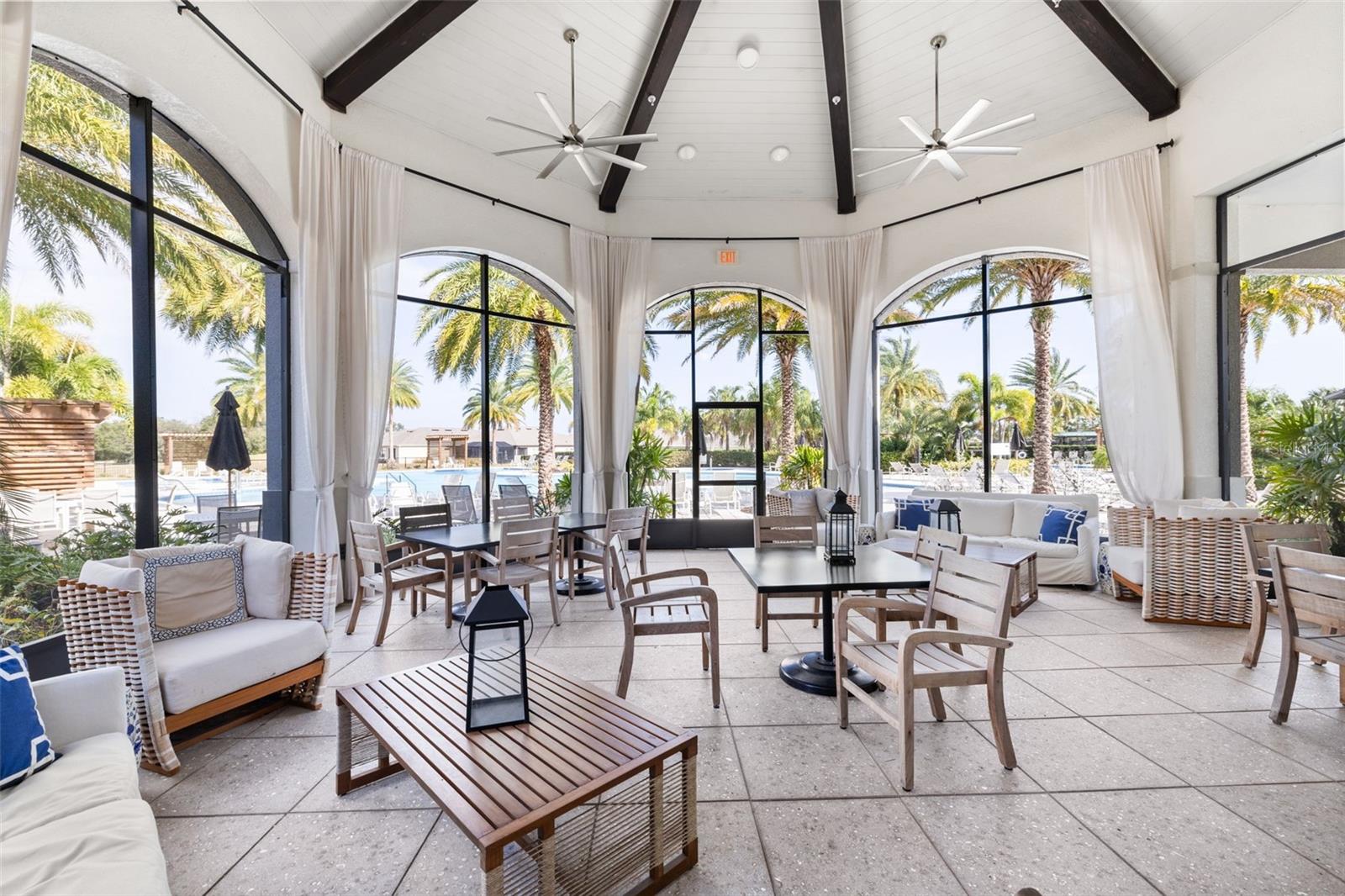 Nestled in the heart of Four Seasons Orlando, this beautifully designed corner lot residence offers a HEATED POOL with screen enclosure, southern exposure, Generac Home Generator and high ceilings which create a bright and inviting atmosphere. As you step inside, one discovers a thoughtfully designed interior with 16x16 ceramic tile flooring, high baseboards, large windows and recessed lighting throughout. The open kitchen is a chef's delight, equipped with a 4 burner GE Profile gas stove with vented hood and stacked drawers, Aristokraft mocha colored solid wood cabinets with soft close drawers, desert brown colored granite counters with single basin stainless steel undermount sink, single handle pulldown faucet, brushed nickel pulls, undermount lighting and polished diamond mosaic tile backsplash. GE Profile stainless steel built in oven and microwave, refrigerator and dishwasher completes this look. The oversized living/dining room combo with tray ceiling overlooks the pool area through the 3 panel sliding glass doors. The spacious screened-in lanai and heated pool area is accented by turquoise colored tile coping and stone paver pool deck with French drains, perfect for entertaining or al fresco dining. The master suite features a tray ceiling, luxurious ensuite bathroom and generously sized walk-in closet. The frameless shower enclosure features rainfall showerhead, shower seat, shower nook, handheld showerhead and transom window for natural light. The gentlemen's height dual vanity is complete with soft close stacked drawers and cabinets, desert brown colored granite countertops, rectangular ceramic undermount sinks and brushed nickel single handle faucets. Located in the Four Seasons Active Adult Community, this home offers a sophisticated lifestyle with all the modern conveniences. Included is a resort style clubhouse with pickleball, bocce ball and tennis courts, zero entry pool, billiards room, game room, art room and ball room as well as a 24 hour guard gate. Just a few miles from Disney, Celebration and all that Central Florida has to offer, experience luxury living at its finest.