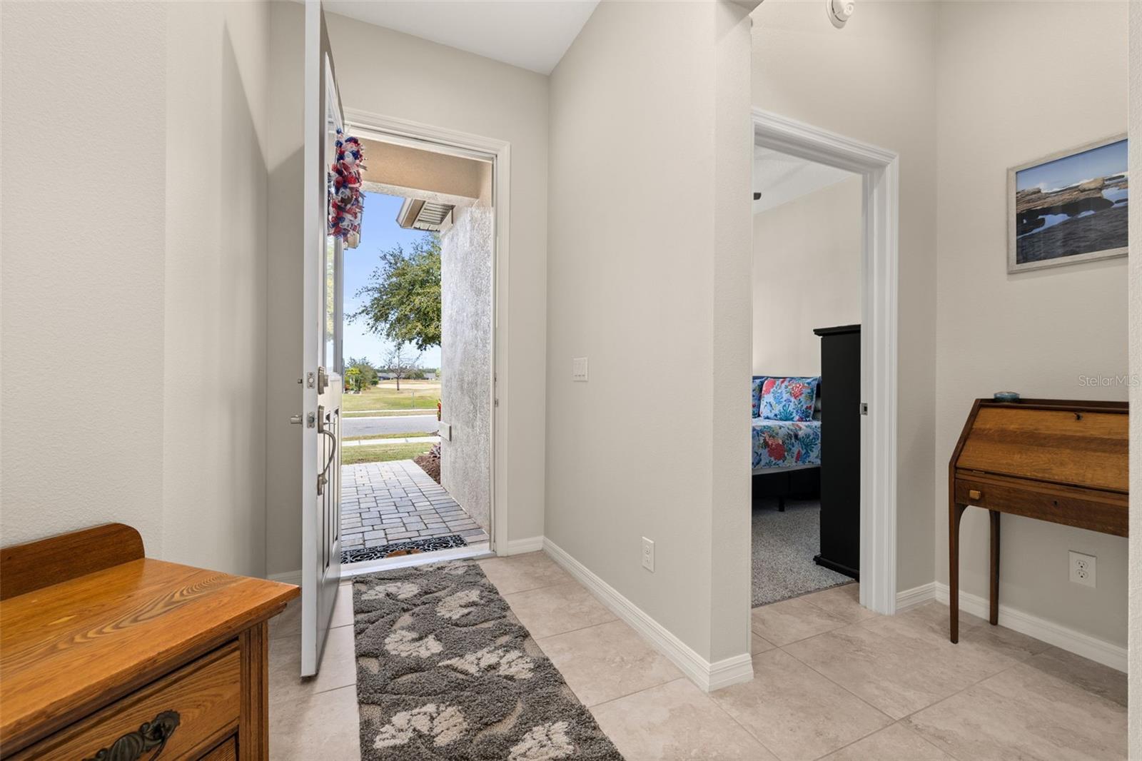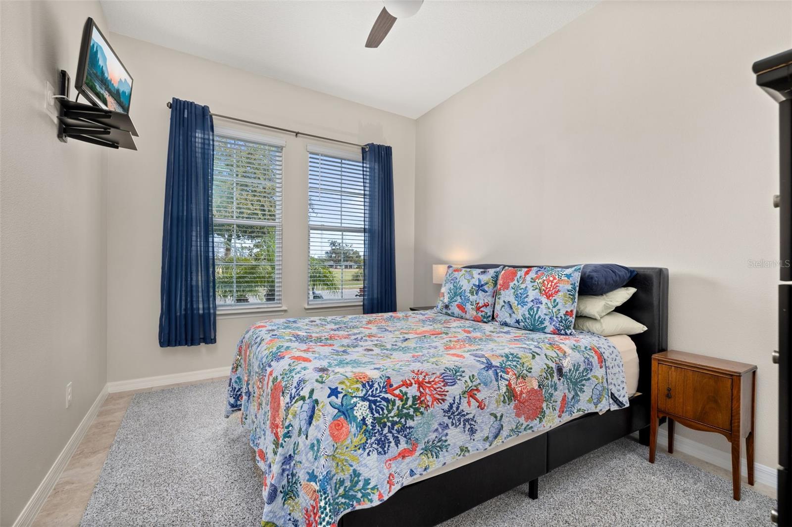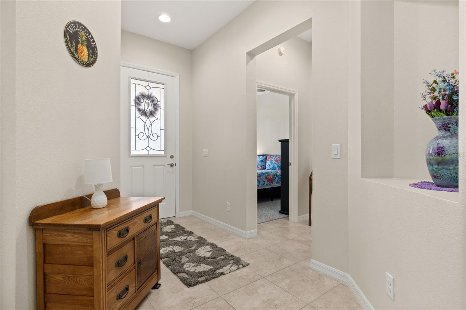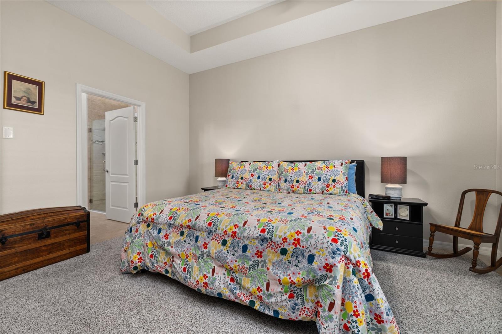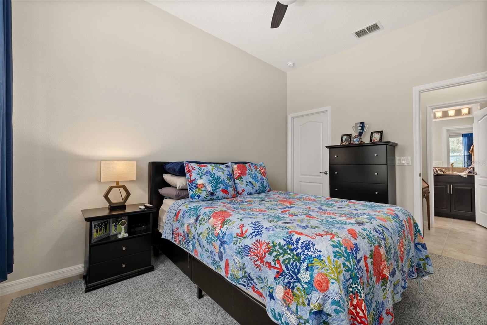 Nestled in the heart of Four Seasons Orlando, this beautifully designed corner lot residence offers a HEATED POOL with screen enclosure, southern exposure, Generac Home Generator and high ceilings which create a bright and inviting atmosphere. As you step inside, one discovers a thoughtfully designed interior with 16x16 ceramic tile flooring, high baseboards, large windows and recessed lighting throughout. The open kitchen is a chef's delight, equipped with a 4 burner GE Profile gas stove with vented hood and stacked drawers, Aristokraft mocha colored solid wood cabinets with soft close drawers, desert brown colored granite counters with single basin stainless steel undermount sink, single handle pulldown faucet, brushed nickel pulls, undermount lighting and polished diamond mosaic tile backsplash. GE Profile stainless steel built in oven and microwave, refrigerator and dishwasher completes this look. The oversized living/dining room combo with tray ceiling overlooks the pool area through the 3 panel sliding glass doors. The spacious screened-in lanai and heated pool area is accented by turquoise colored tile coping and stone paver pool deck with French drains, perfect for entertaining or al fresco dining. The master suite features a tray ceiling, luxurious ensuite bathroom and generously sized walk-in closet. The frameless shower enclosure features rainfall showerhead, shower seat, shower nook, handheld showerhead and transom window for natural light. The gentlemen's height dual vanity is complete with soft close stacked drawers and cabinets, desert brown colored granite countertops, rectangular ceramic undermount sinks and brushed nickel single handle faucets. Located in the Four Seasons Active Adult Community, this home offers a sophisticated lifestyle with all the modern conveniences. Included is a resort style clubhouse with pickleball, bocce ball and tennis courts, zero entry pool, billiards room, game room, art room and ball room as well as a 24 hour guard gate. Just a few miles from Disney, Celebration and all that Central Florida has to offer, experience luxury living at its finest.