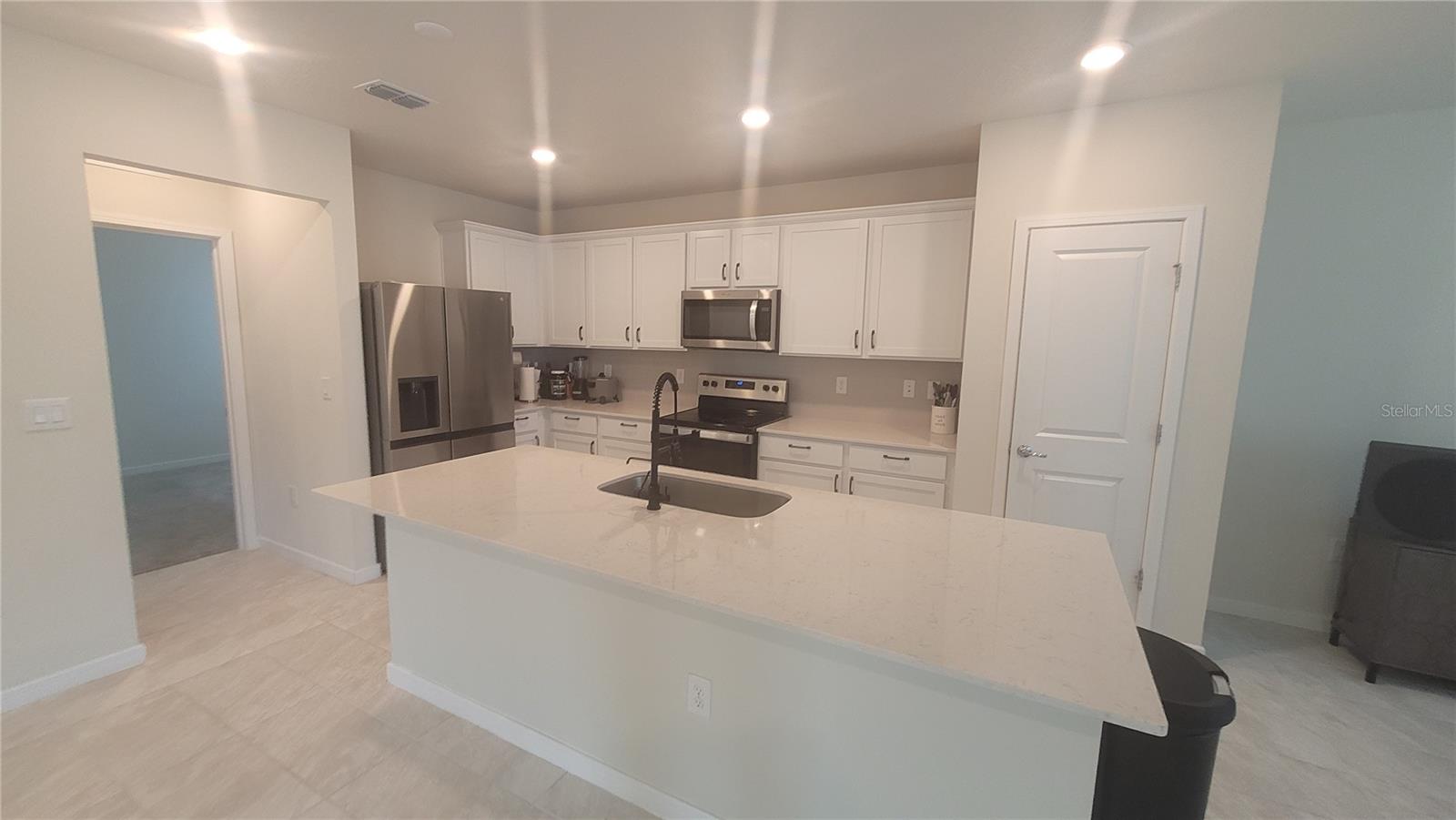 Prestige design package, 5 bedrooms, 3 bathrooms, a loft, a 2-car garage and storage throughout. The open-concept kitchen opens to your cafe and gathering room and boasts a center island, storage pantry, stainless steel Whirlpool appliances, direct vented energy efficient range hood, bright white cabinets, a gray subway tile backsplash and Lagoon quartz countertops. The covered lanai, just beyond the café, makes indoor and outdoor entertaining a breeze. Tybee also features a bedroom and full bathroom on the main level – perfect for visiting guests or for use as an office. The second floor offers ample space and convenience for everyone with a spacious loft, laundry room, three additional bedrooms, a third full bathroom and the Owner’s Suite, which features a large walk-in closet, in suite bathroom with a double quartz-topped white vanity, dual sinks, a linen closet, and a walk-in shower. Professionally curated structural and design selections for this home include Fairview cabinetry with quartz countertops, ceramic tile accents in the kitchen and bathrooms, white Palma ceramic tile flooring throughout the first floor living areas, bathrooms and laundry room and so much more! This spacious Tybee home provides the perfect space to kick back and relax with family and friends. Wake up to conservation views and enjoy luxurious amenities such as a resort-style pool with splash pad, playfield, covered playground, sports court, walking trails and more - with a low HOA and no CDD!