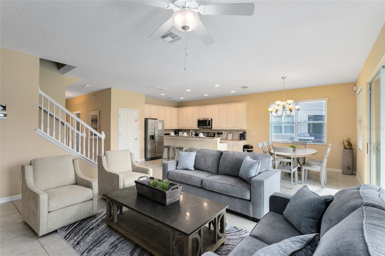 CALLING ALL INVESTORS AND FLORIDA VACATIONERS! Welcome to the GATED VACATION HOME COMMUNITY OF VERANDA PALMS, located just MINUTES from the entrance TO WALT DISNEY WORLD. This exceptional property is CONVENIENTLY SITUATED near major roadways including 192, 417, and I-4, providing easy access TO ALL THAT CENTRAL FLORIDA HAS TO OFFER. Enjoy close proximity to Old Town, Celebration, an abundance of restaurants, shopping, and endless attractions. This FULLY FURNISHED 8-BEDROOM, 7-BATHROOM POOL HOME is an ACTIVE AND THRIVING SHORT-TERM RENTAL PROPERTY. WITHIN EYESHOT of the STUNNING CLUBHOUSE encompassing a RESORT-STYLE POOL, LOUNGE SEATING, HOT TUB, SPLASH ZONE, SPLASH PAD, and FITNESS CENTER. Enter through the COVERED FRONT DOOR into a SPACIOUS FOYER, which features a utility closet equipped with a WASHER AND DRYER. To the left is the first of eight bedrooms, complete with the first of SIX EN SUITE BATHROOMS. To the right is the garage, which has been converted into a fun GAME ROOM, offering a billiard table, ping pong table, and air hockey. The heart of the home opens into a Great Room, where you'll find a MODERN KITCHEN boasting STAINLESS STEEL APPLIANCES, a double-basin sink with a pull-down faucet, SOLID WOOD CABINETRY, GRANITE COUNTERTOPS, a LARGE ISLAND, and a BREAKFAST BAR. Adjacent to the kitchen, the dining room features a stunning wood table that seats eight, and the cozy living room is perfect for relaxing after a day of adventures. Sliding glass doors lead to the SOUTH-FACING POOL AND SPA AREA, which OVERLOOKS A SERENE PRIVATE POND and offers a COVERED PATIO ideal for entertaining. The FRESHLY PAINTED FIRST FLOOR also includes two additional bedrooms and a shared bathroom, all with tile flooring—no carpet in sight. Upstairs, the primary suite is a TRUE RETREAT, featuring a walk-in closet, a dual-sink vanity, an all-glass shower, and a private water closet. The remaining bedrooms are BEAUTIFULLY DECORATED and furnished, each equipped with windows dressed in blinds and curtains, NEWLY REPLACED CEILING FANS, BRAND-NEW ROKU SMART TVS, and closets. The remaining upstairs bedrooms have en suite bathrooms, complete with single vanities and shower/tub combinations. Don’t miss this GOLDEN OPPORTUNITY to own a spectacular property in Veranda Palms—whether as a lucrative vacation rental or your own home-away-from-home.