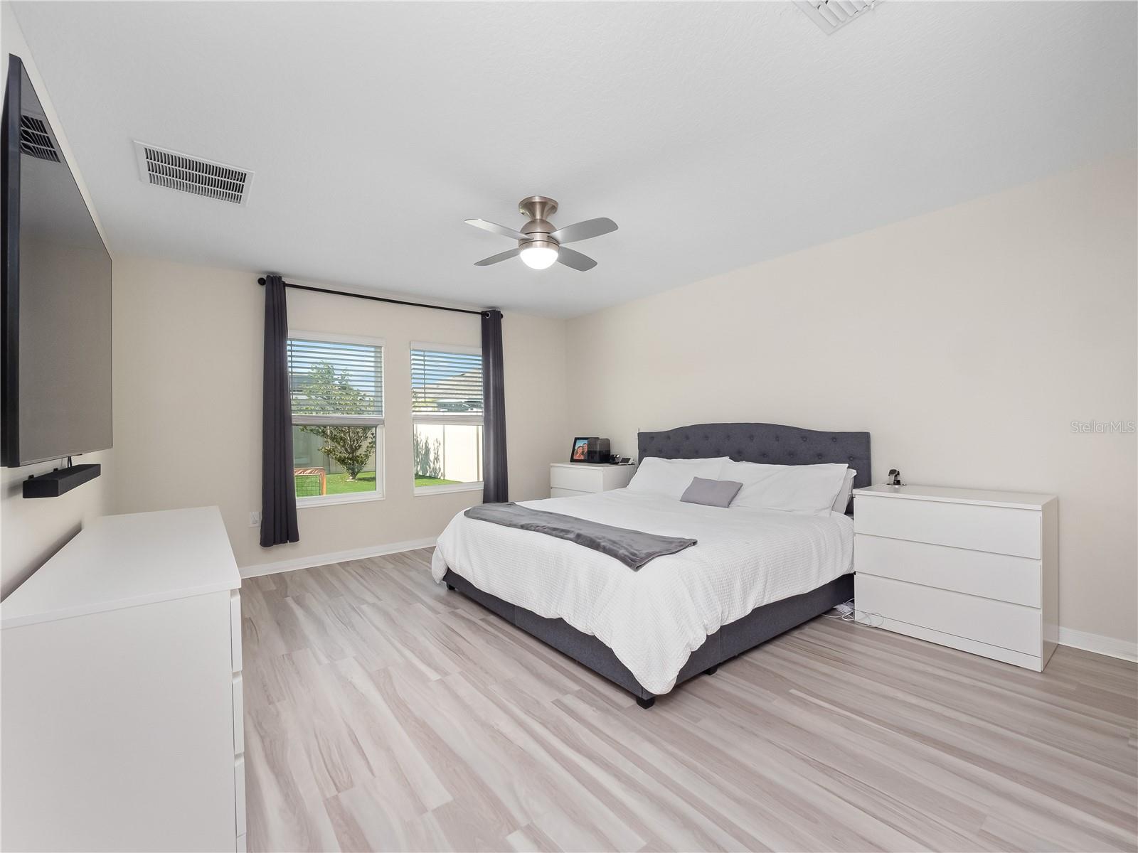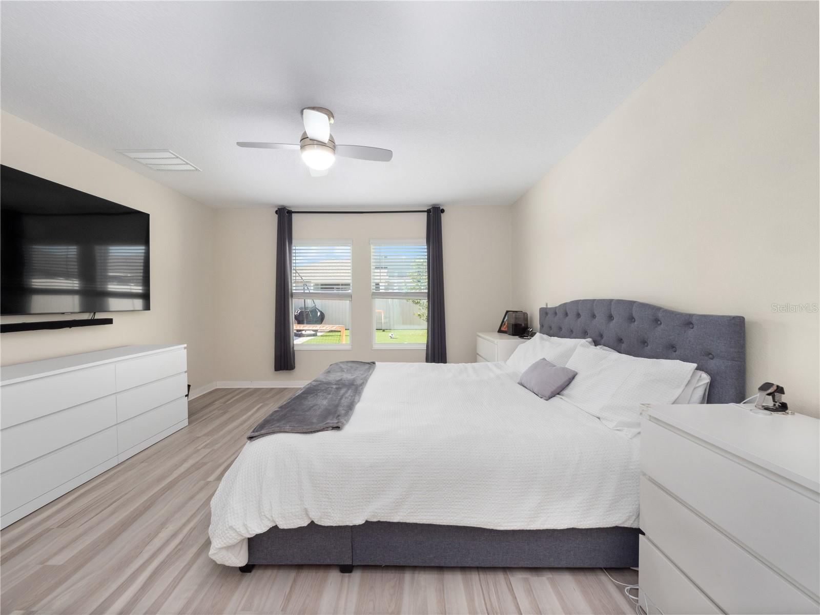 Beautiful Home 4 bed 2 bath upgrade laminate wood flooring throughout all bedrooms, complemented by fresh interior paint. The home features convenient garage storage and a custom-designed master closet. The backyard has been thoughtfully renovated with low-maintenance artificial turf, stylish pavers, and a charming pergola, perfect for outdoor relaxation. The neighborhood offers an array of amenities including a fully-equipped gym, resort-style pool, clubhouse, playground, and scenic walking/running trails. Enjoy recreational facilities such as basketball courts, soccer court, tennis courts, a picnic area, and a dog park. Additionally, the community is secured with 24-hour security. The property is also equipped with a whole-house water softener for added comfort and convenience.