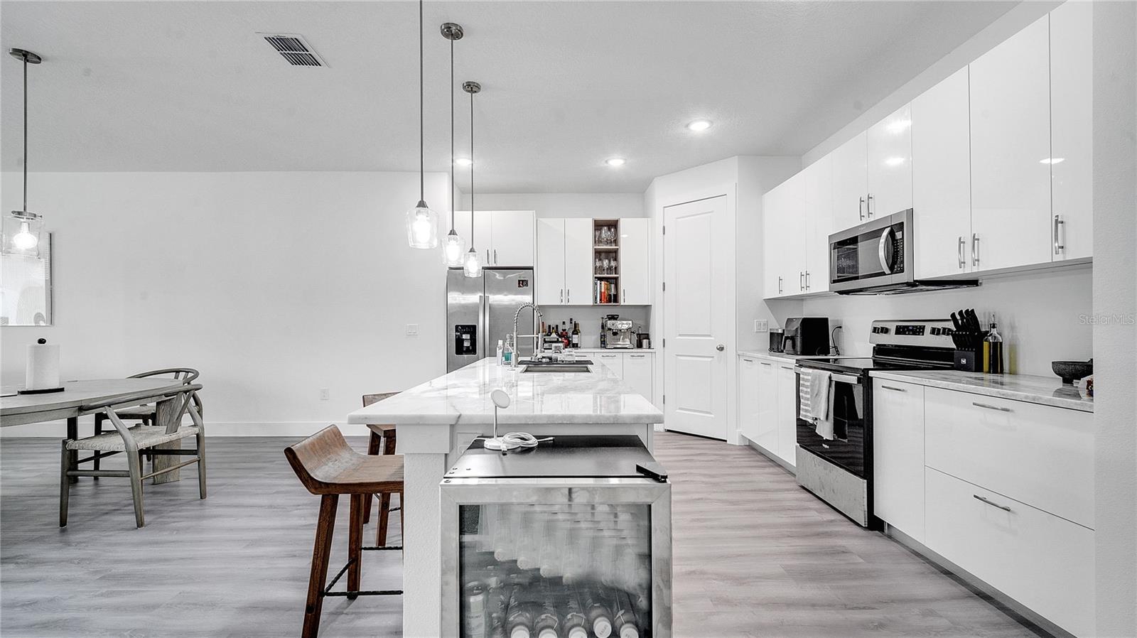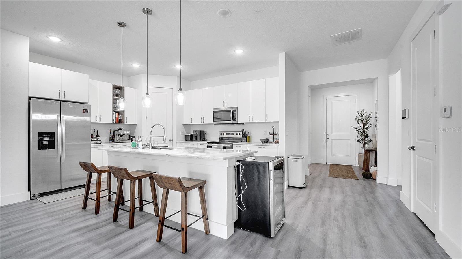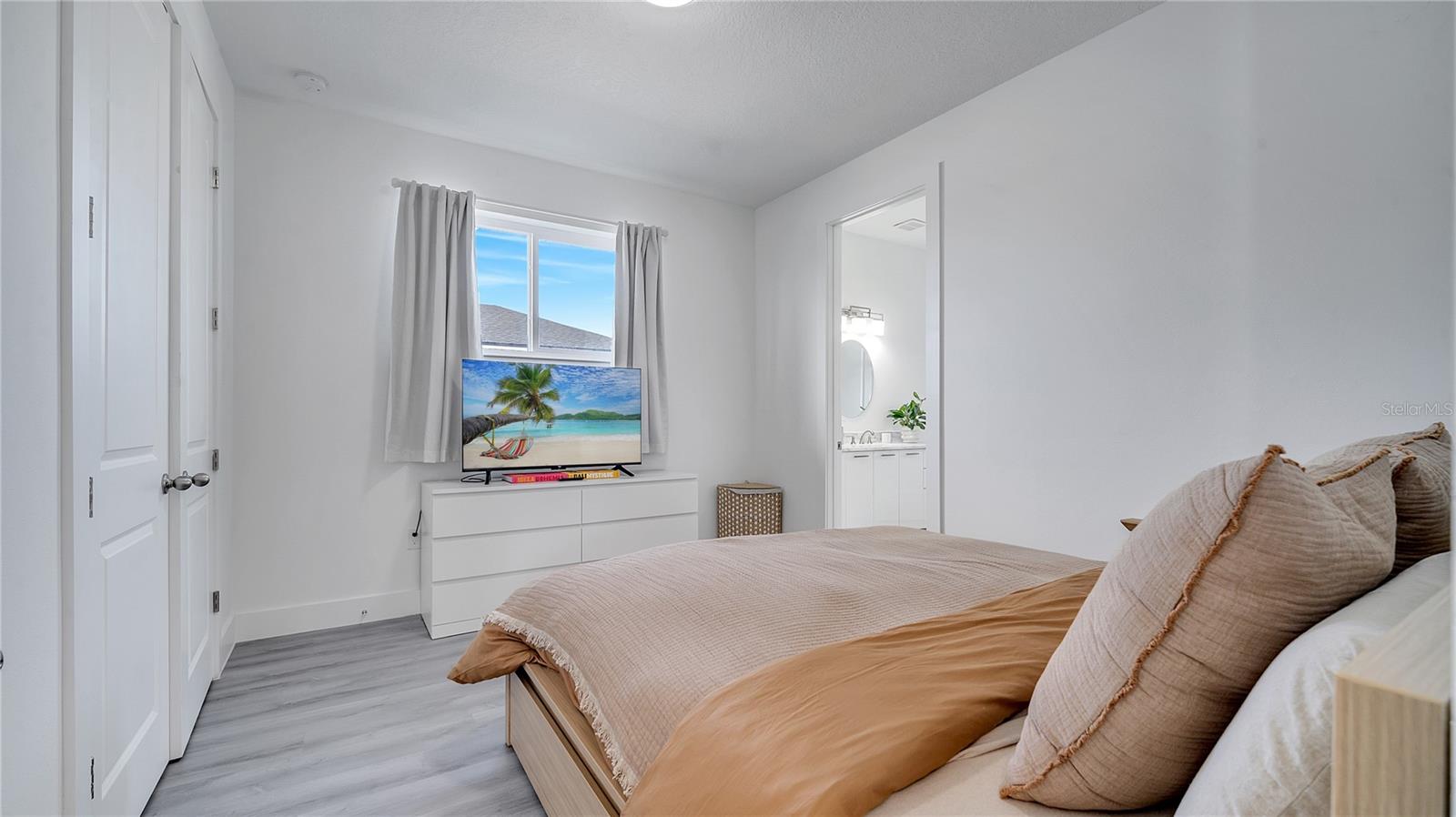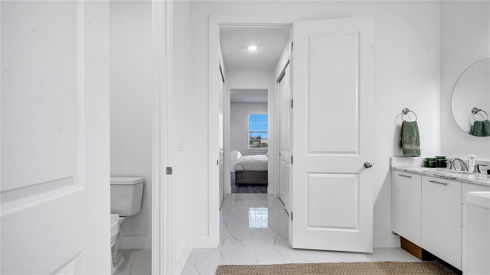 Move-In Ready! This stunning home is sure to impress! It boasts a modern kitchen with sleek stainless steel appliances, soaring ceilings, and two master suites, each featuring elegant level 5 granite countertops and floating vanities. The home offers a luxurious touch with vinyl and marble flooring throughout—no carpet anywhere! Situated in the gated Trafalgar Village community, it’s just 10 minutes from the corner of Osceola Parkway and Highway 192. Priced to sell quickly!