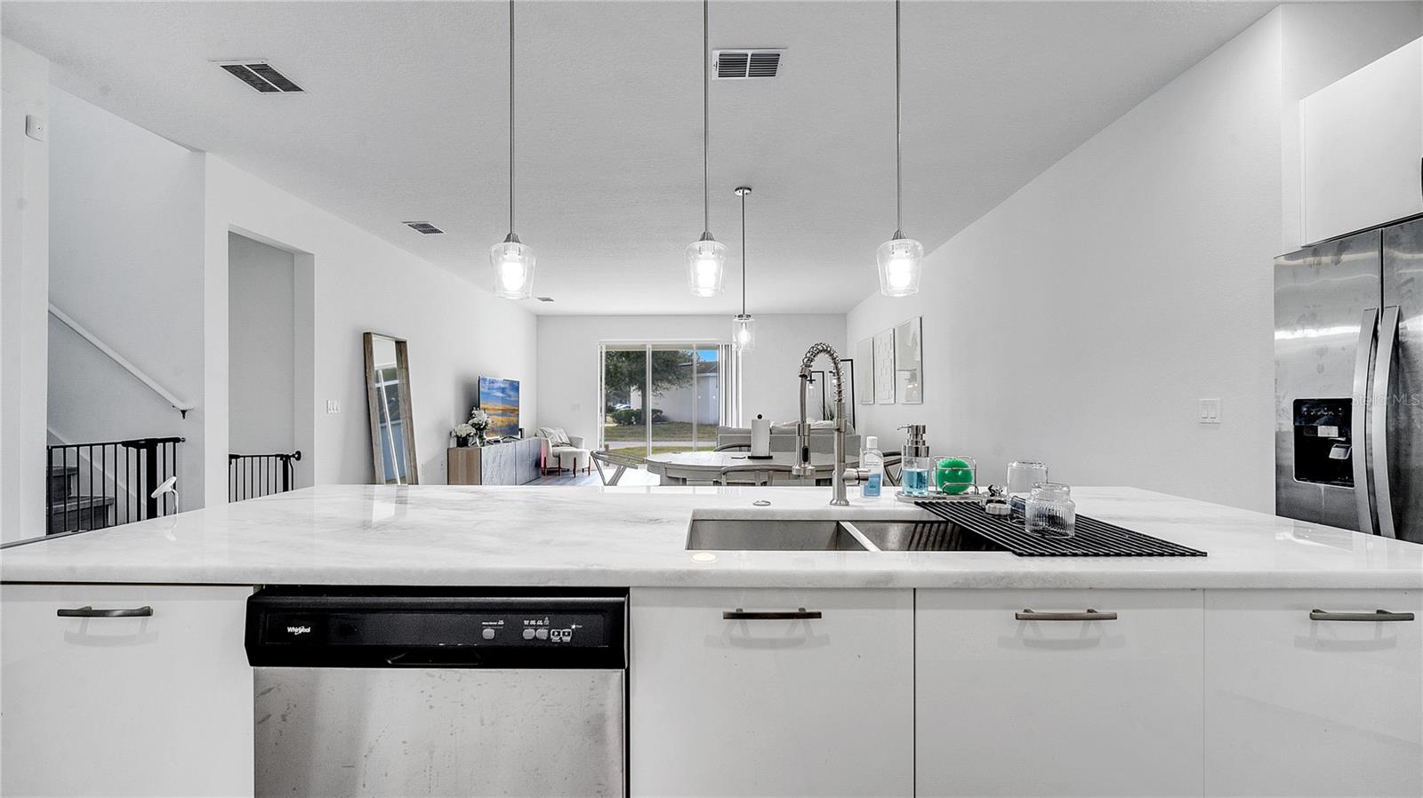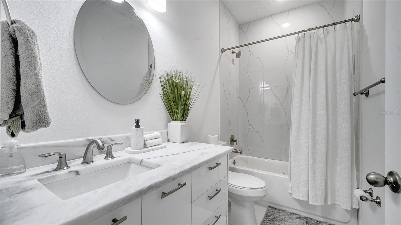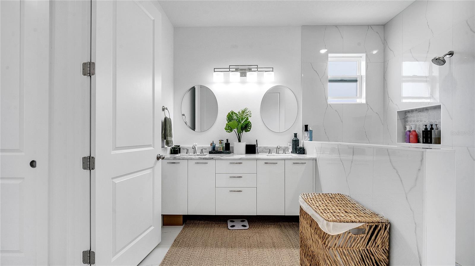 Move-In Ready! This stunning home is sure to impress! It boasts a modern kitchen with sleek stainless steel appliances, soaring ceilings, and two master suites, each featuring elegant level 5 granite countertops and floating vanities. The home offers a luxurious touch with vinyl and marble flooring throughout—no carpet anywhere! Situated in the gated Trafalgar Village community, it’s just 10 minutes from the corner of Osceola Parkway and Highway 192. Priced to sell quickly!