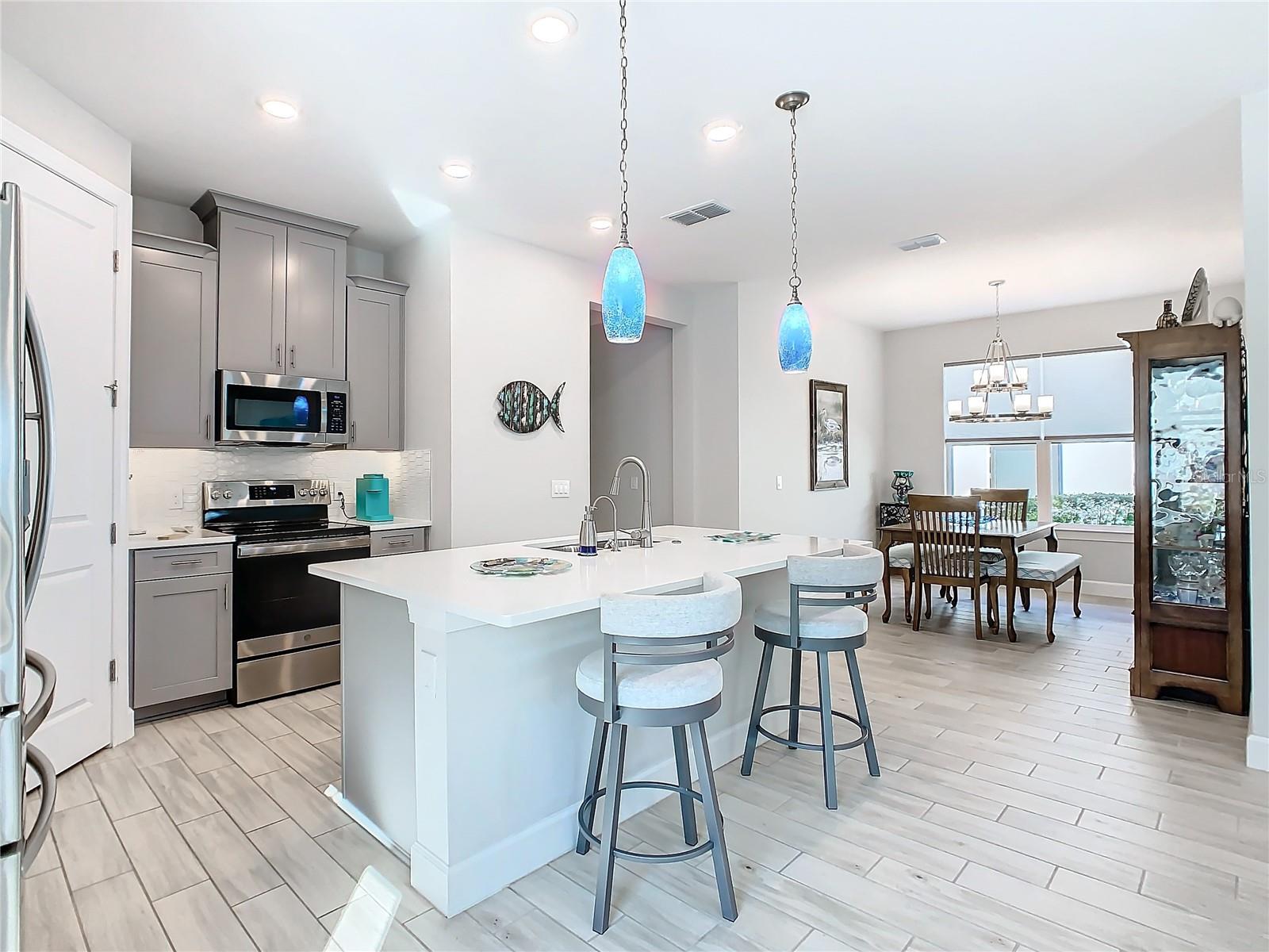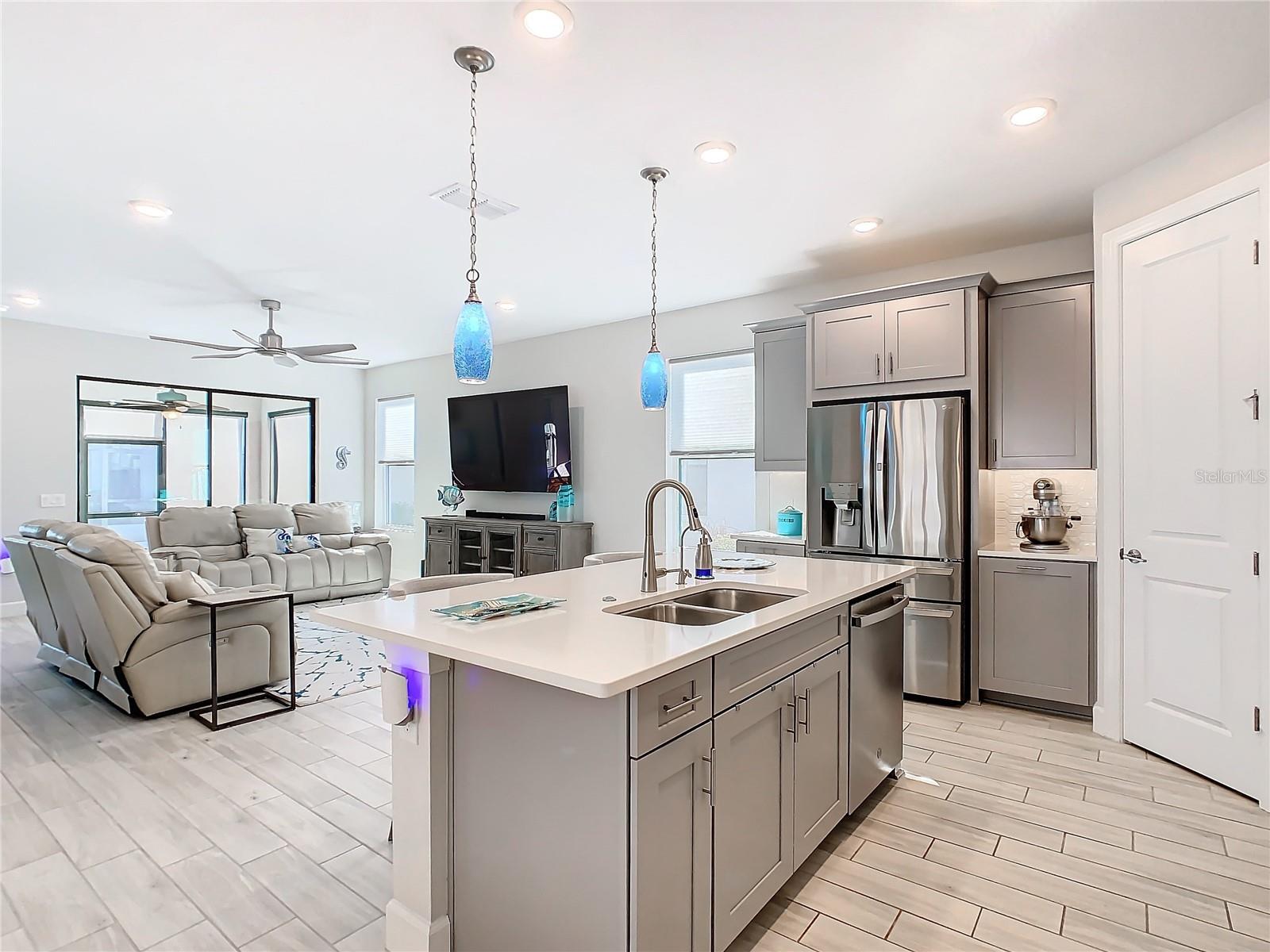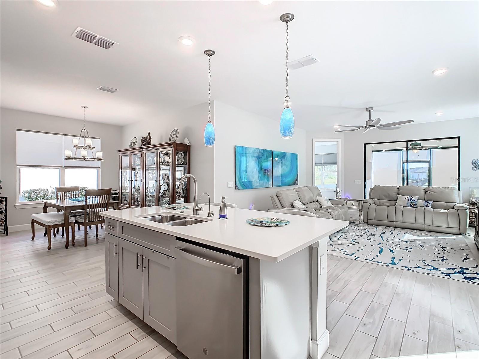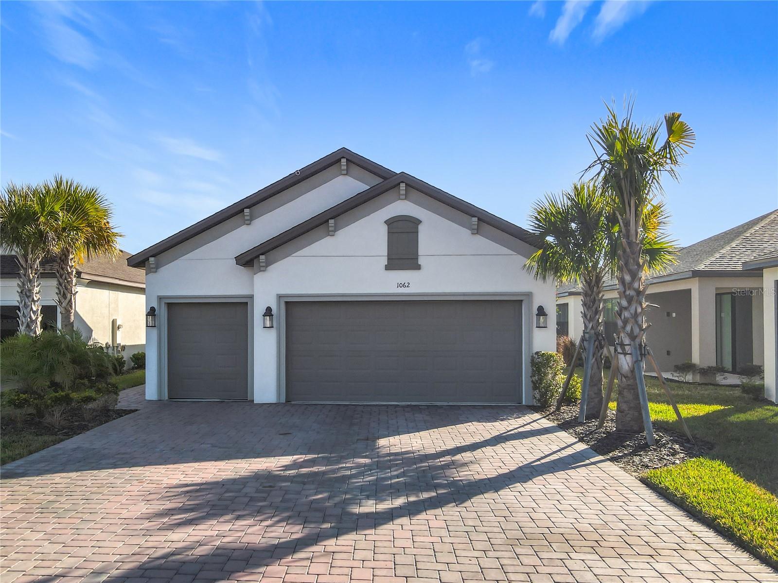 PRICE ADJUSTMENT on this well maintained home. SELLER IS MOTIVATED!! Welcome Home to 1062 Umbria Drive, an Almost Brand New Allora Model home on a beautiful Cul-de-Sac featuring 2 bedrooms, 2 baths, study, kitchen, dining room and a large gathering room plus an extended and covered lanai. This open plan is modern, bright, welcoming and designer upgraded. The Kitchen features a large island perfect for casual dining, a walk-in pantry and stainless appliances. The Gathering Room, open to the kitchen and access to the screened lanai, is the perfect spot to entertain. The Study has been upgraded with french doors. The spacious Owner’s Suite has a view of the pond, en-suite bath with walk-in shower, dual vanities and a large walk-in closet. This home has an extended, covered and screened lanai, large laundry room, 2 car garage plus a golf cart garage with an extra long driveway for guest parking. The garage floor has an epoxy finish. The split bedroom floorplan offers privacy for the owner and guests when in residence. The design selections in this home are impeccable and include upgraded cabinetry, quartz countertops, tile backsplash, tile plank flooring, blinds, lights and fans throughout. Structural options added to this home include a screen enclosure on the lanai, a study in lieu of a flex room, 8' interior doors and a golf cart garage. Solivita is an AWARD WINNING 55+ COMMUNITY featuring a multitude of amenities including TW0 18 hole CHAMPIONSHIP GOLF COURSES, aquatic driving range, practice area and golf lessons, TWO STATE OF THE ART FITNESS CENTERS with the latest equipment, classes, and trainers. You can swim in any of the 14 pools, take art classes, join one of our 200+ clubs, shop the farmer’s market or community pharmacy/sundries store. Meet friends in the Village Center at Stonegate Grille, Mosaics or the Bistro or enjoy a show at the Ballroom. The HOA covers security, lawncare and irrigation, tv and internet. Across the street from the main entrance are a hospital and medical facilities and POINCIANA PLAZA, a new shopping center featuring TJMAXX, RACK ROOM SHOES, BURLINGTON, ULTA BEAUTY, PETCO and more! Solivita has it all…call today to make an appointment to see this “MOVE IN READY” home..
