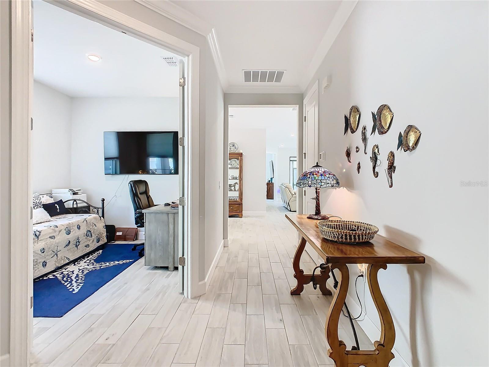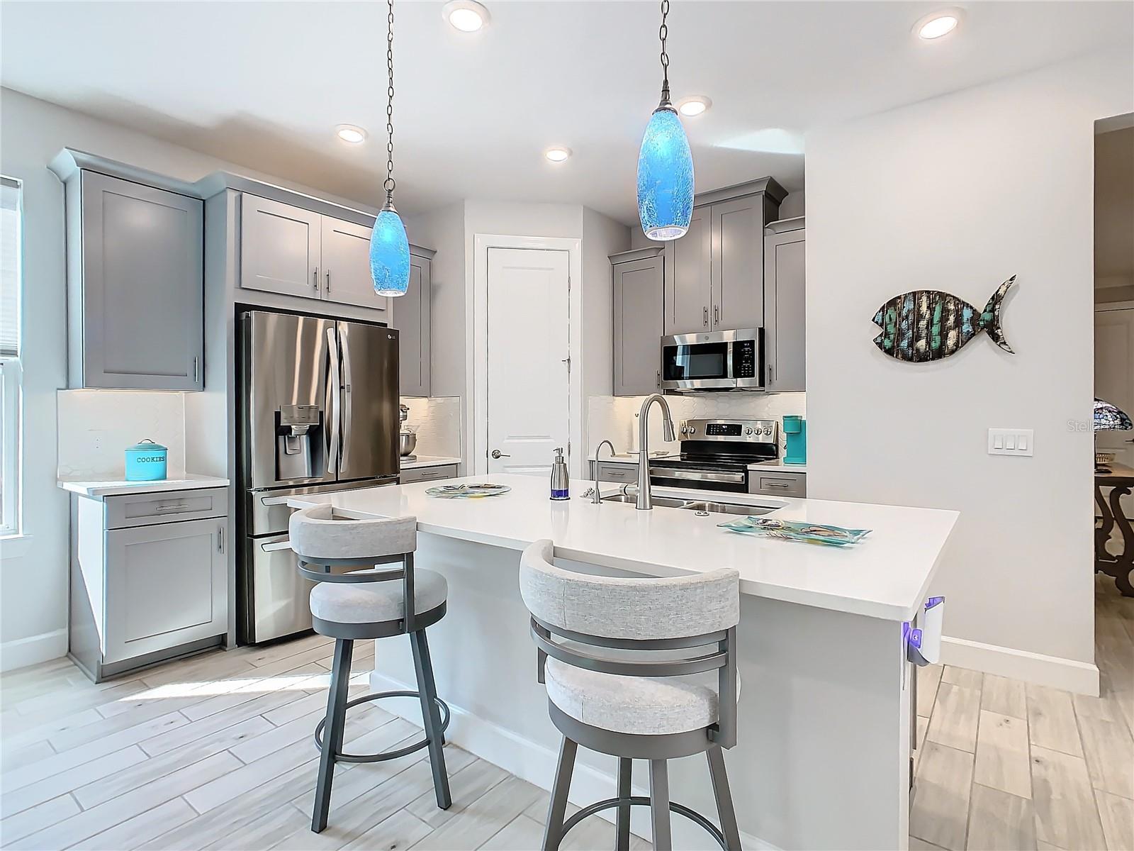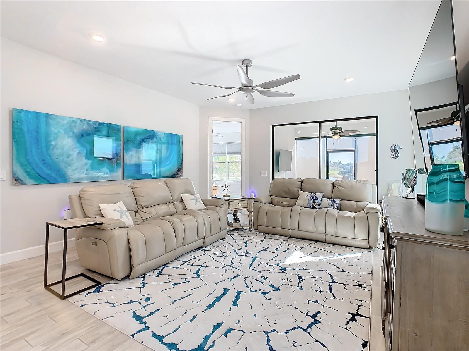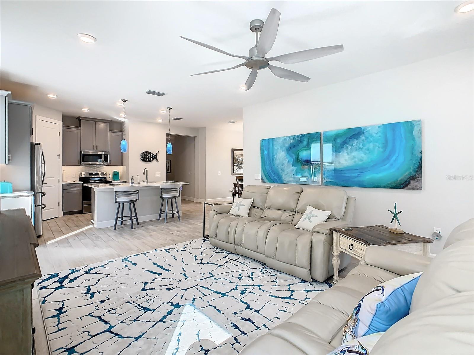 PRICE ADJUSTMENT on this well maintained home. SELLER IS MOTIVATED!! Welcome Home to 1062 Umbria Drive, an Almost Brand New Allora Model home on a beautiful Cul-de-Sac featuring 2 bedrooms, 2 baths, study, kitchen, dining room and a large gathering room plus an extended and covered lanai. This open plan is modern, bright, welcoming and designer upgraded. The Kitchen features a large island perfect for casual dining, a walk-in pantry and stainless appliances. The Gathering Room, open to the kitchen and access to the screened lanai, is the perfect spot to entertain. The Study has been upgraded with french doors. The spacious Owner’s Suite has a view of the pond, en-suite bath with walk-in shower, dual vanities and a large walk-in closet. This home has an extended, covered and screened lanai, large laundry room, 2 car garage plus a golf cart garage with an extra long driveway for guest parking. The garage floor has an epoxy finish. The split bedroom floorplan offers privacy for the owner and guests when in residence. The design selections in this home are impeccable and include upgraded cabinetry, quartz countertops, tile backsplash, tile plank flooring, blinds, lights and fans throughout. Structural options added to this home include a screen enclosure on the lanai, a study in lieu of a flex room, 8' interior doors and a golf cart garage. Solivita is an AWARD WINNING 55+ COMMUNITY featuring a multitude of amenities including TW0 18 hole CHAMPIONSHIP GOLF COURSES, aquatic driving range, practice area and golf lessons, TWO STATE OF THE ART FITNESS CENTERS with the latest equipment, classes, and trainers. You can swim in any of the 14 pools, take art classes, join one of our 200+ clubs, shop the farmer’s market or community pharmacy/sundries store. Meet friends in the Village Center at Stonegate Grille, Mosaics or the Bistro or enjoy a show at the Ballroom. The HOA covers security, lawncare and irrigation, tv and internet. Across the street from the main entrance are a hospital and medical facilities and POINCIANA PLAZA, a new shopping center featuring TJMAXX, RACK ROOM SHOES, BURLINGTON, ULTA BEAUTY, PETCO and more! Solivita has it all…call today to make an appointment to see this “MOVE IN READY” home..