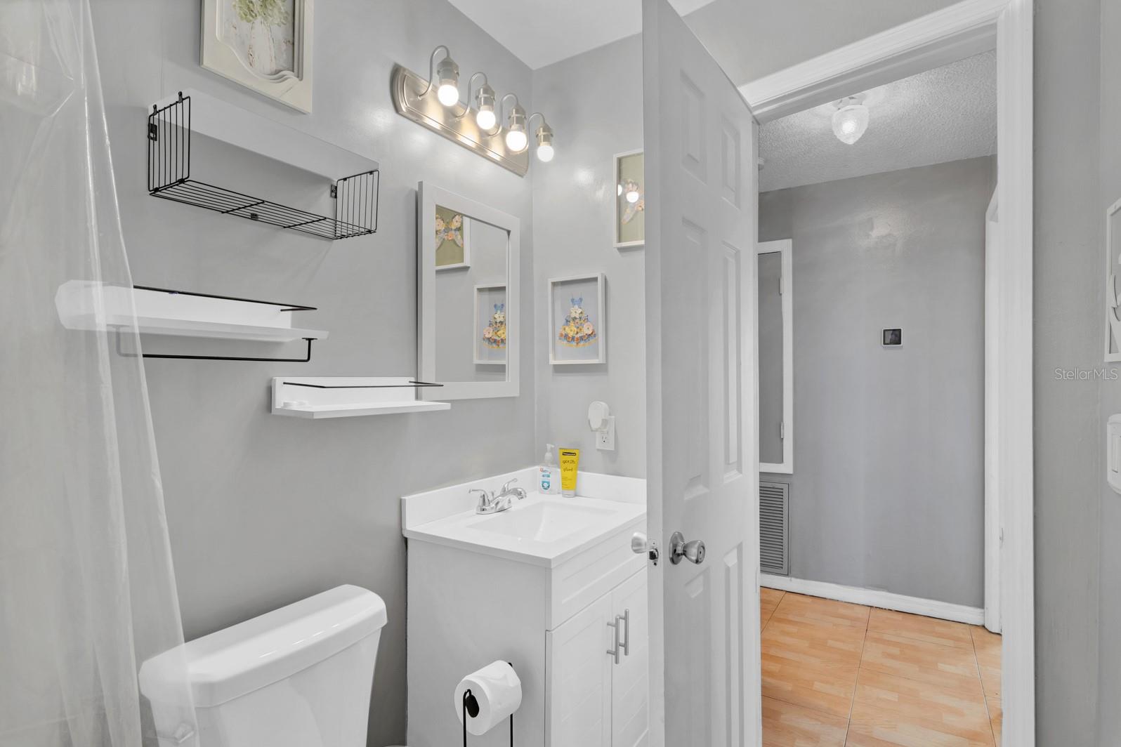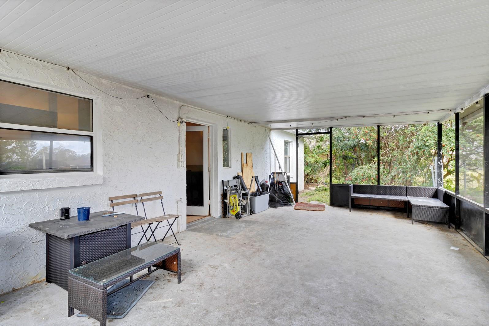 This 2-bedroom, 1-bathroom home is nestled on a quiet cut-de-sac. New roof installed in 2023! The open floorplan boasts vaulted ceilings, creating a bright and airy living space perfect for relaxing or entertaining. The kitchen features stainless steel appliances and newer 42" cabinets for ample storage. An inside utility/laundry room adds convenience to your daily routine. Step outside to enjoy the oversized screened porch, ideal for morning coffee or evening gatherings. The partially fenced yard offers privacy and potential for gardening or pets. This home offers an extra storage room that ensures space for your belongings. The garage has been converted, features tile floors and finished walls offering additional space that can be used as an office, den or room suit your needs. Low monthly HOA includes cable TV and internet. Close to major highways, shopping, schools and restaurants. Call to schedule a showing today!