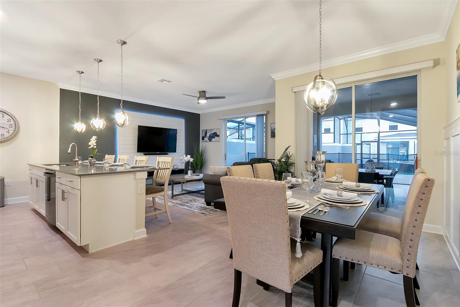 FAMILY VACATION HOME AND/OR SHORT-TERM RENTAL (AIRBNB) READY!. Located in a resort-style gated community, this fully furnished 4-bedroom, 3-bathroom townhouse is the perfect investment opportunity or family vacation home just 4.5 miles from Disney World! The home features a private heated pool with a screen enclosure and child safety fence, an open-concept living space with ceramic tile floors downstairs and cozy carpet upstairs, plus a first-floor bedroom with a full bathroom next door for added convenience. The second-floor master suite offers a relaxing retreat, while two themed childrens’ bedrooms, decorated in Star Wars and Mickey & Minnie Mouse themes, add a magical touch. The home also includes ample storage closets and an upstairs laundry room. Enjoy world-class resort amenities, including two clubhouses (one 7 minutes from property), a lazy river, splash pad, tiki bar & grill, mini golf, volleyball and sports courts, canoe/kayak rentals, a fitness center, and a quiet pool. Ideally located less than a mile from Target, Publix, Walmart, and top restaurants, 0.5 miles from Lake Buena Vista Factory Stores, and just minutes from Orlando Vineland Premium Outlets (3.2 miles), SeaWorld (9.1 miles), Universal Studios (12.3 miles), and Orlando International Airport (15 miles). Don’t miss this turnkey short-term rental opportunity in one of Orlando’s most sought-after communities!