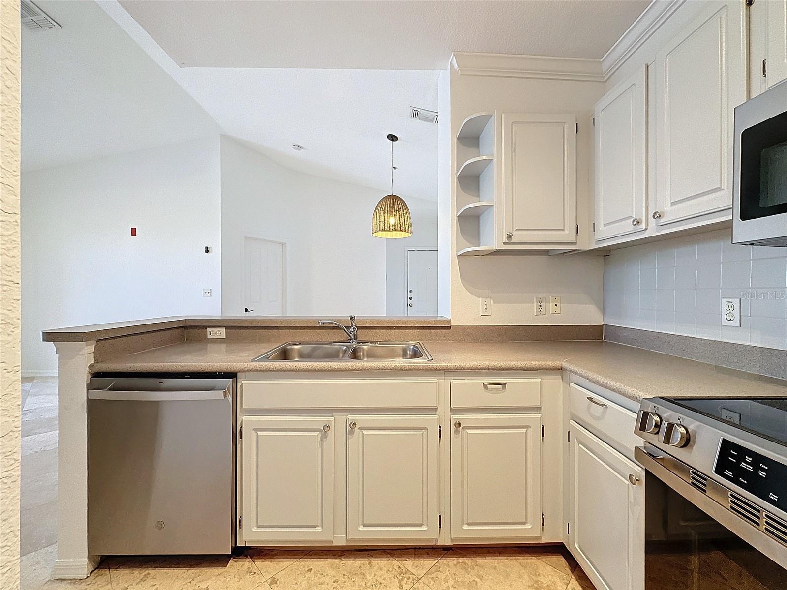Ready for new ownership! This stunning 2-bedroom, 2-bathroom condo is located in the highly desirable Legacy Dunes community. Situated on the third floor, the unit boasts vaulted ceilings and offers serene views of the fountain water feature. The interior features elegant travertine tile in the living areas and stylish wood-look tile in the bedrooms. Recent upgrades include brand-new stainless steel appliances, updated lighting, 2023 HVAC system, and fresh paint throughout, ensuring it’s move-in ready. Legacy Dunes offers an array of resort-style amenities, including two sparkling pools, lighted tennis and basketball courts, a state-of-the-art fitness center, a play area, picnic areas with BBQ grills, and scenic walking trails. Conveniently located just minutes from Walt Disney World Resort, this community allows for both short-term and long-term rentals. Don’t miss the chance to own this incredible property!