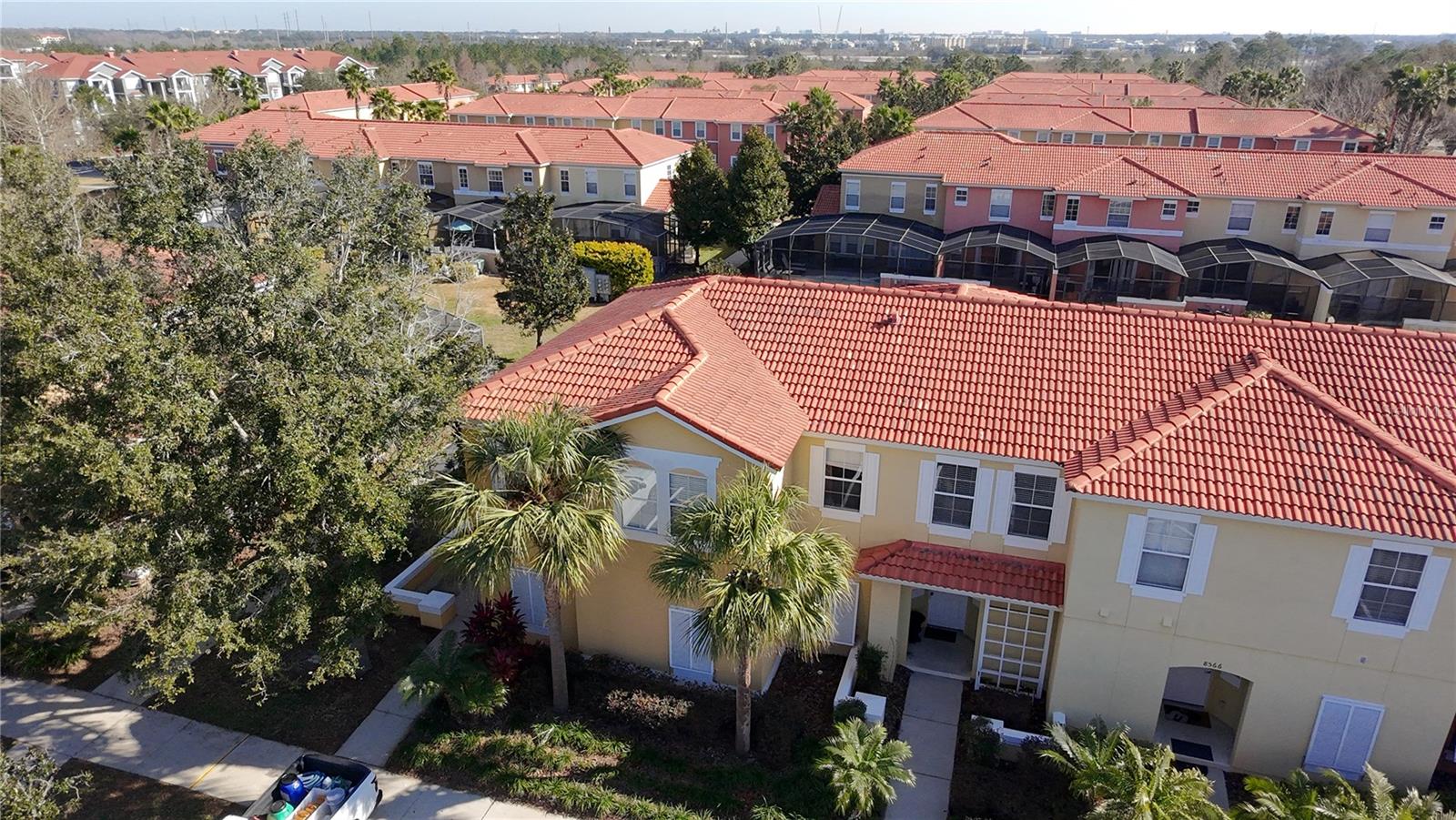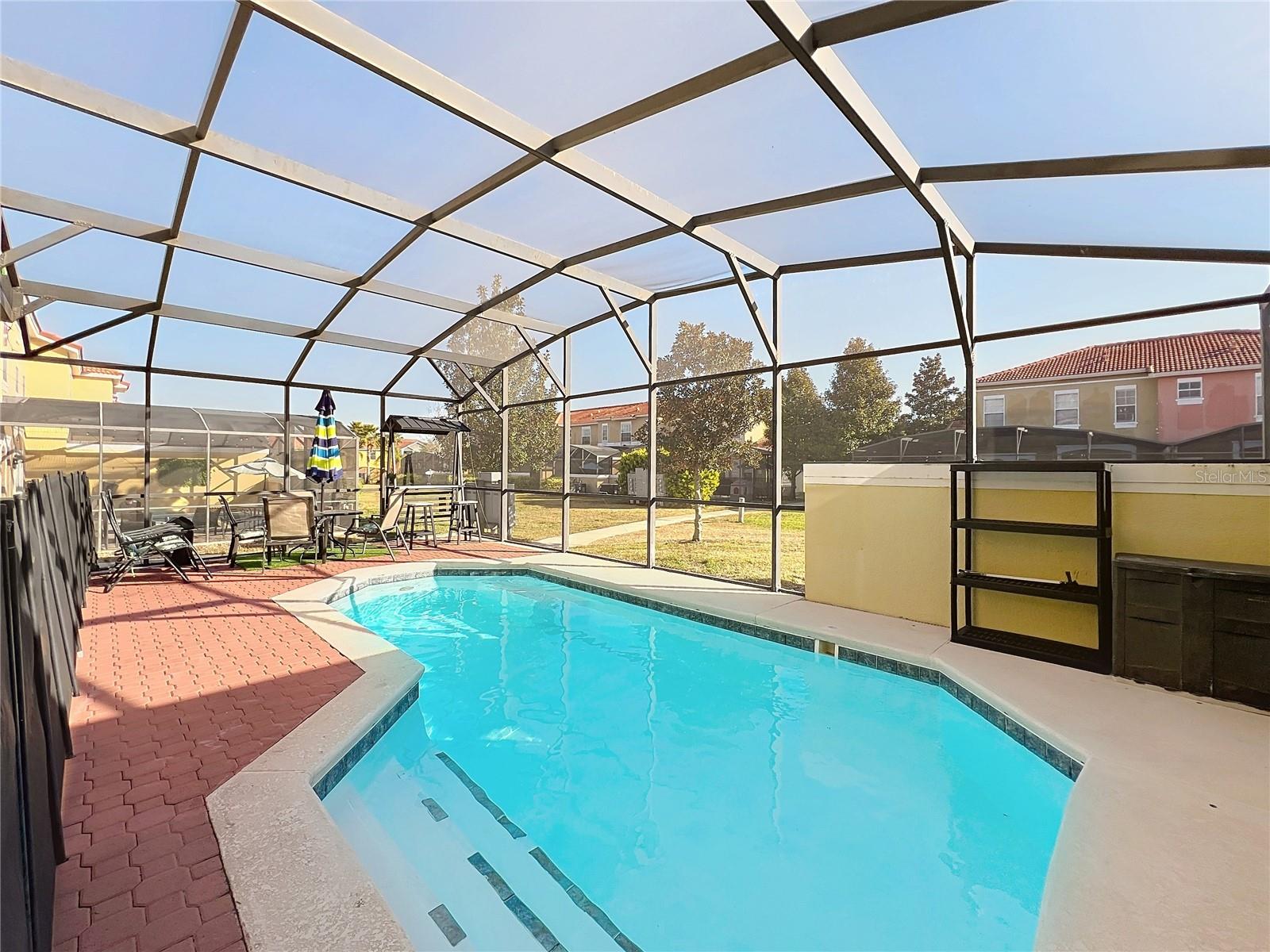 Experience maintenance-free living in the heart of Central Florida with this spacious Corner lot four-bedroom, three-bathroom townhome. The townhome features an open-concept design on the first floor, seamlessly blending the dining area, living room, and a screened-in lanai with your own private pool—perfect for relaxing or entertaining. The master bedroom is located on the upper floor, offering a private retreat and the rest of 3 other bedrooms. This home combines both practicality and functionality with 3 full bathrooms for a truly exceptional living experience. Ideally situated in the beautiful Encantada Resort zoned for Short term rental, where you'll be just a few miles away from top theme parks, renowned schools, trendy restaurants, and popular shopping centers. This home offers the perfect balance of comfort and convenience, making it an ideal choice for those seeking an easygoing lifestyle in a vibrant community.