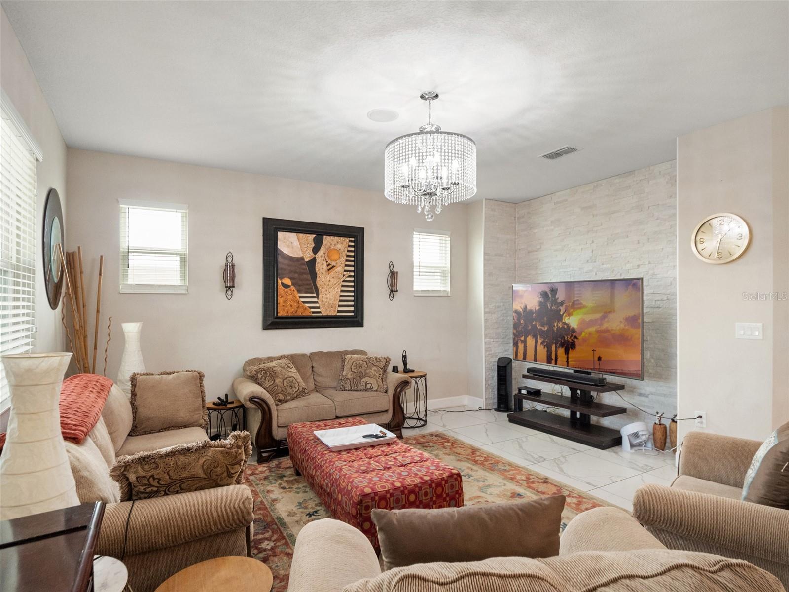 Elegant 5-Bedroom Estate | Over 3,000 SF | Private Outdoor Oasis Tucked away in a serene cul-de-sac, this stunning 5-bedroom, 3-bathroom home offers over 3,000 square feet of upgraded luxury, designed for both comfort and style. With high-end finishes, custom lighting, designer ceiling fans, and thoughtful details throughout, this home is a true showstopper. Step inside to an expansive open-concept living area, where custom brick accent walls add warmth and character. The gourmet kitchen is a chef’s dream, featuring premium appliances, quartz countertops, and an oversized island—seamlessly flowing into the dining and living areas, perfect for entertaining. Upstairs, the spacious loft offers endless possibilities—a media room, home office, or play area. The lavish owner’s suite is a private retreat, complete with a spa-like ensuite featuring a garden tub, dual vanities, and 2 walk-in closets. A dedicated laundry room with a built-in sink and ample storage makes daily routines easier. Outside, your private backyard paradise awaits. The fully equipped outdoor kitchen is perfect for entertaining, while the privacy fence creates a secluded retreat for relaxation. Located in an amenity-rich community with a low HOA under $100/month, you’ll enjoy resort-style living just minutes from premier shopping, dining, and world-renowned theme parks. Homes like this don’t come around often—schedule your private showing today and experience luxury living at its finest!