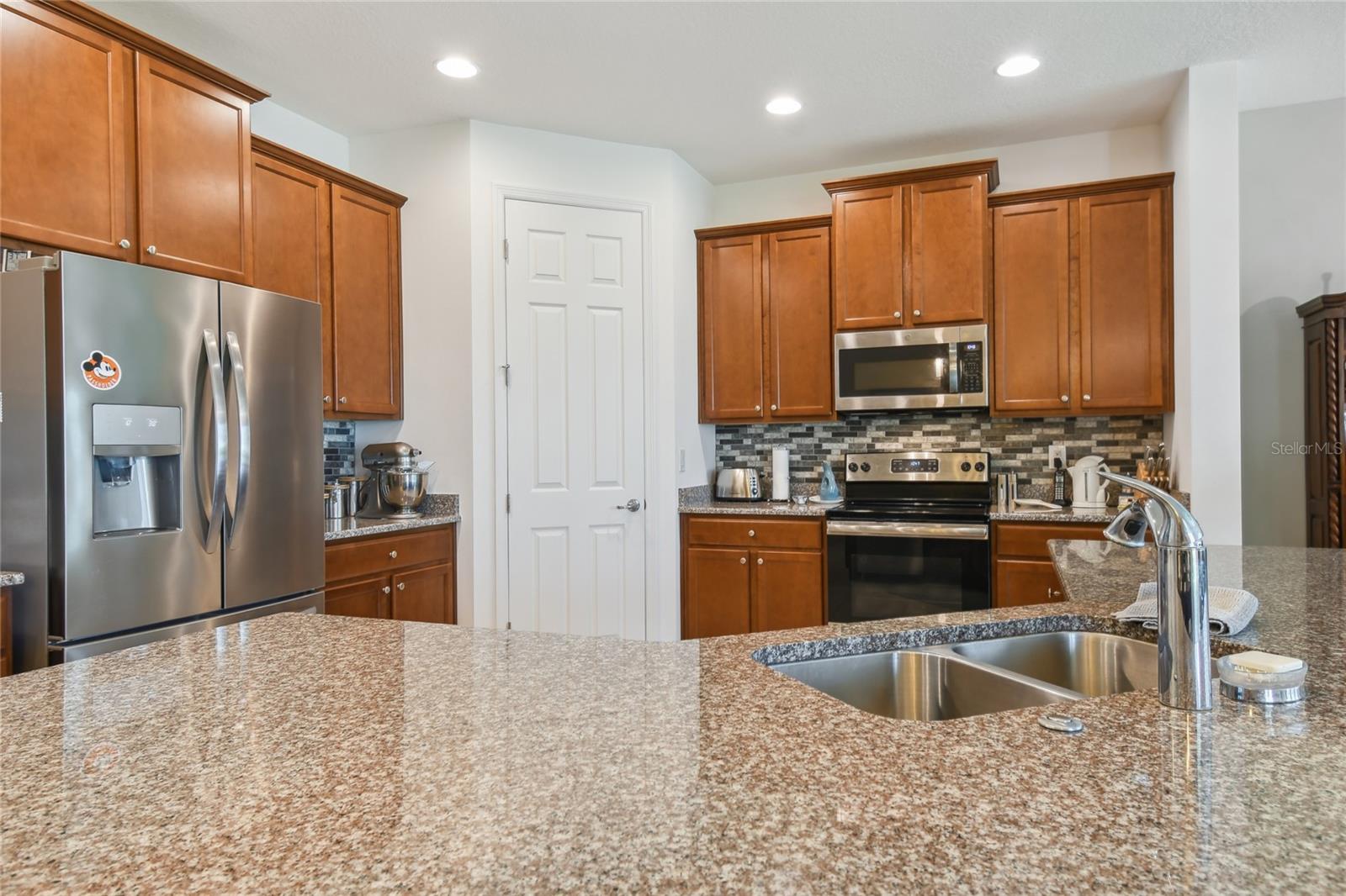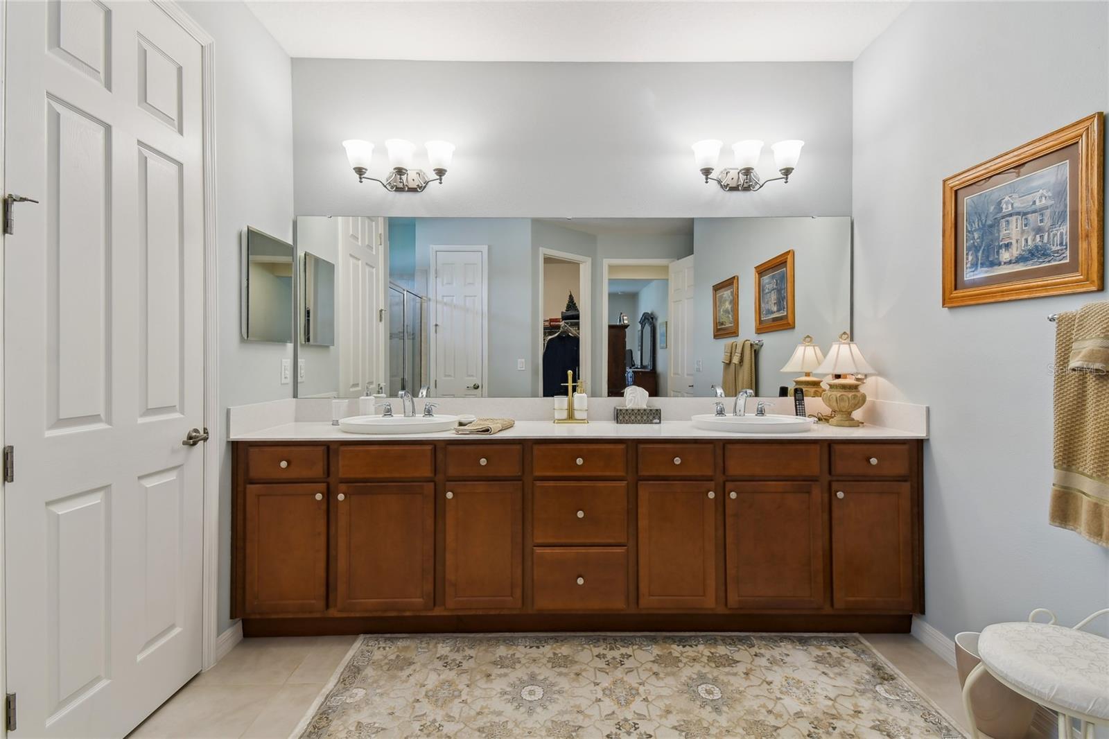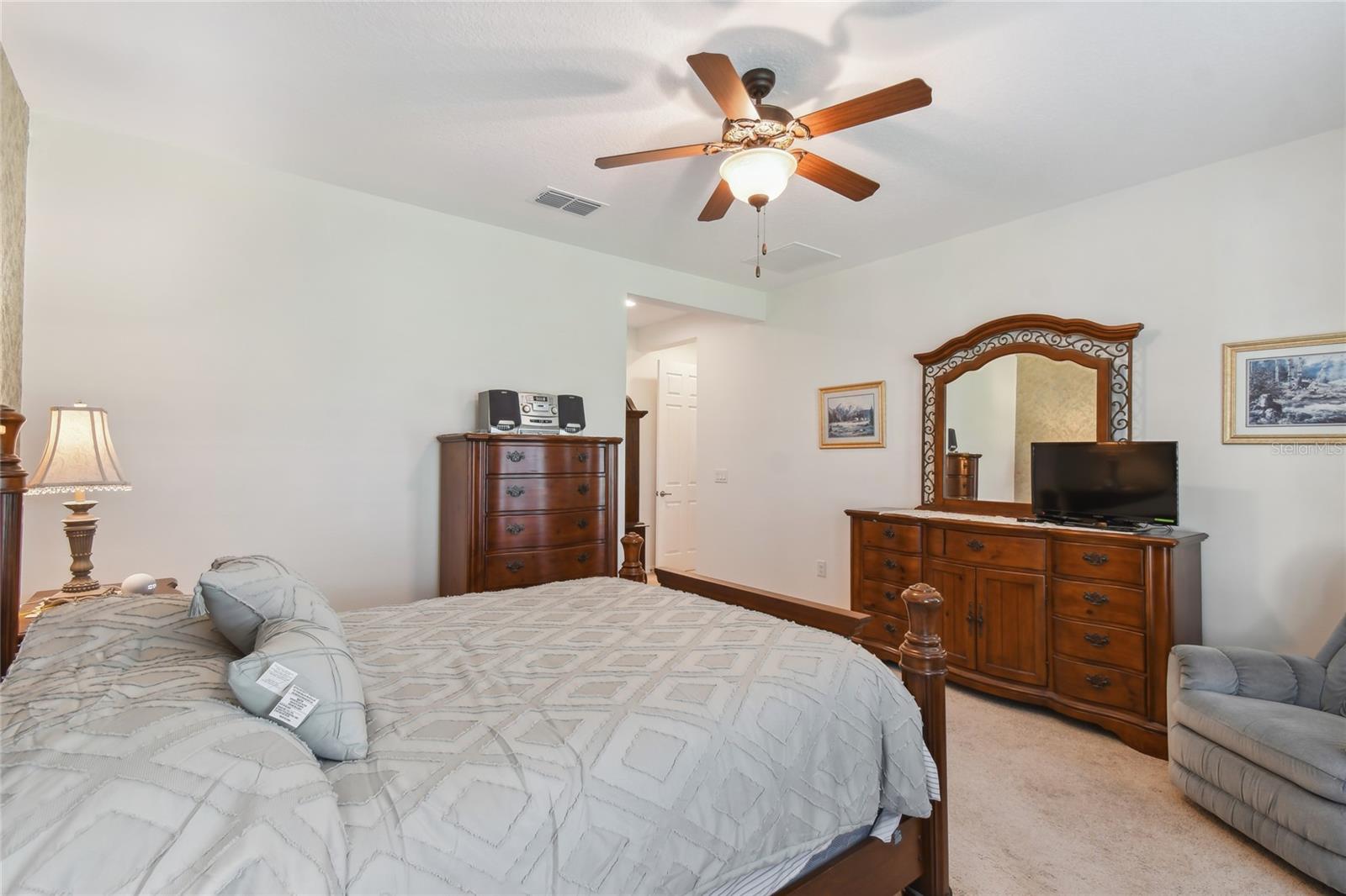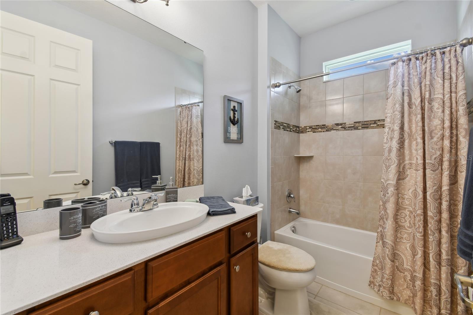 Welcome to this beautifully maintained Calabria model home. Freshly painted exterior July, 2024. A covered entryway to full view leaded glass door opens to a spacious foyer. Beautiful detail with architectural trim, upgraded lighting and contrasting ceiling paint lead to the open floor plan of this "like new" home. The Kitchen features tons of cabinets and a pantry for storage. A work area with Granite counters and tile backsplash are sure to please the cook. Glamorous pendants at the island serving, seating area make this a great home for entertaining. The dining area accommodates large table and chairs. Sliding doors to Lanai allow lots of natural light to this area. The living room also is light and bright with two walls of window. Living room and dining room can be switched to suit owner's preference. Main Bedroom Suite is a peaceful retreat with large ensuite bathroom dressing room. In it are walk-in closet, linen closet vanity with dual sinks. The Guest Bedroom and another full bathroom with tub are at opposite end of house. The den/study is a large room that can easily be changed to create a third bedroom. Solivita is a popular lifestyle community with over 250 clubs for a variety of hobbies and interests. Solivita amenities include: 14 heated pools, 17 Pickleball Courts, 2 Golf Courses, 9 Tennis Courts, 4 Bocce Courts, 4 Shuffleboard Courts, 3 Horseshoe Pits, Cornhole, Billiards Room, 2 Dog Parks, a Community Garden, and Tot Playground. The Palms fitness center was renovated in August 2024 and boasts state-of-the-art gym equipment. The Riviera fitness center has both an indoor heated pool with walking track above and an outdoor pool with hot tubs. Professional trainers teach day and evening classes. HOA provides Landscaping and Irrigation for common areas as well as home sites, provides security with gate guards and mobile patrols, provides automated gate access for residents via license plate readers. HOA maintains roads throughout community. Enjoy maintenance-free resort-style living in this friendly community only a short distance from Orlando International Airport. Brand new shopping center across from Main Gate features: Sprouts Grocery, TJMaxx, Burlington, Ross, First Watch, TD Bank, Urgent Care, and much more.
