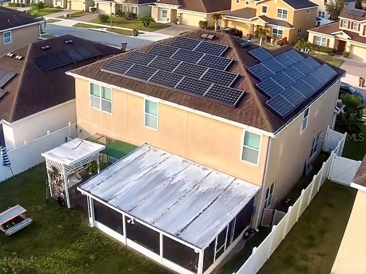 STUNNING SOLAR-POWERED HOME WITH 2 SUITES! Welcome to this energy-efficient gem in Kissimmee! Featuring an extensive solar panel system covering almost the entire roof — plus backup batteries — this home offers major savings on electricity. IMPORTANT NOTE ABOUT PROPERTY TAXES: For 2024, the annual Property TAX appears higher because the solar panel loan was added to the tax bill through a PACE (Property Assessed Clean Energy) program. However, the sellers will fully pay off this solar loan at closing. After closing, the Property TAX will return to the REAL amount: approximately $5,000 per year. The new owners will enjoy very low electricity bills, typically between $30 and $50 per month. Inside, this spacious 5-bedroom, 3.5-bathroom home offers two luxurious suites, perfect for multi-generational living or guest accommodations. One of the suites is conveniently located on the first floor, providing flexibility and comfort. Modern Kitchen: Equipped with granite countertops, stainless steel appliances, 42-inch espresso cabinets with crown molding, and a stylish backsplash. Community Amenities: Enjoy access to two playgrounds, a soccer field, a community pool, and scenic walking trails within the Hammock Trails community. ? Educational Institutions Nearby: Sunrise Elementary School: Serving grades PreK-5, approximately 2.5 miles away. Horizon Middle School: Serving grades 6-8, approximately 2.1 miles away. Poinciana High School: Serving grades 9-12, approximately 1.8 miles away. ? Prime Location: Situated in a vibrant area of Kissimmee, this home offers proximity to a variety of dining options, supermarkets, and is just a short drive from renowned theme parks, providing both convenience and entertainment for residents. Don’t miss the opportunity to own this energy-efficient home with modern amenities in a prime location. Schedule your viewing today!