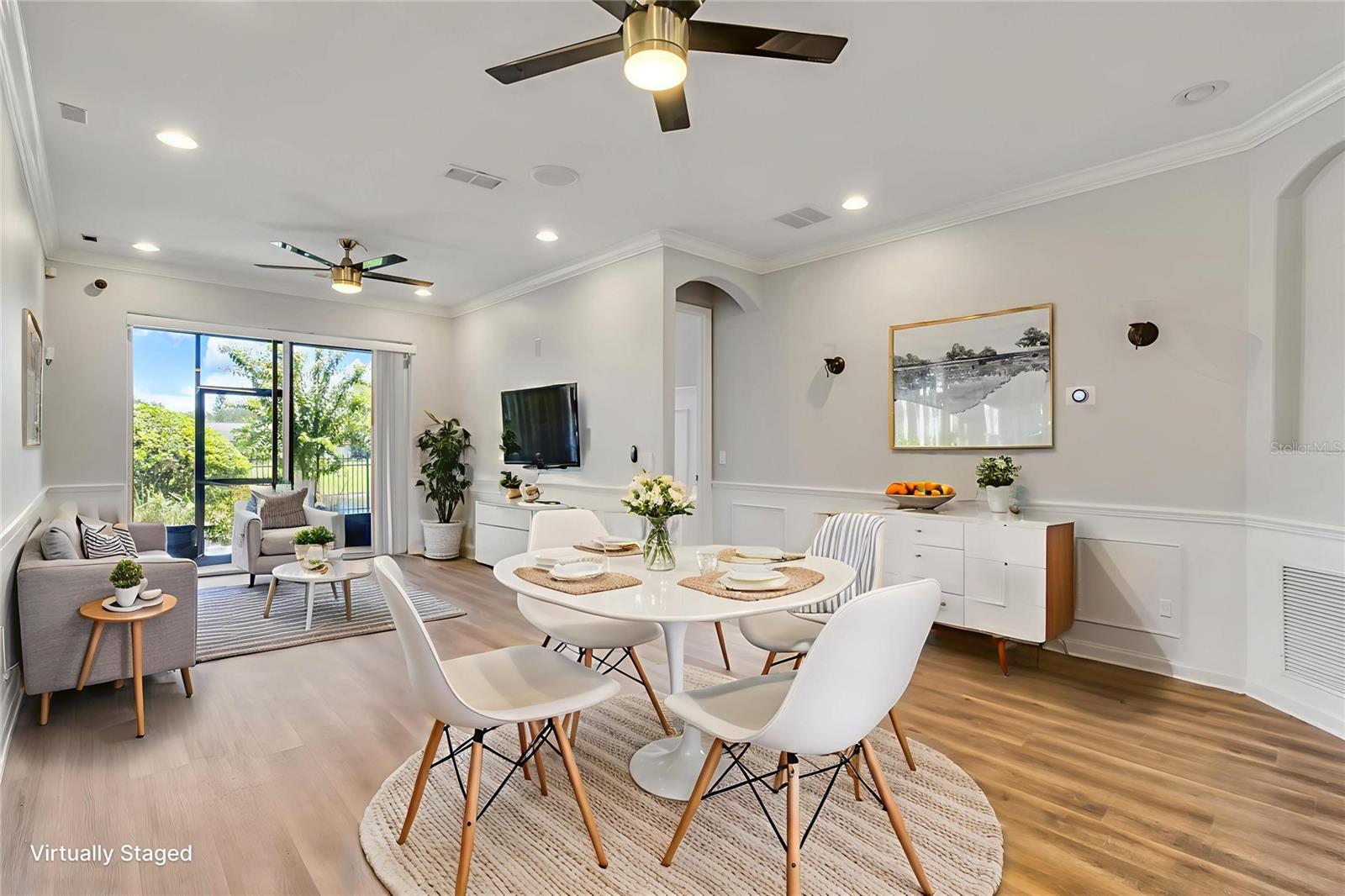 One or more photo(s) has been virtually staged. ***Back on the Market! Buyer's did not preform on closing date no fault of Seller. Call now for a great deal!*** Now featuring FRESH NEW MODERN PAINT throughout, BRAND-NEW LUXURY FLOORING in all common areas, and PLUSH NEW CARPET in all bedrooms, this beautifully maintained townhome is move-in ready with upgraded finishes that make a lasting impression. Located in a gated community with tranquil pond views, it’s the perfect blend of comfort, space, and style. This spacious 4-bedroom, 2.5-bathroom townhouse offers 2,181 sq. ft. of heated living space. The open floor plan is designed for both function and flow, with elegant new flooring enhancing the warmth of the main living areas. The primary suite is conveniently located on the first floor, featuring a generous en suite bathroom with split vanities, a garden tub, and a walk-in tiled shower. A half bath downstairs with adds convenience for guests. The gourmet kitchen is a standout, showcasing 42-inch wood cabinets, stone countertops, soft-close and pull-out drawers, and stainless steel appliances. Crown molding, recessed lighting, and stylish wall accents elevate the home’s overall charm and sophistication. Upstairs, you’ll find three additional bedrooms, all freshly painted, along with a full bathroom featuring dual sinks and a tub/shower combo. A spacious loft offers flexibility—perfect for a second living area, game room, home office, or playroom. Enjoy peace of mind with a newer central air conditioning system (2019), a Nest thermostat, and Ring doorbell, offering both comfort and smart security. Step outside through the sliding glass doors to the enclosed rear patio, complete with serene water views and upgraded stone pavers. The home also includes a one-car garage and a second-floor laundry area with washer and dryer. With a new roof installed in 2021, this home is set for years to come. The community features a resort-style pool and security, all just minutes from the Turnpike, shopping centers, and popular restaurants. Don’t miss your second chance—schedule your private showing today and make this refreshed, stylish home yours!