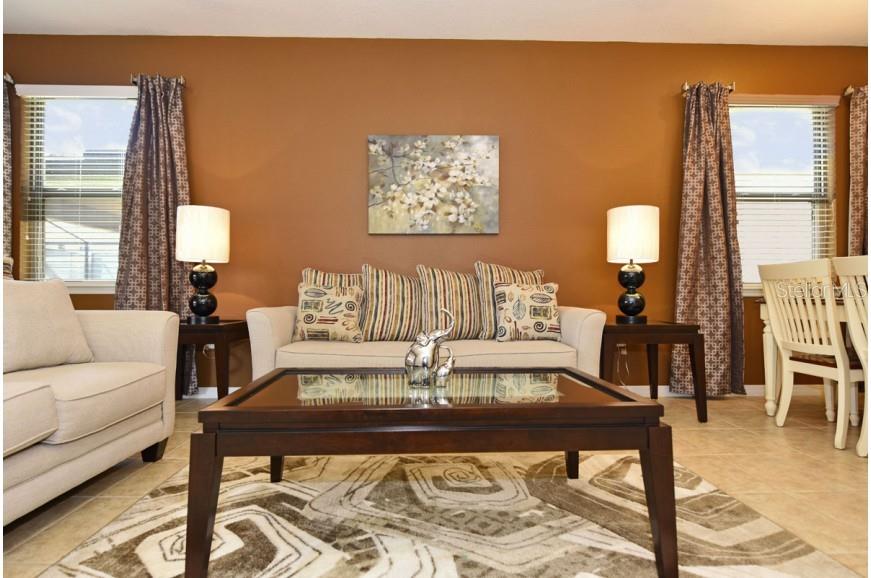 7-bedroom 5.5-bathroom FULLY FURNISHED HOME at Windsor at Westside a Gated Community. Located around 15 MINUTES FROM DISNEY WORLD, 1 MASTER SUITE IN THE FIRST FLOOR. RESORT-STYLE COMMUNITy. HOA covers cable, internet, trash pick-up, lawn care, and grounds maintenance.