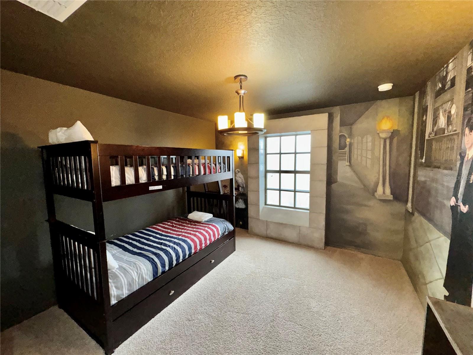 Located in the exclusive gated Storey Lake Resort, this stunning fully furnished 4-bedroom, 3-bathroom townhome offers the perfect combination of luxury, comfort, and convenience. Enjoy your very own private pool with a covered screen enclosure, perfect for entertaining or unwinding after a long day. The thoughtfully designed layout features a spacious primary suite upstairs with an elegant en-suite bathroom, while a downstairs bedroom provides added privacy—ideal for guests or multi-generational living. Two uniquely themed bedrooms add a touch of magic, featuring beautifully crafted Frozen and Harry Potter murals, making this home truly special. The modern kitchen boasts sleek granite countertops and stainless steel appliances, seamlessly flowing into the open living and dining areas. This inviting space is perfect for both hosting gatherings and everyday living. Storey Lake Resort offers world-class amenities, including a resort-style pool with a snack area, dual water slides, a lazy river, a splash pad, basketball and tennis courts, mini golf, a volleyball court, and a clubhouse with a fitness gym. A tiki bar provides the perfect spot for relaxation. Situated just minutes from Disney, shopping, dining, and entertainment, this home is also conveniently close to Orlando International Airport and world-class shopping outlets. Whether you're looking for a vacation retreat, a short-term rental investment, or a full-time residence, this fully furnished property offers an unparalleled lifestyle in one of Central Florida’s most desirable communities. Don’t miss out on this incredible opportunity—schedule your private showing today!